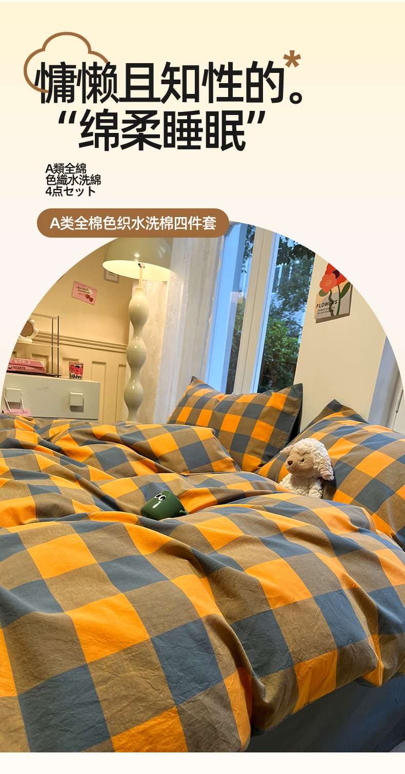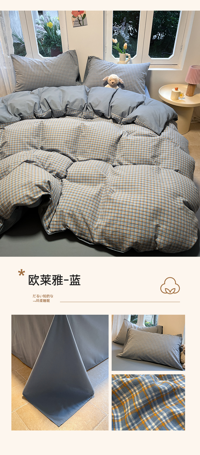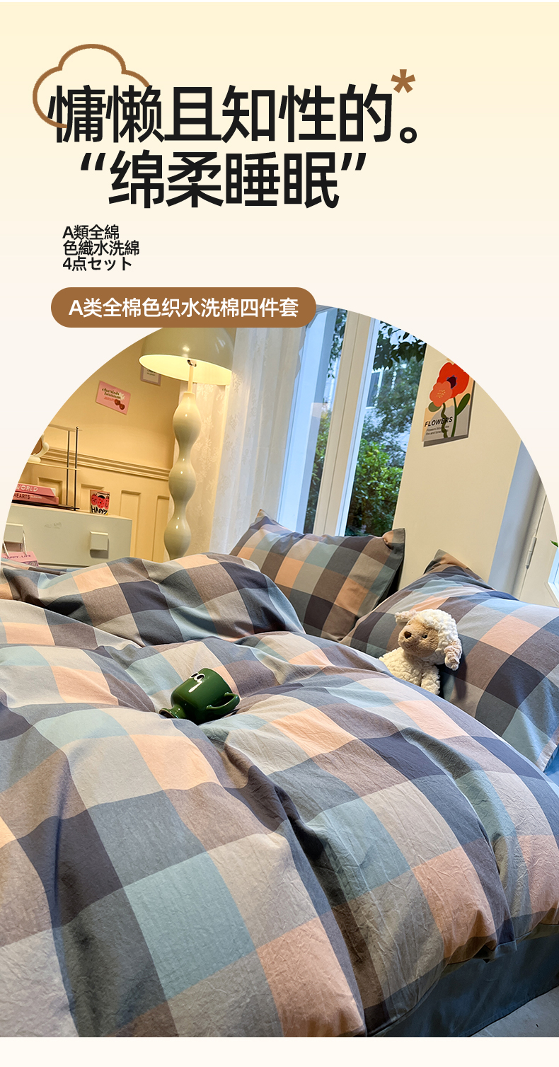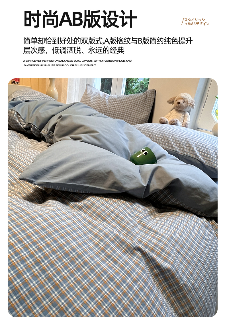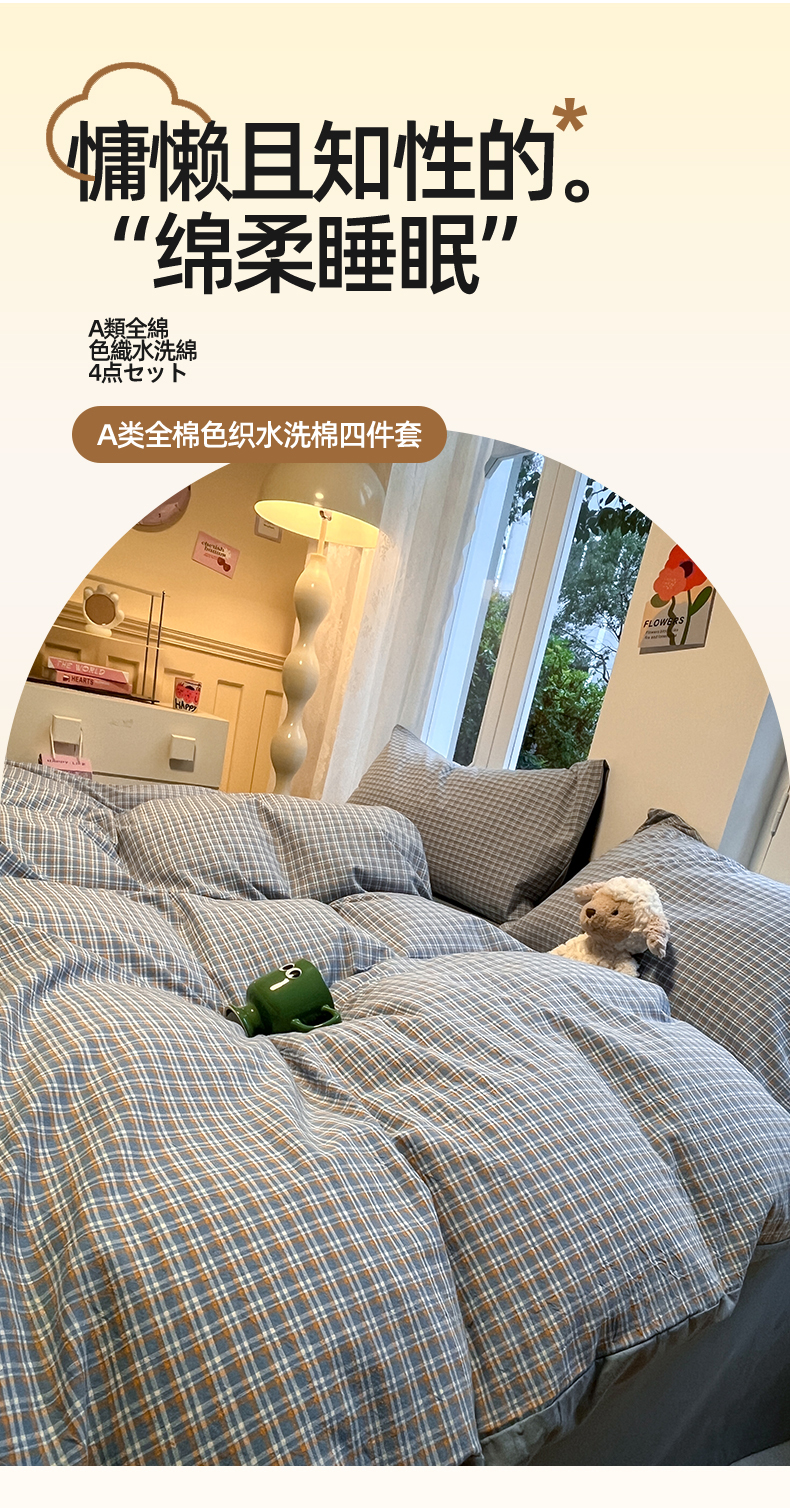 商品名称:(总)蓝邻家纺 2024新款全棉色织水洗棉四件套