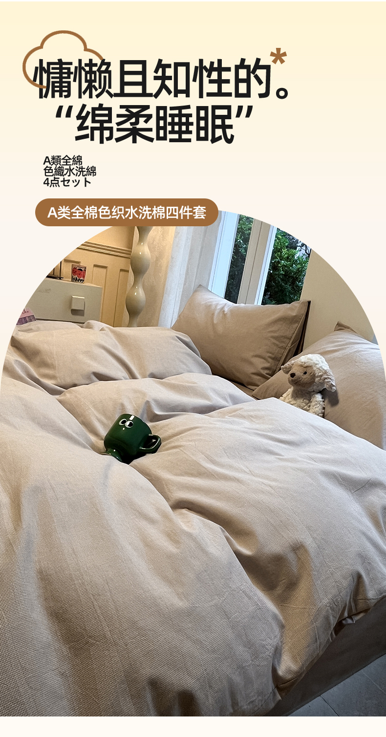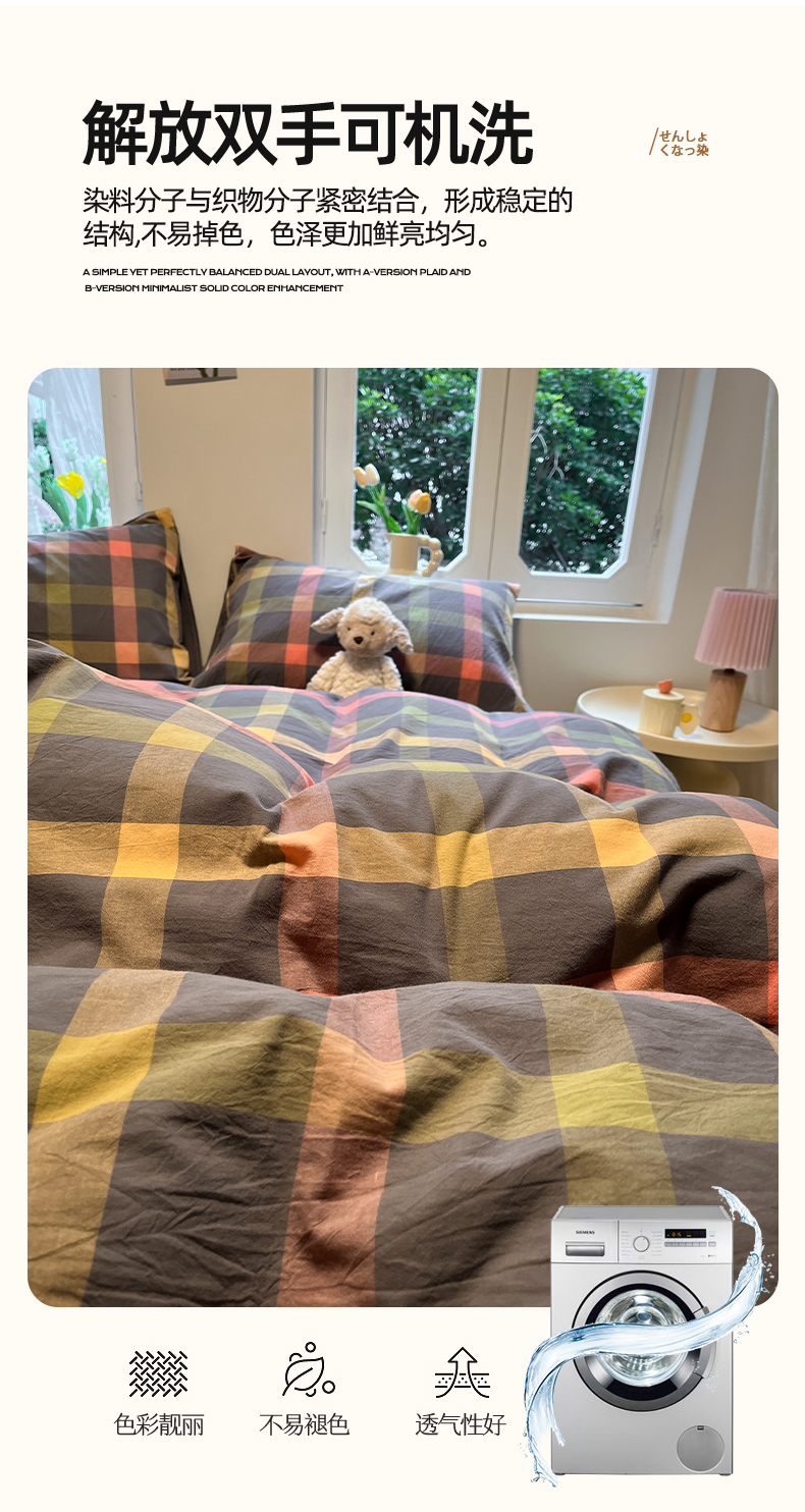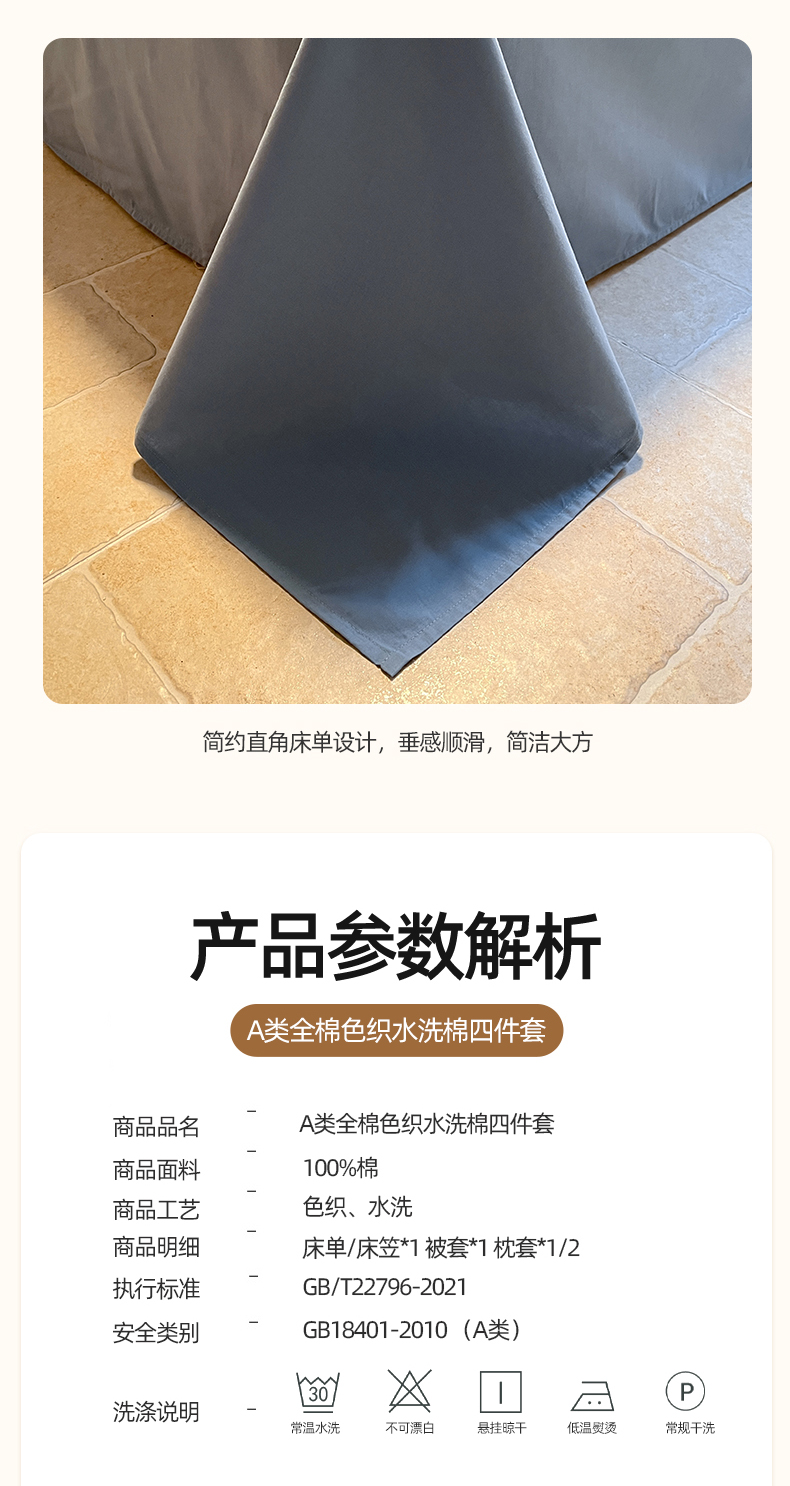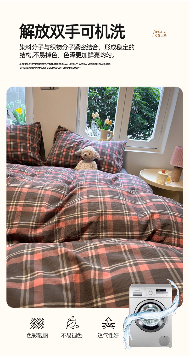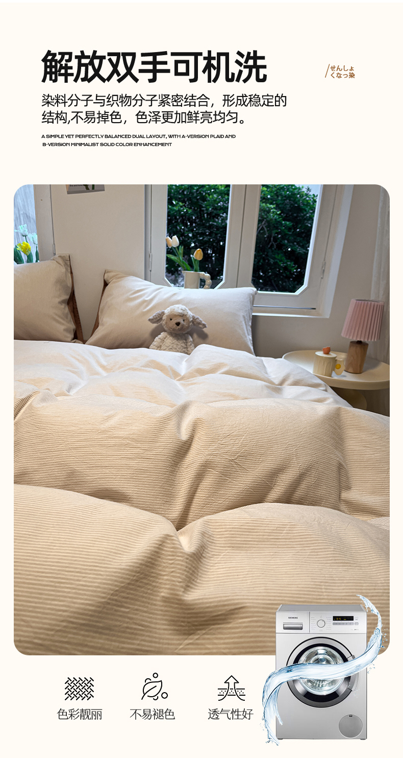 商品名称:(总)蓝邻家纺 2024新款全棉色织水洗棉四件套