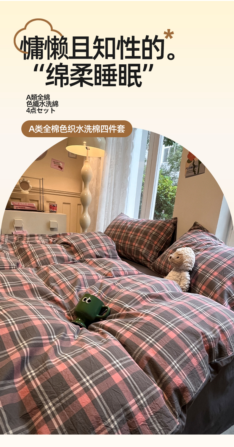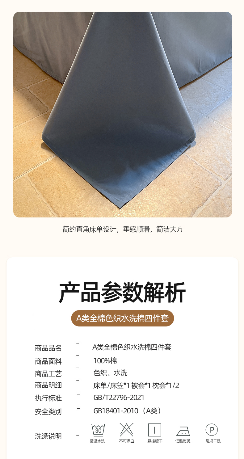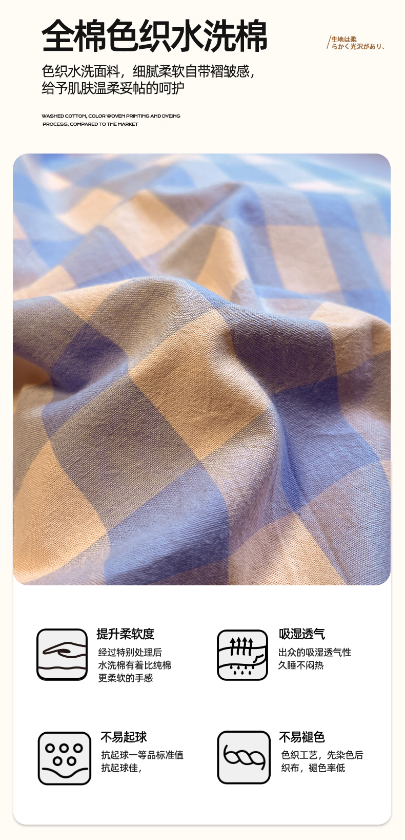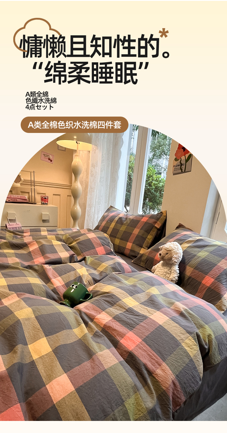 商品名称:(总)蓝邻家纺 2024新款全棉色织水洗棉四件套