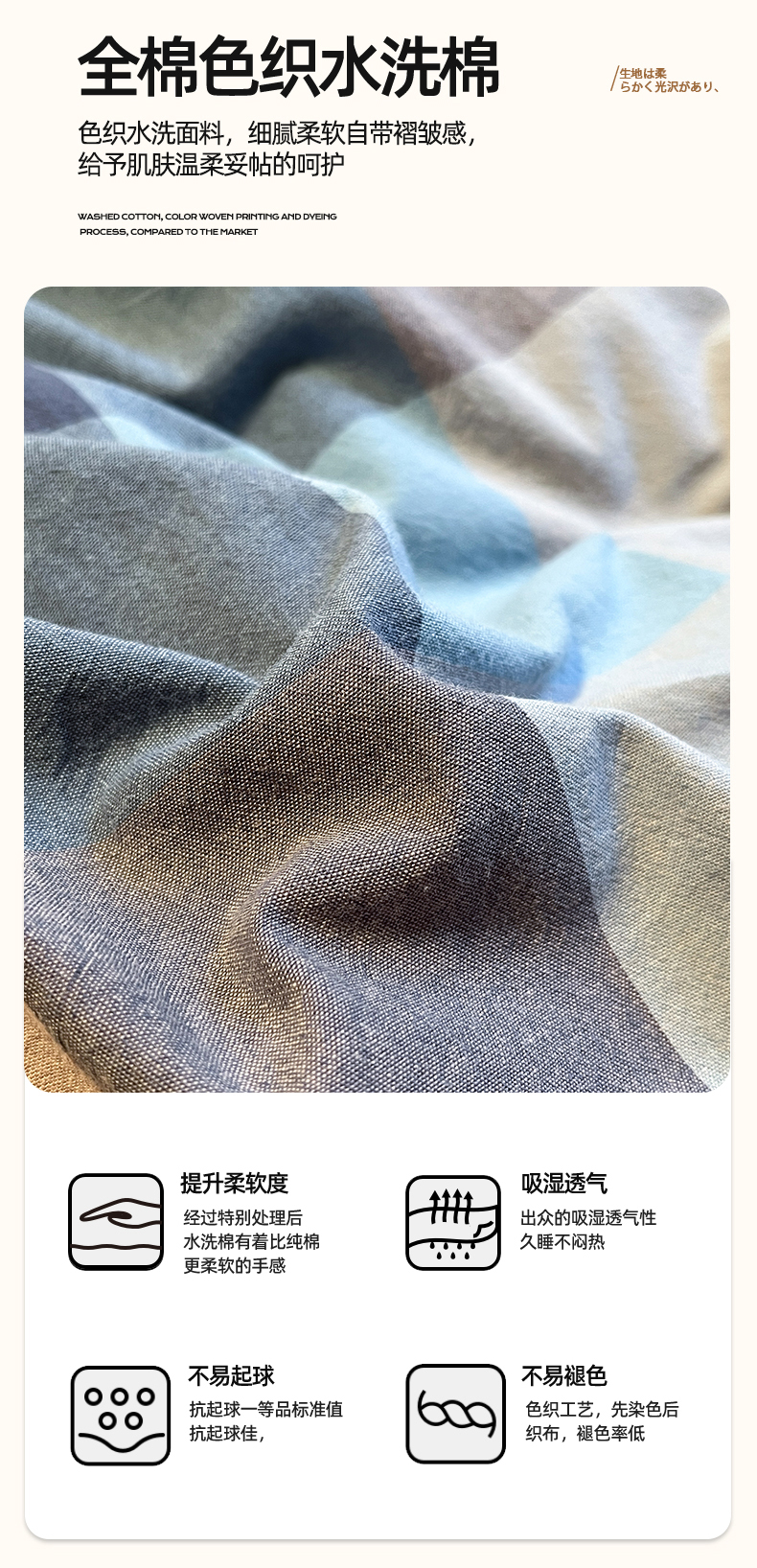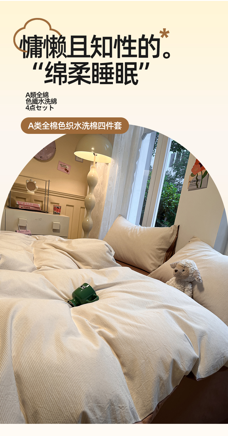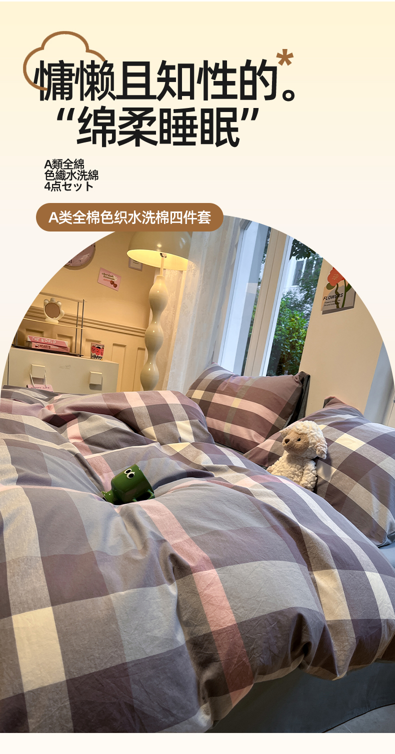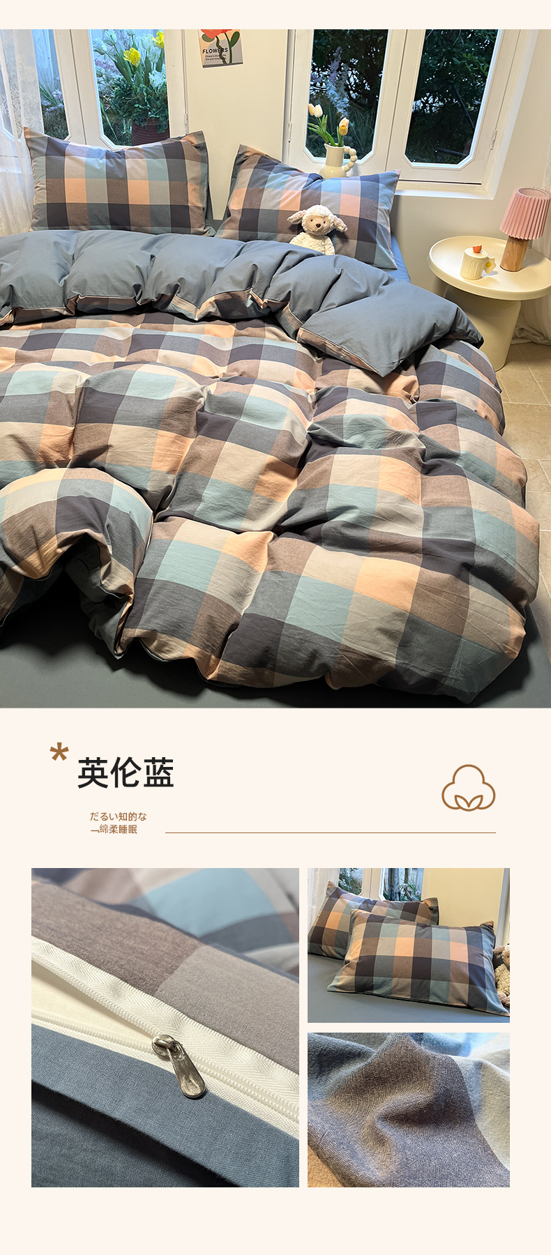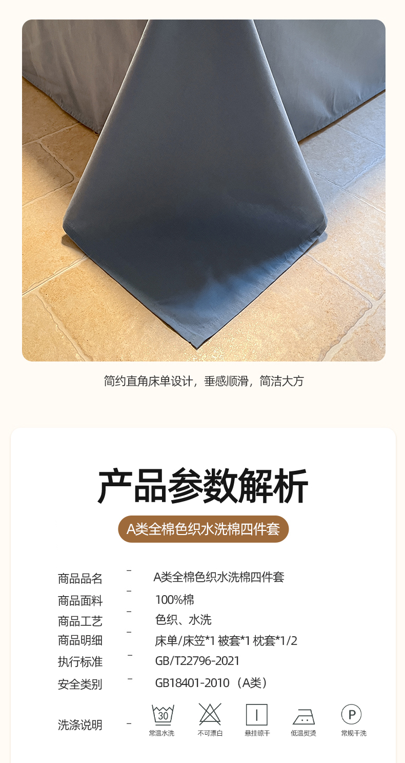 商品名称:(总)蓝邻家纺 2024新款全棉色织水洗棉四件套