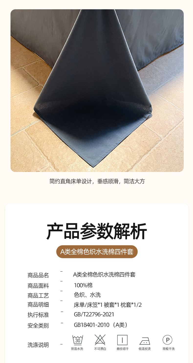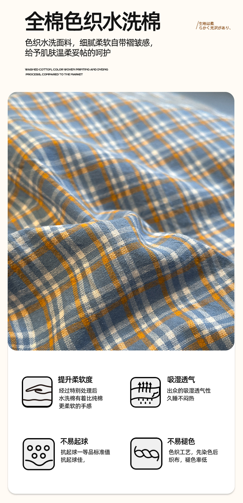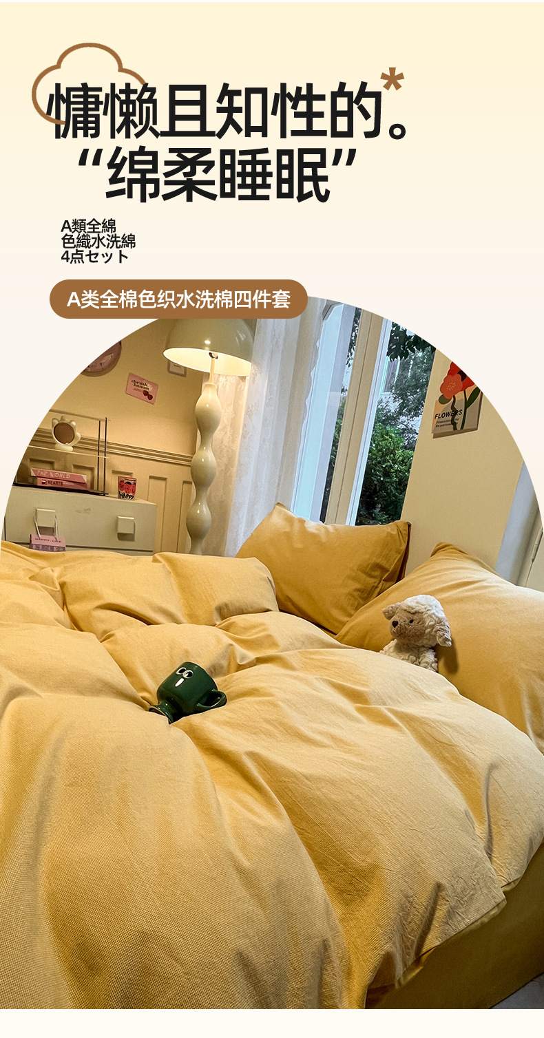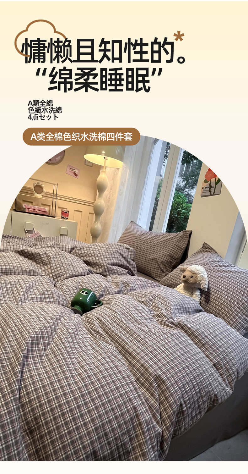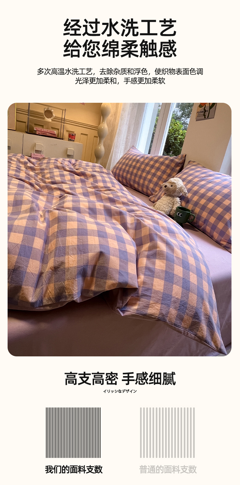 商品名称:(总)蓝邻家纺 2024新款全棉色织水洗棉四件套