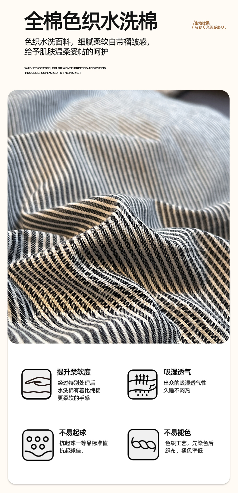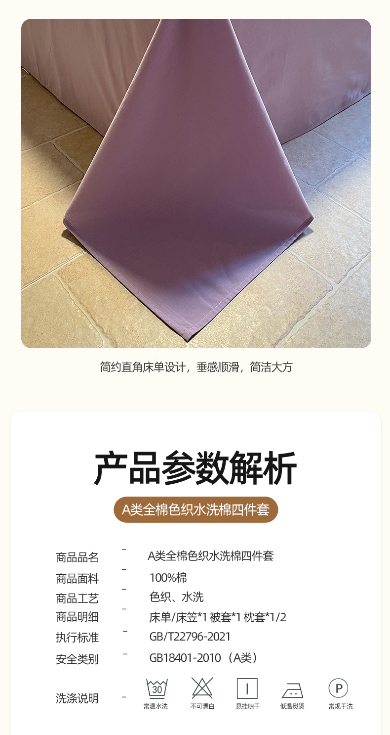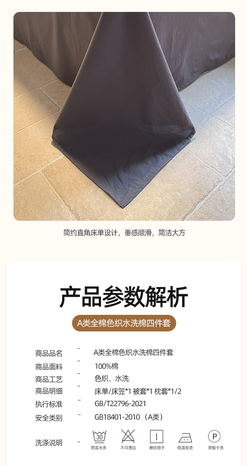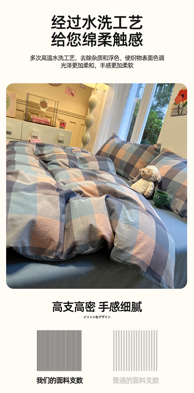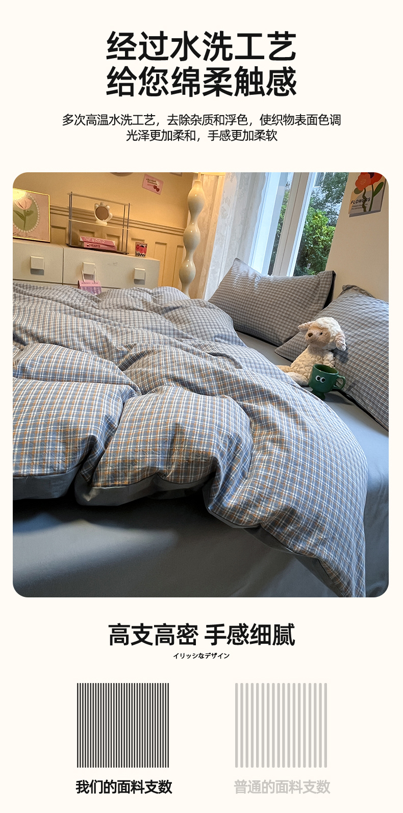 商品名称:(总)蓝邻家纺 2024新款全棉色织水洗棉四件套