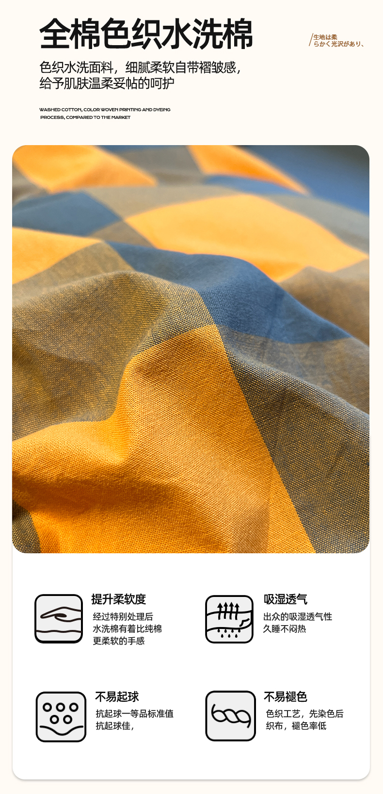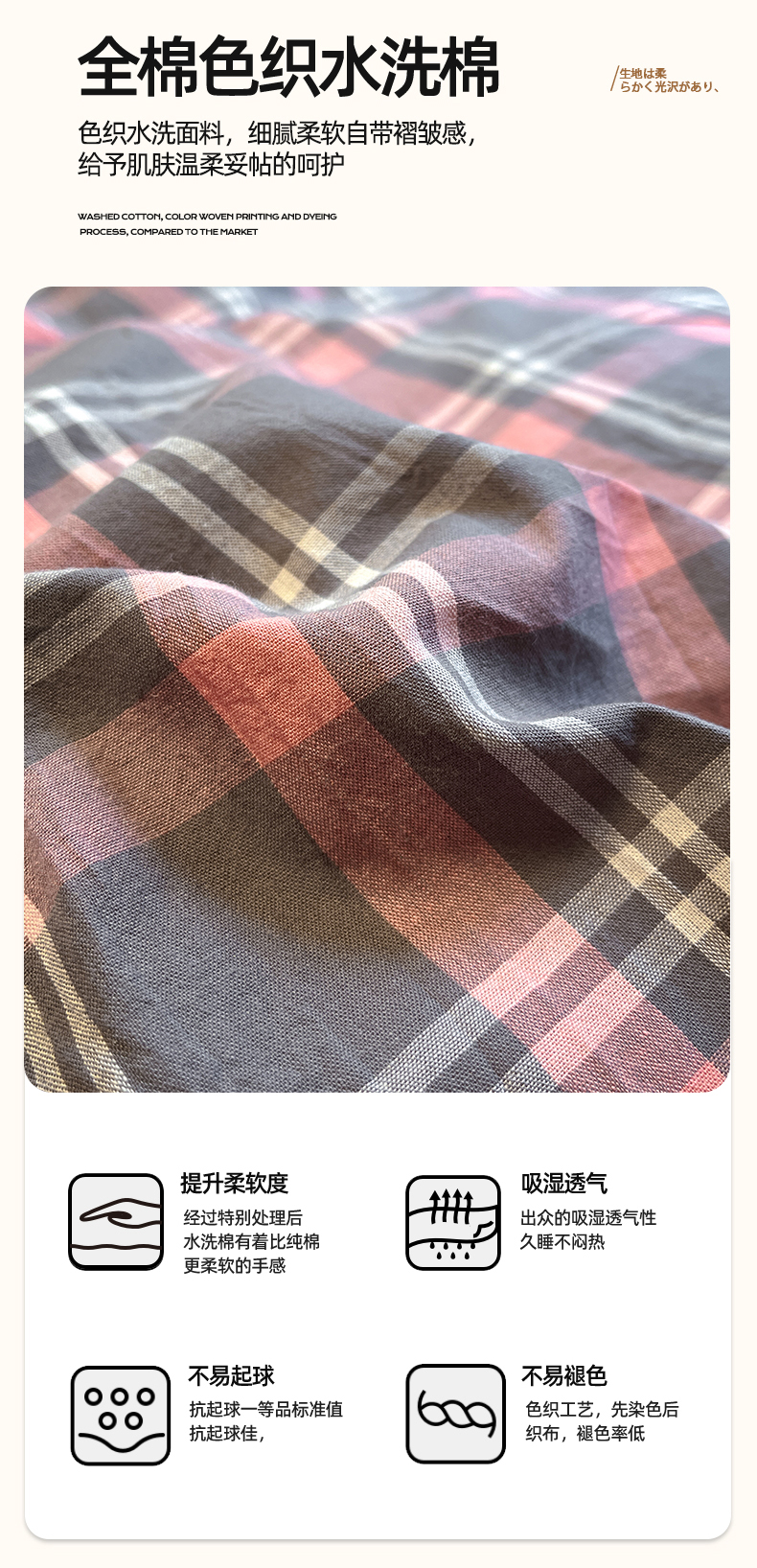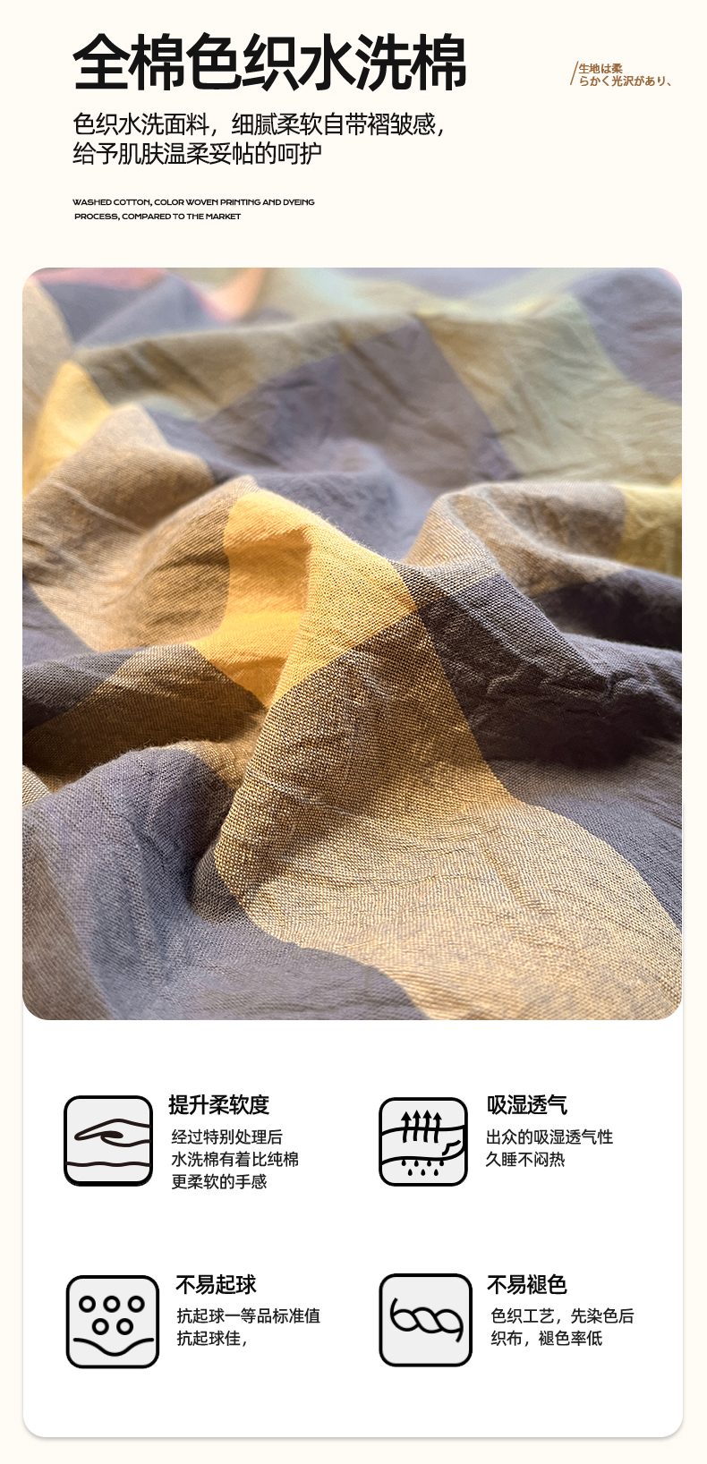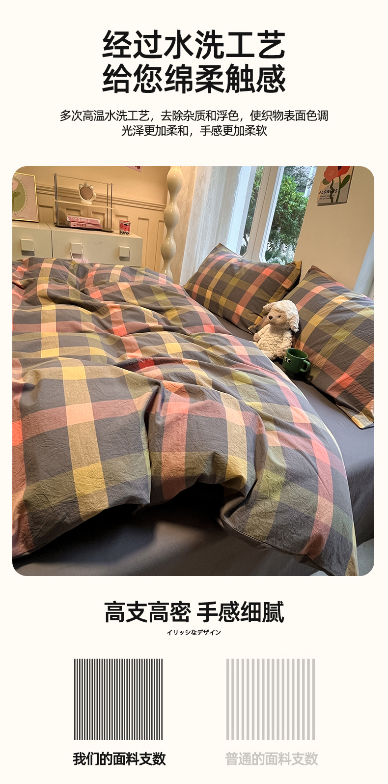 商品名称:(总)蓝邻家纺 2024新款全棉色织水洗棉四件套