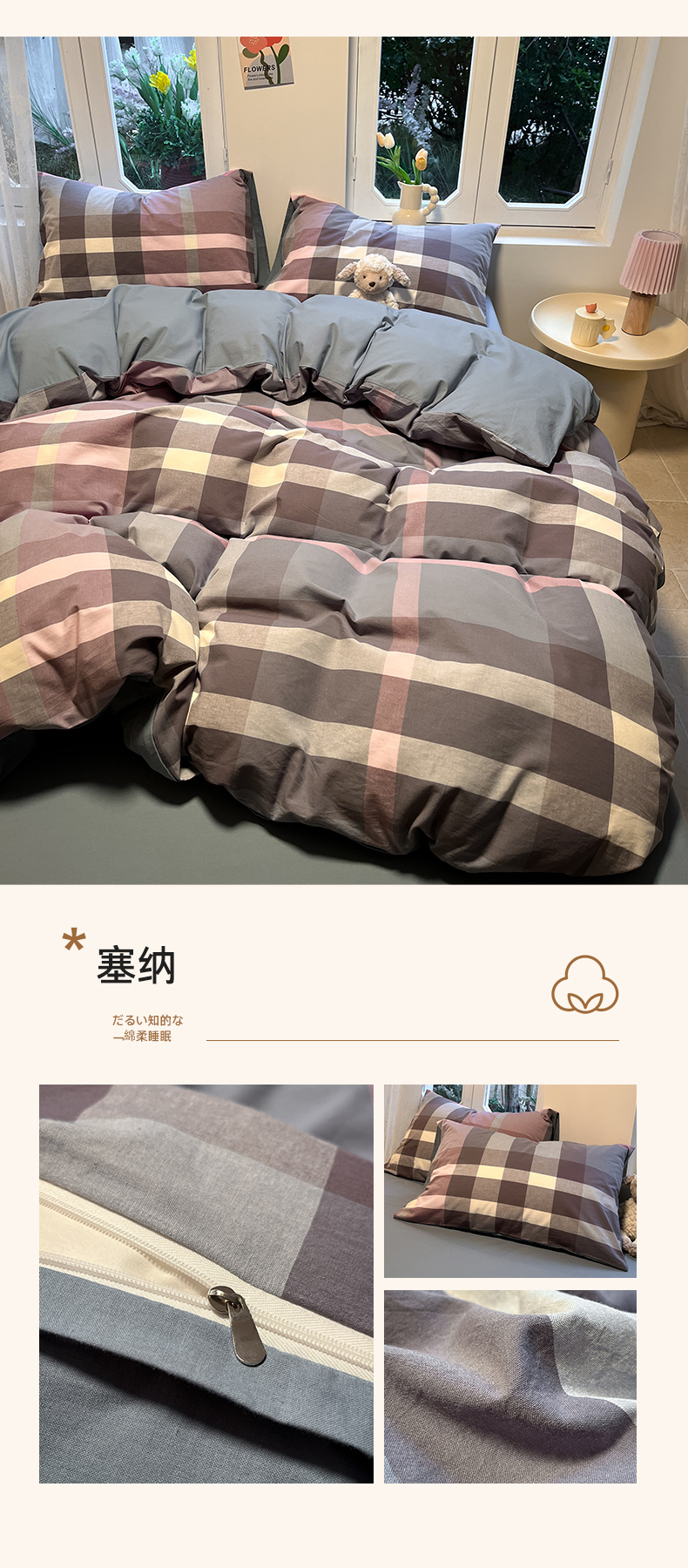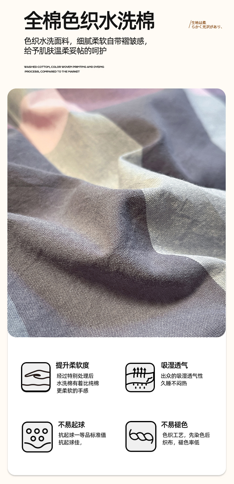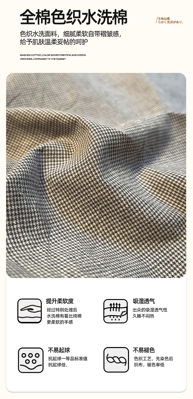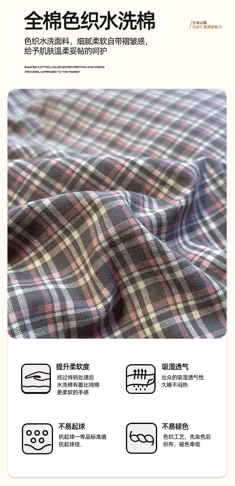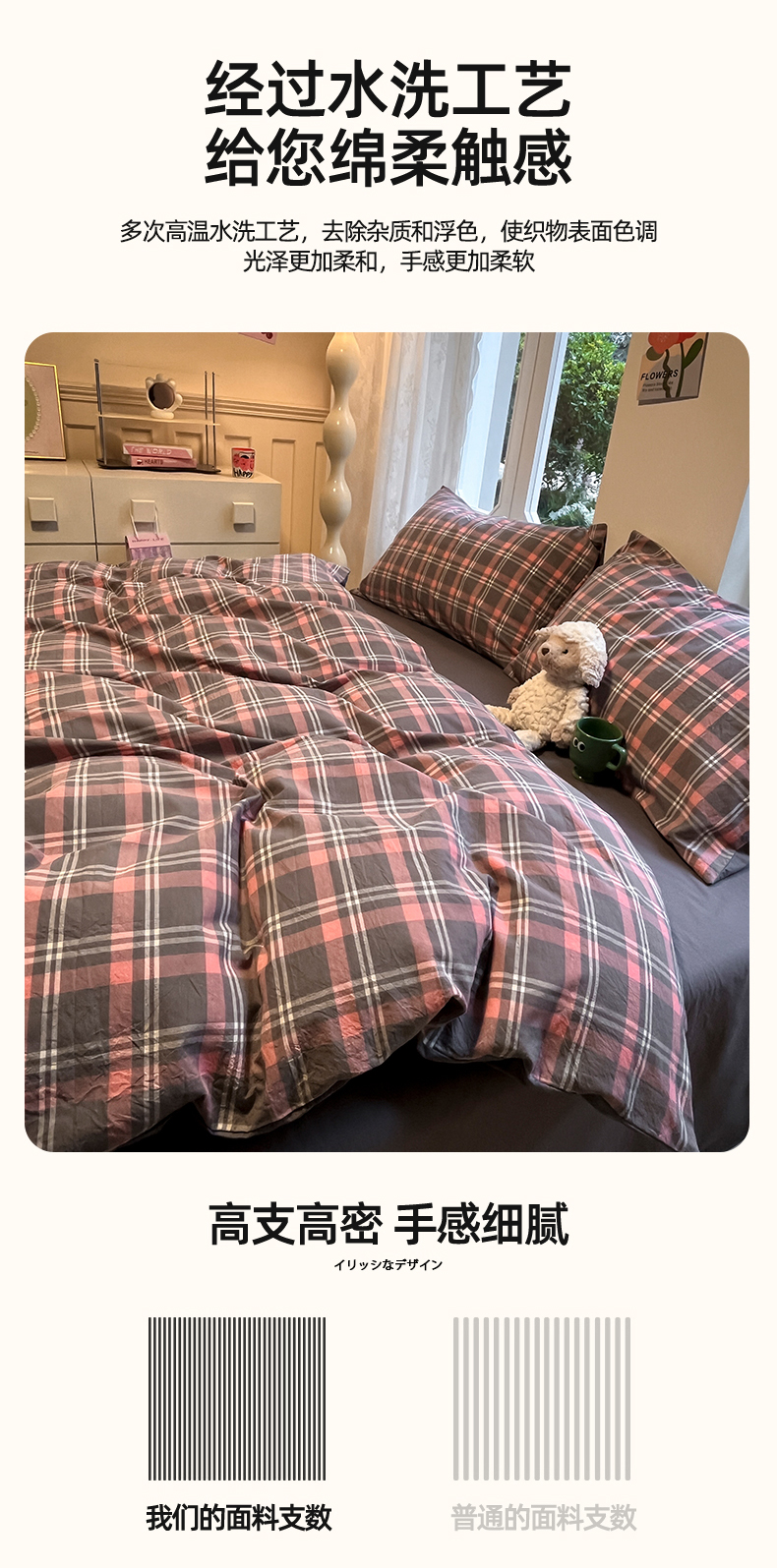 商品名称:(总)蓝邻家纺 2024新款全棉色织水洗棉四件套