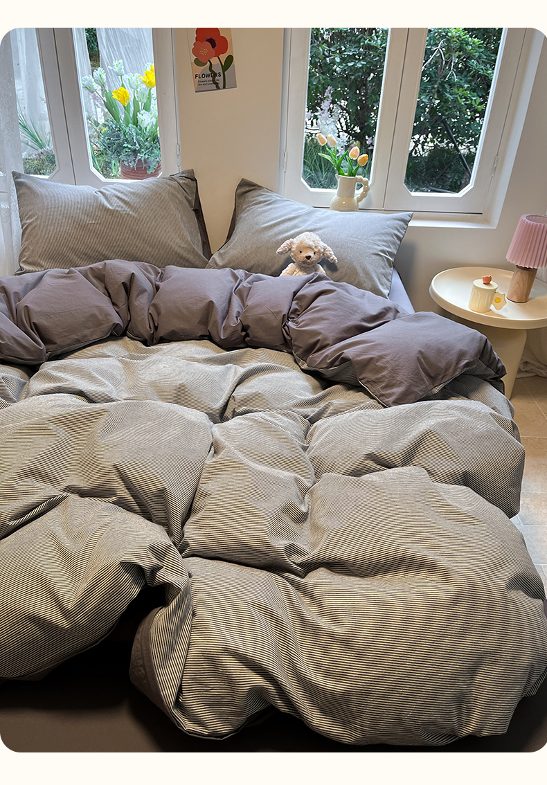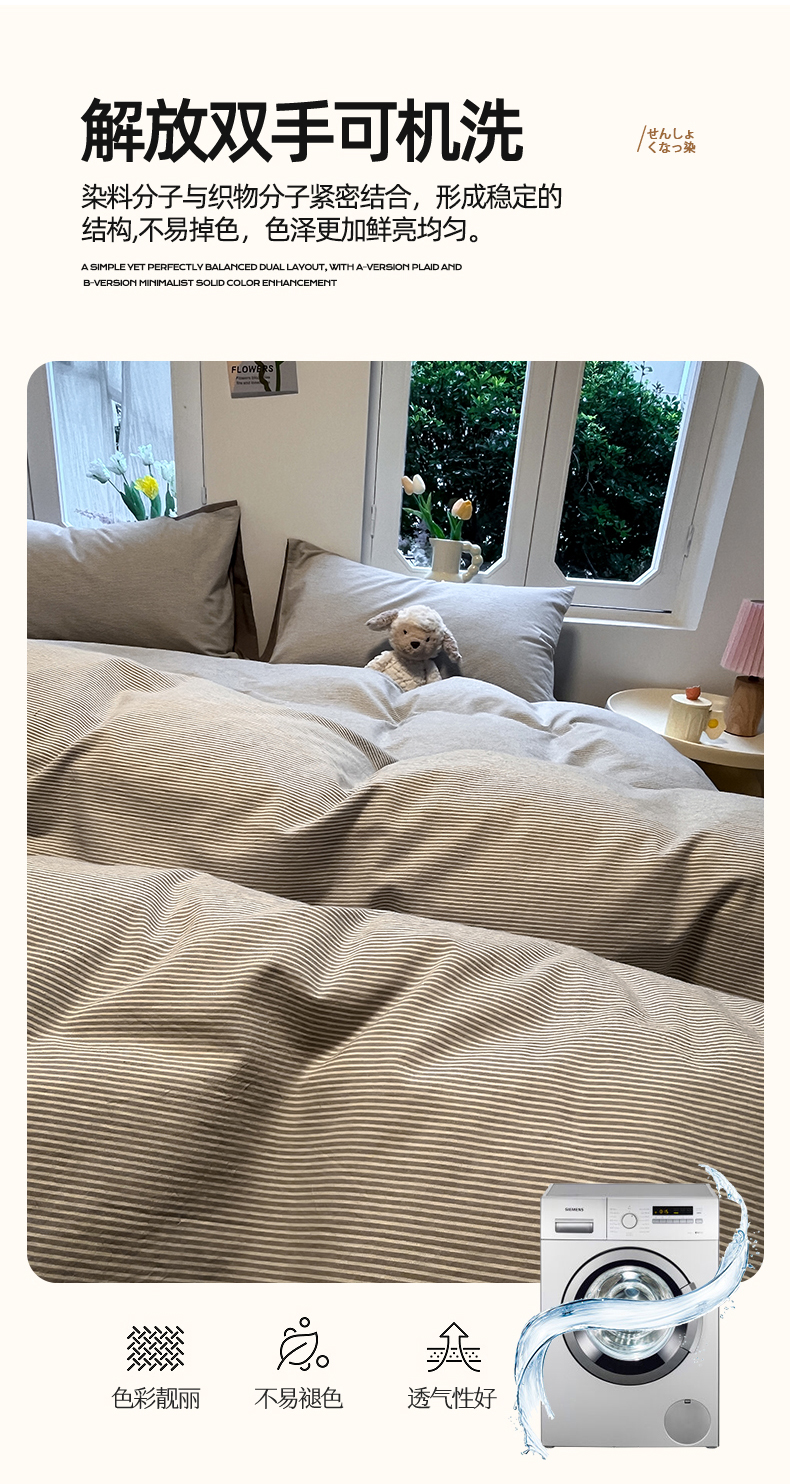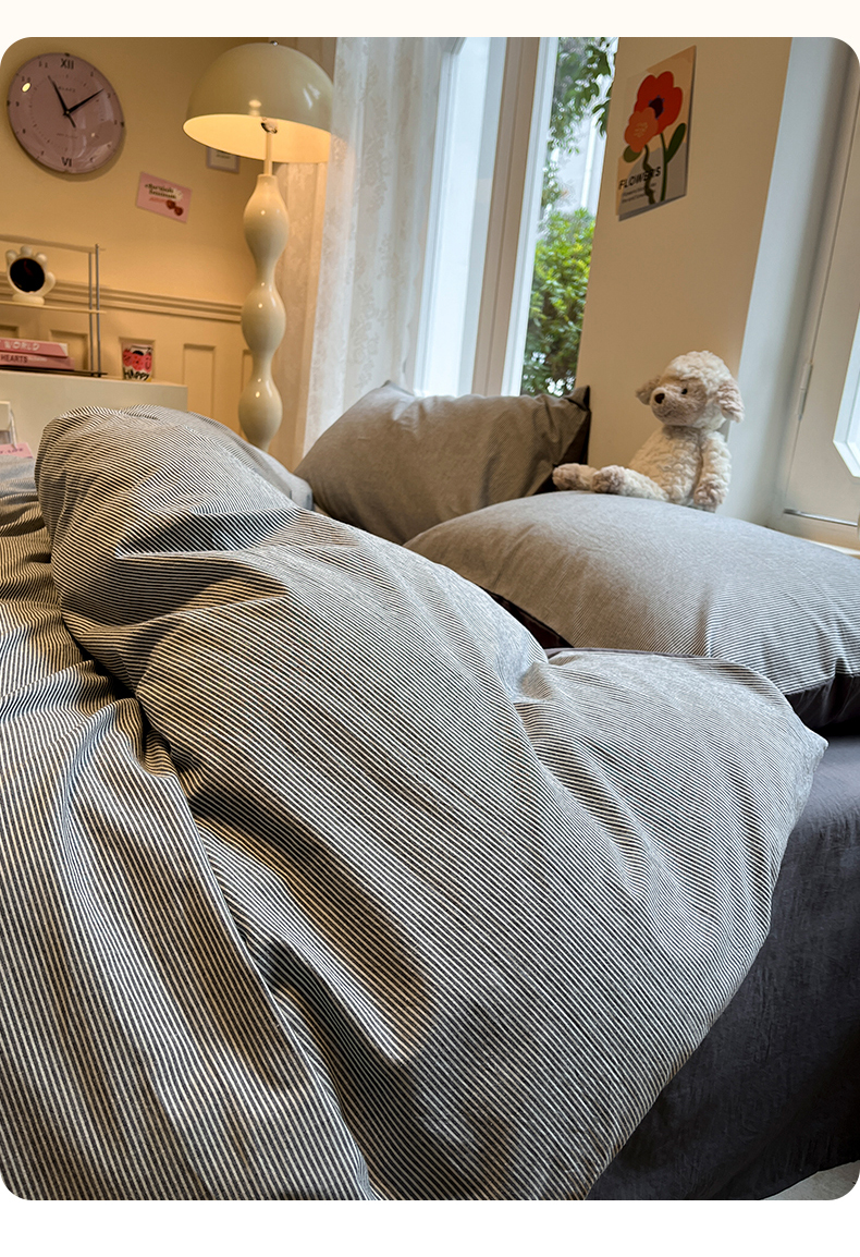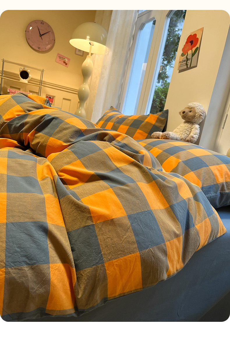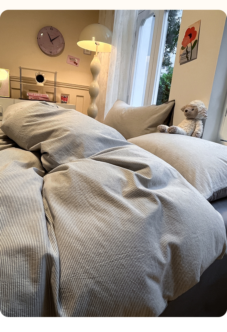 (总)蓝邻家纺 2024新款全棉色织水洗棉四件套