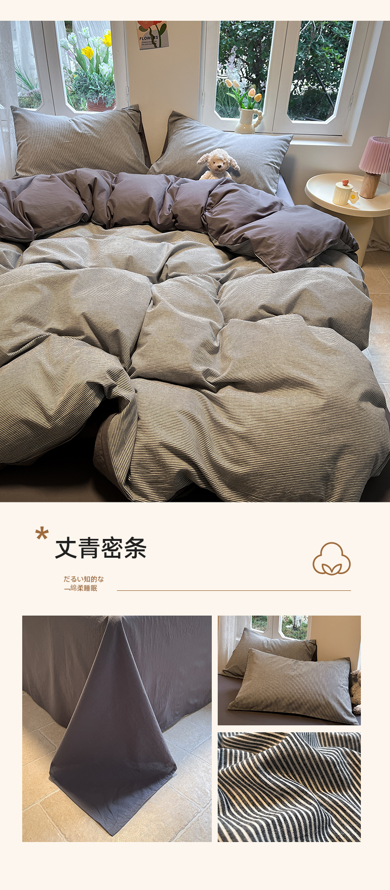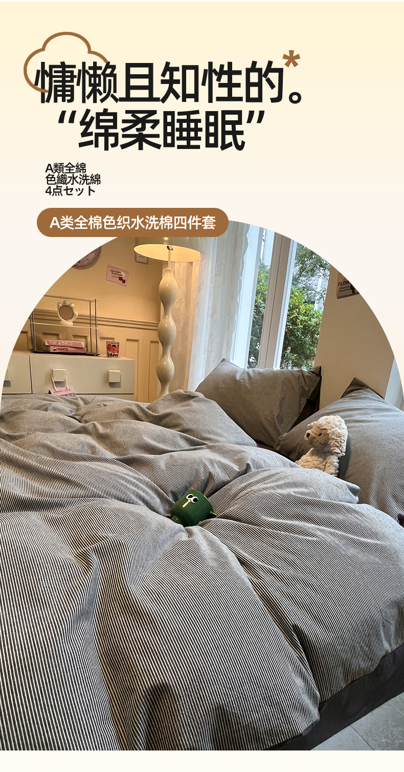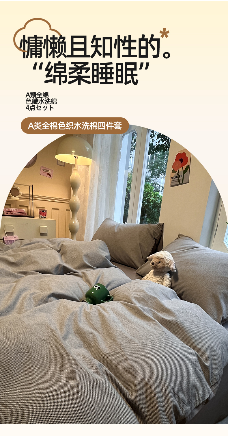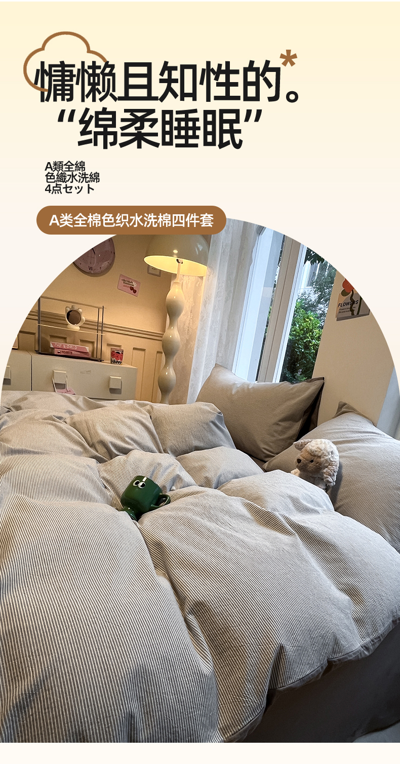 (总)蓝邻家纺 2024新款全棉色织水洗棉四件套