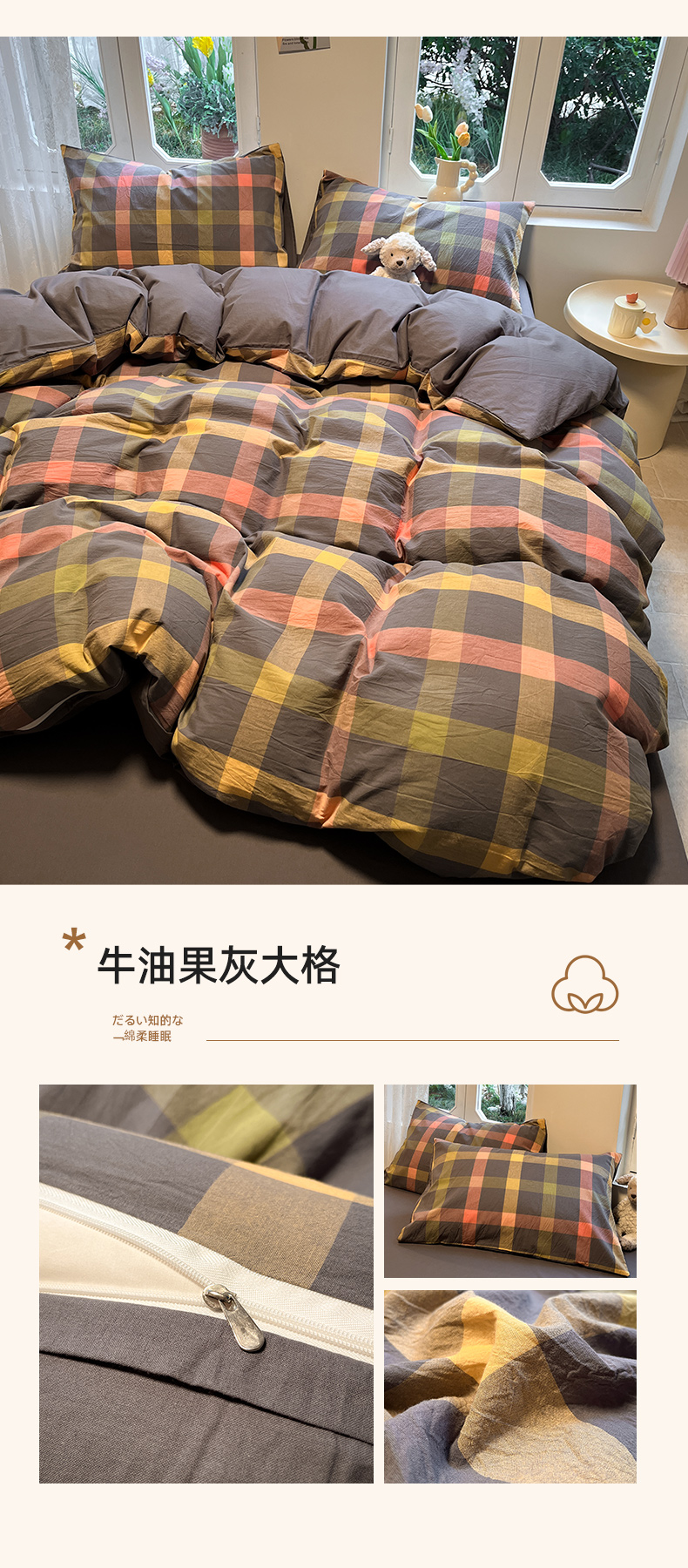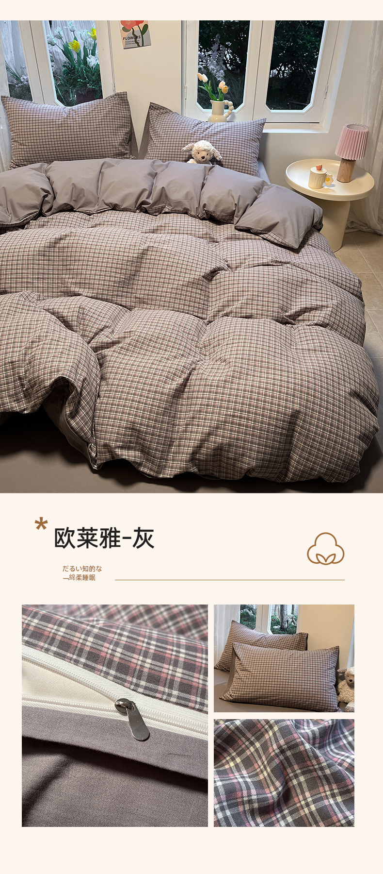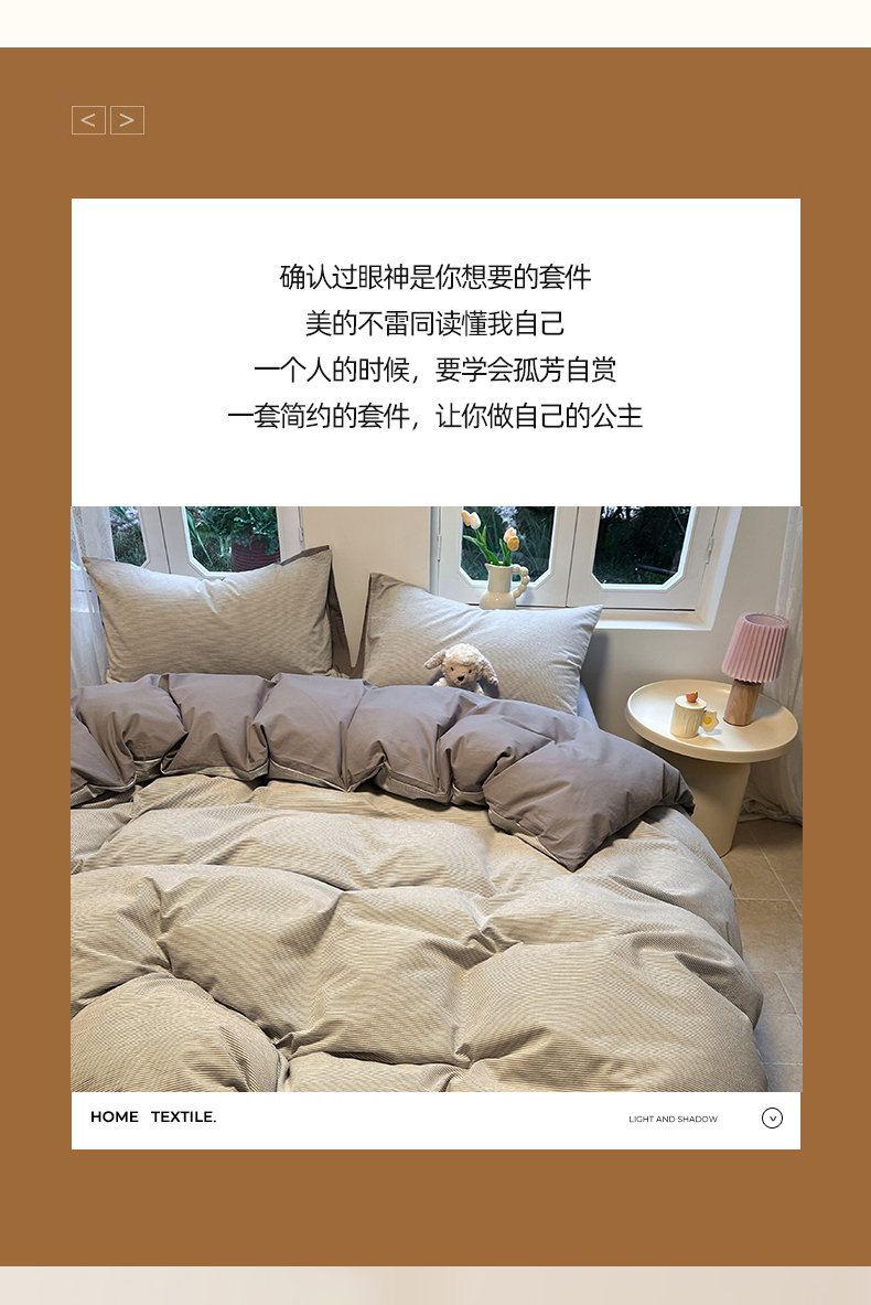 (总)蓝邻家纺 2026新款色织三层纱磨毛四件套系列,洛丽塔-灰,洛丽塔-米,摩登深林-兰,叶茂-咖,叶茂-深灰,长夏-桔咖,长夏-深蓝