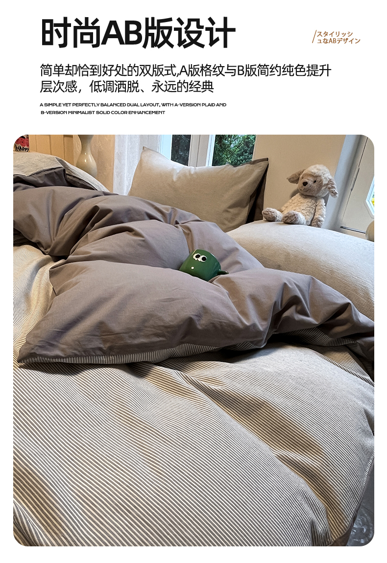 (总)蓝邻家纺 2024新款全棉印花简约格子条纹四件套,幻波-兰,幻波-绿,灰度-灰,灰度-兰,屹川-灰
