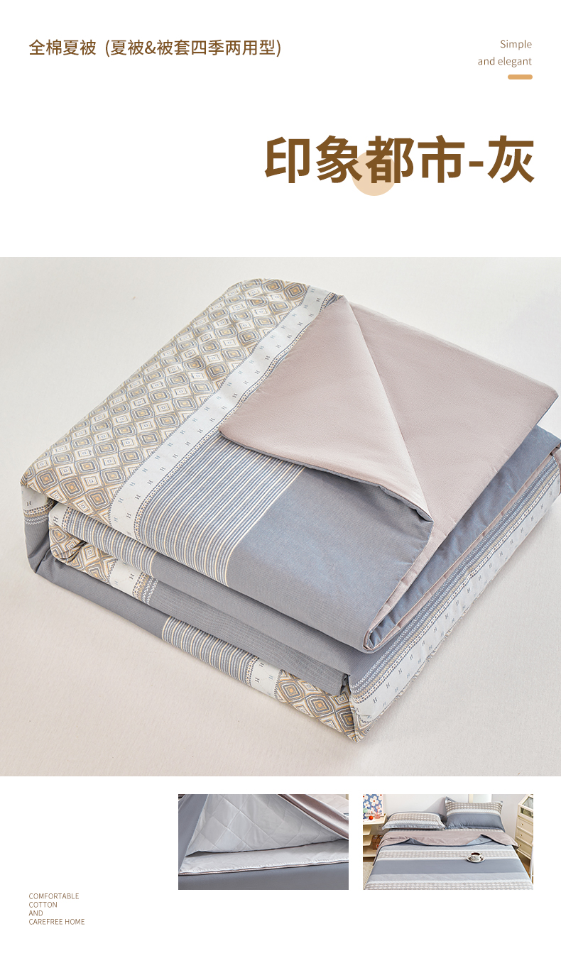 商品名称:元元被芯 2024新款全棉小清新夏被四件套-单夏被 印象都市-灰