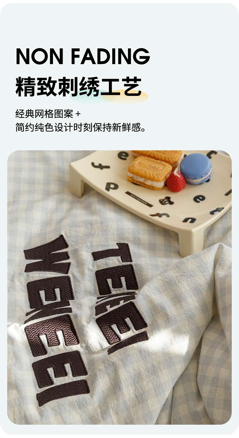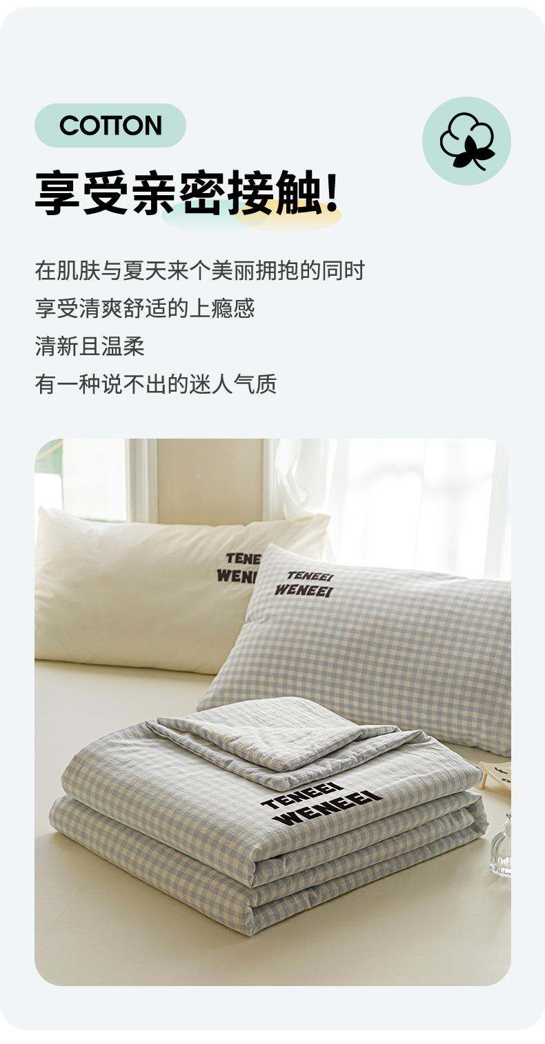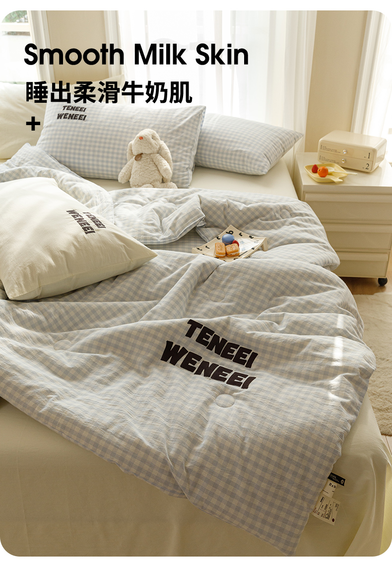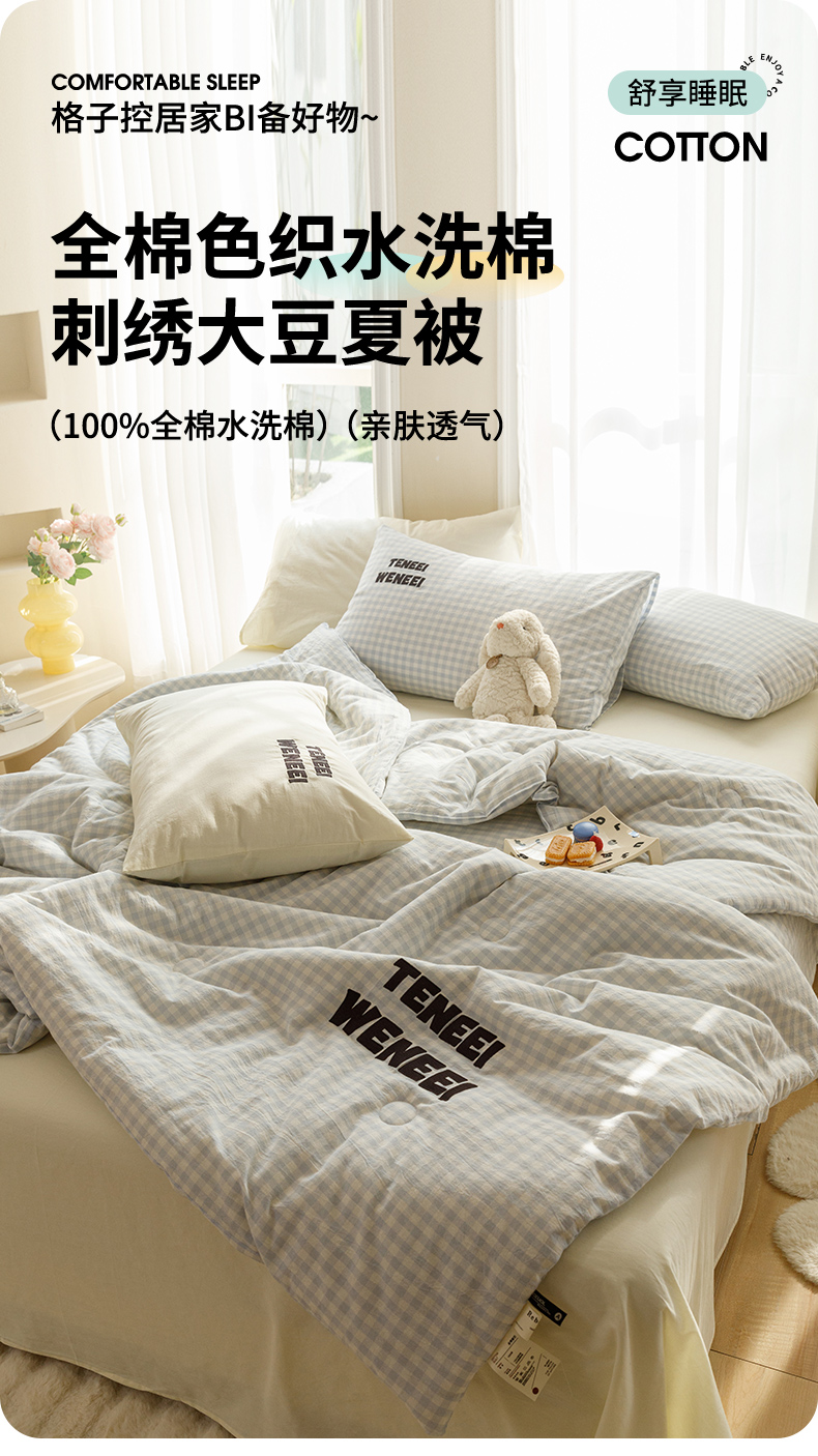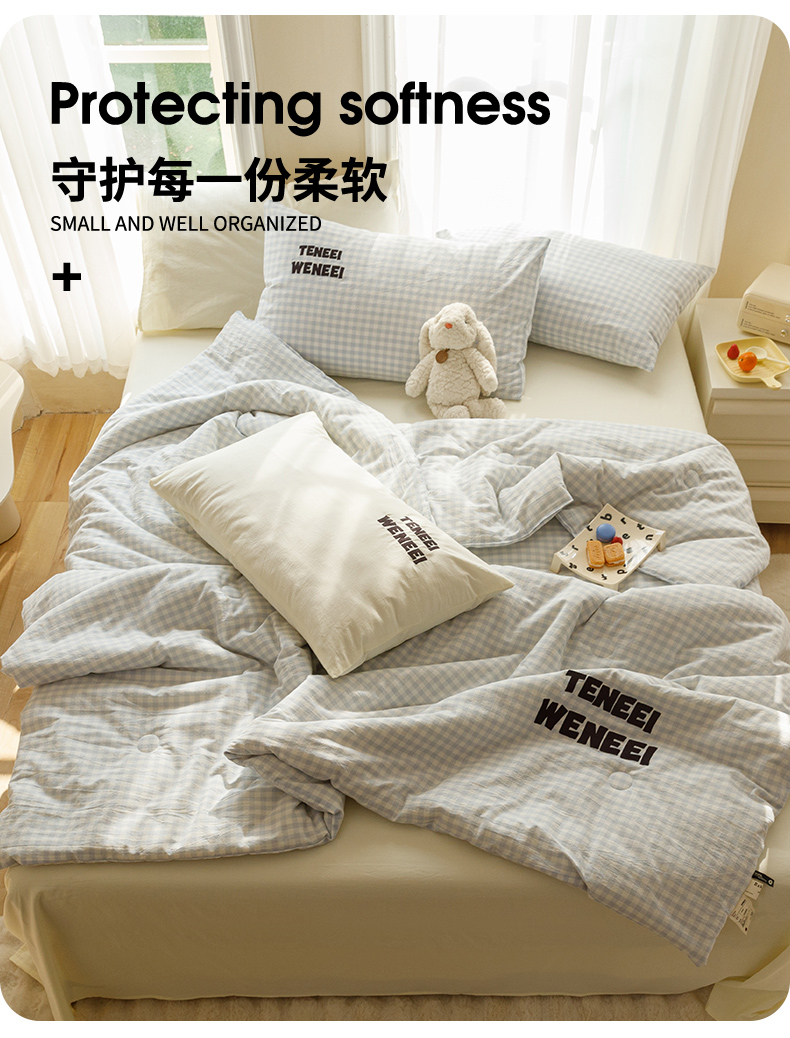 荔禾家居 2024新款ins混搭博主风全棉色织水洗棉夏被四件组 南风