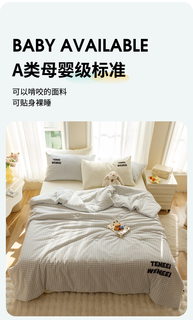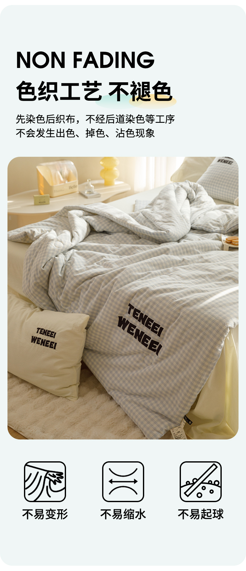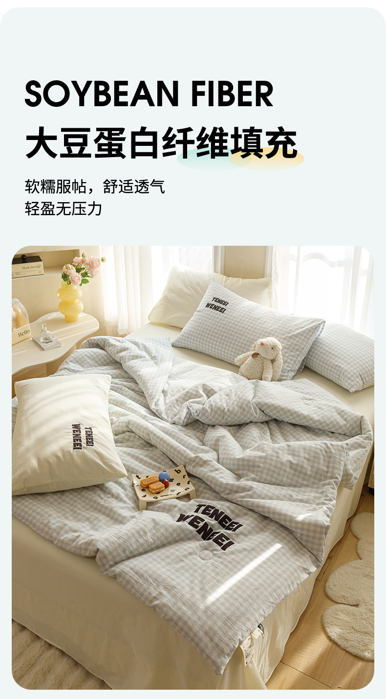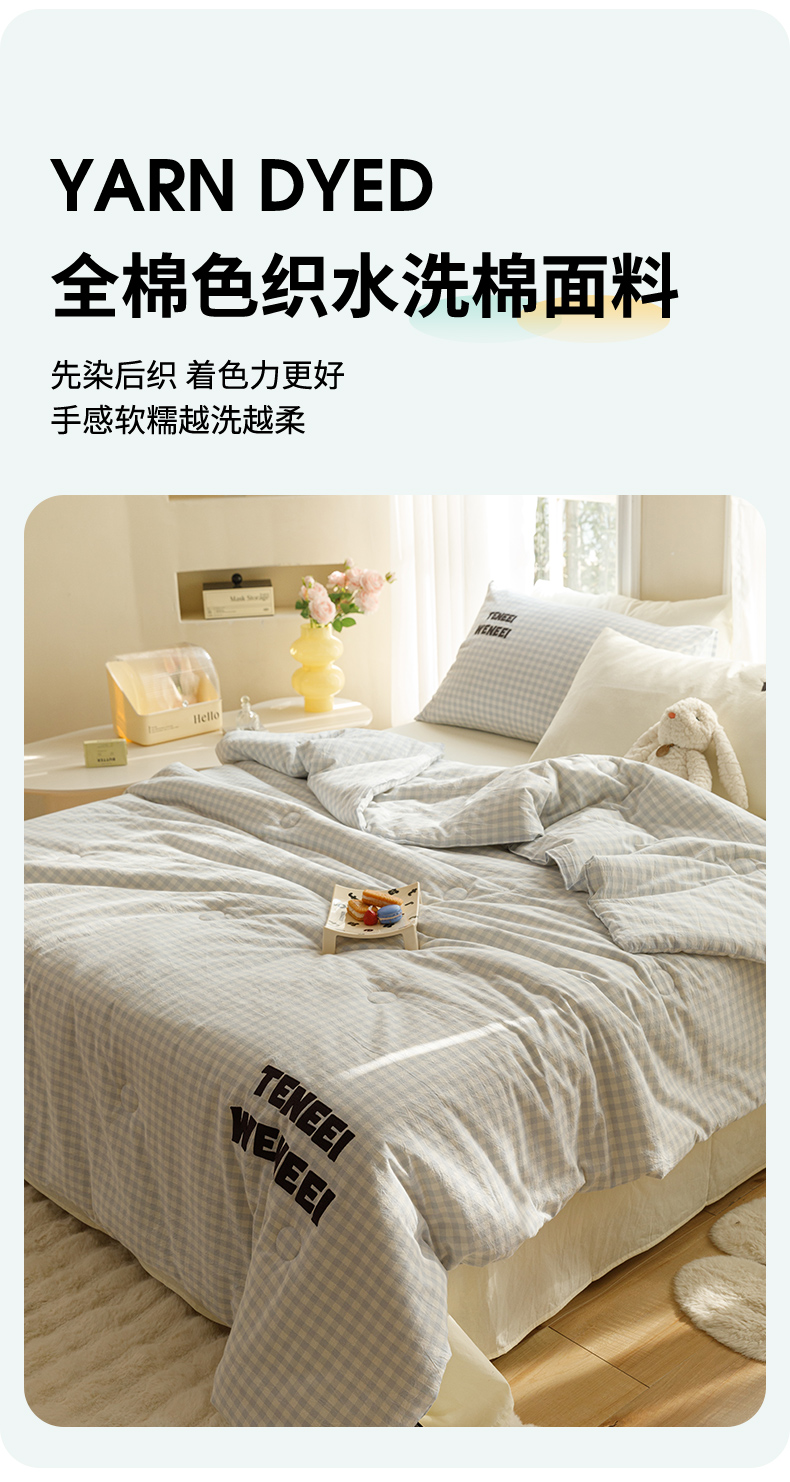 • 91家纺网 家纺一手货源 找家纺 荔禾家居 2024新款ins混搭博主风全棉色织水洗棉夏被四件组 南风