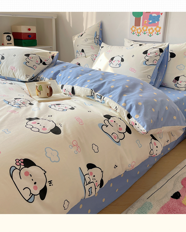 (总)卧趣家纺 2024秋冬新款三丽鸥正版授权原棉磨毛卡通系列四件套,波点美乐蒂,嘟嘟美乐蒂,格子美乐蒂,哈喽KT,伙伴玉桂狗,开心美乐蒂,蓝色玉桂狗,乐乐玉贵狗,萌萌库洛米,糖果库洛米,小小库洛米