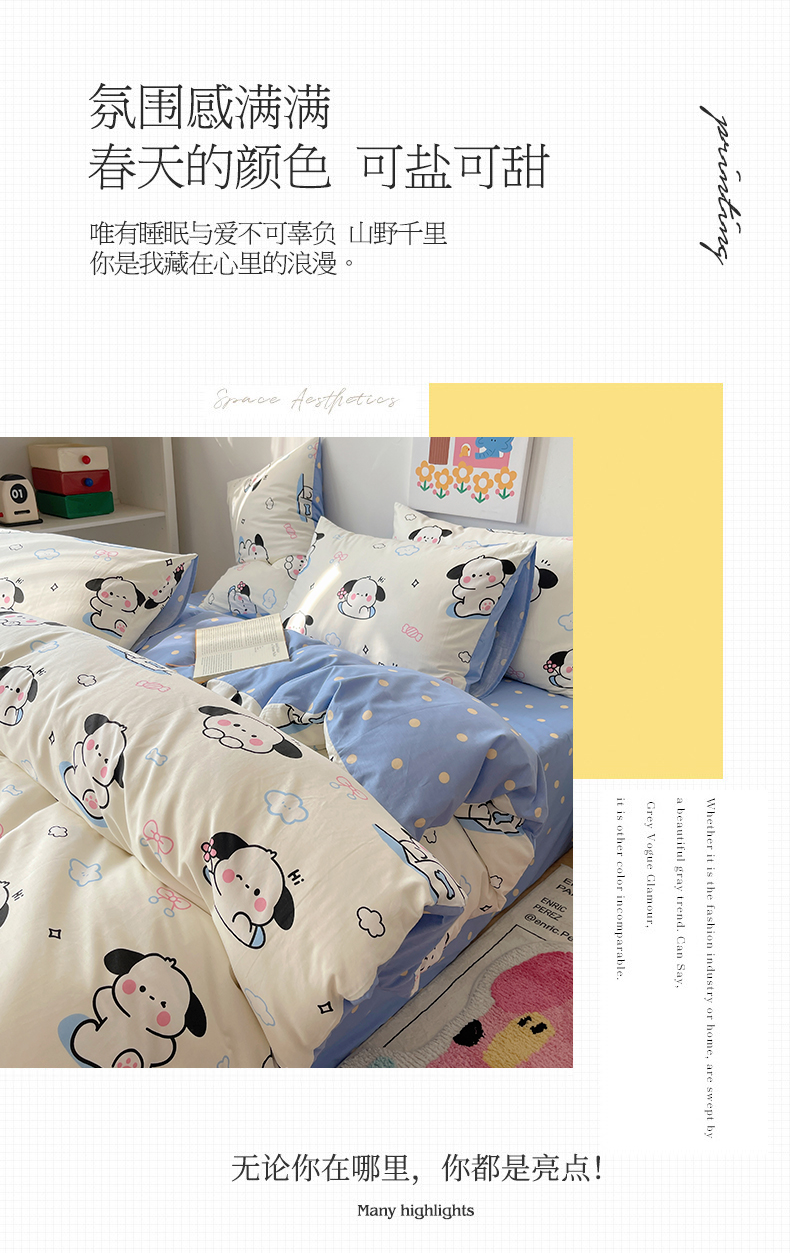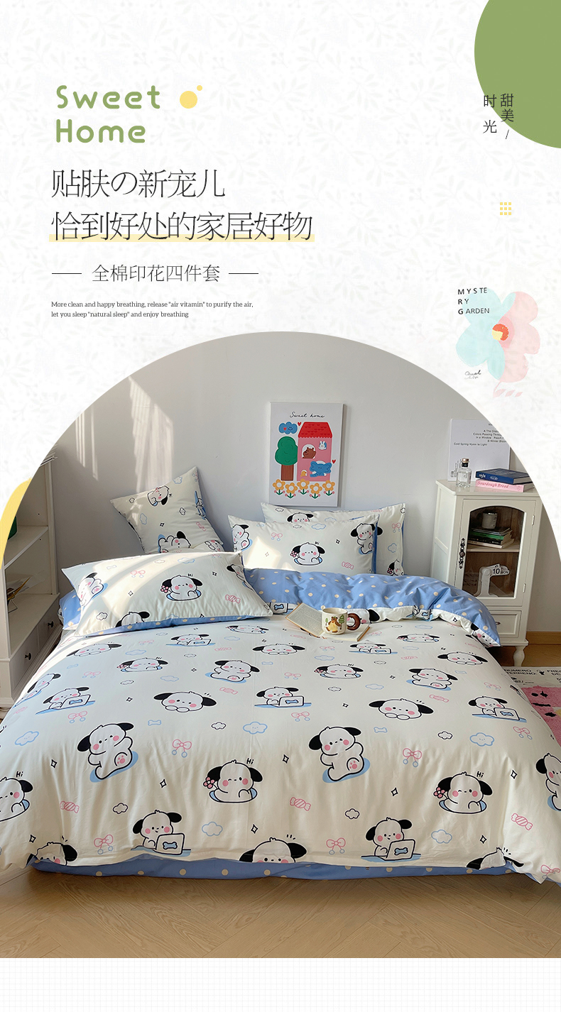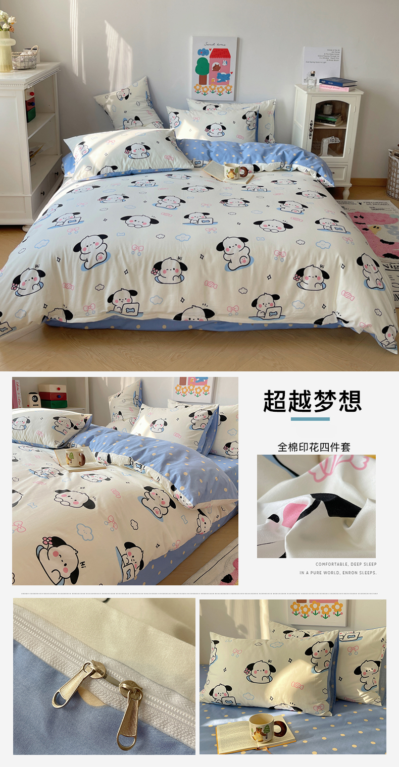 (总)卧趣家纺 2024秋冬新品三丽鸥全棉磨毛大版卡通四件套,大耳狗,吉蒂猫,库洛米,美乐蒂,梦幻精灵,魔法小精灵,魔力宝贝,帕恰狗,淘气宝贝,音乐之心,优雅猫,玉桂狗