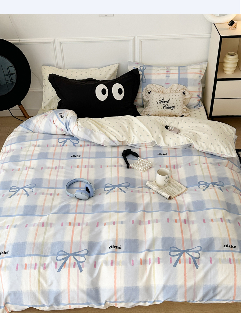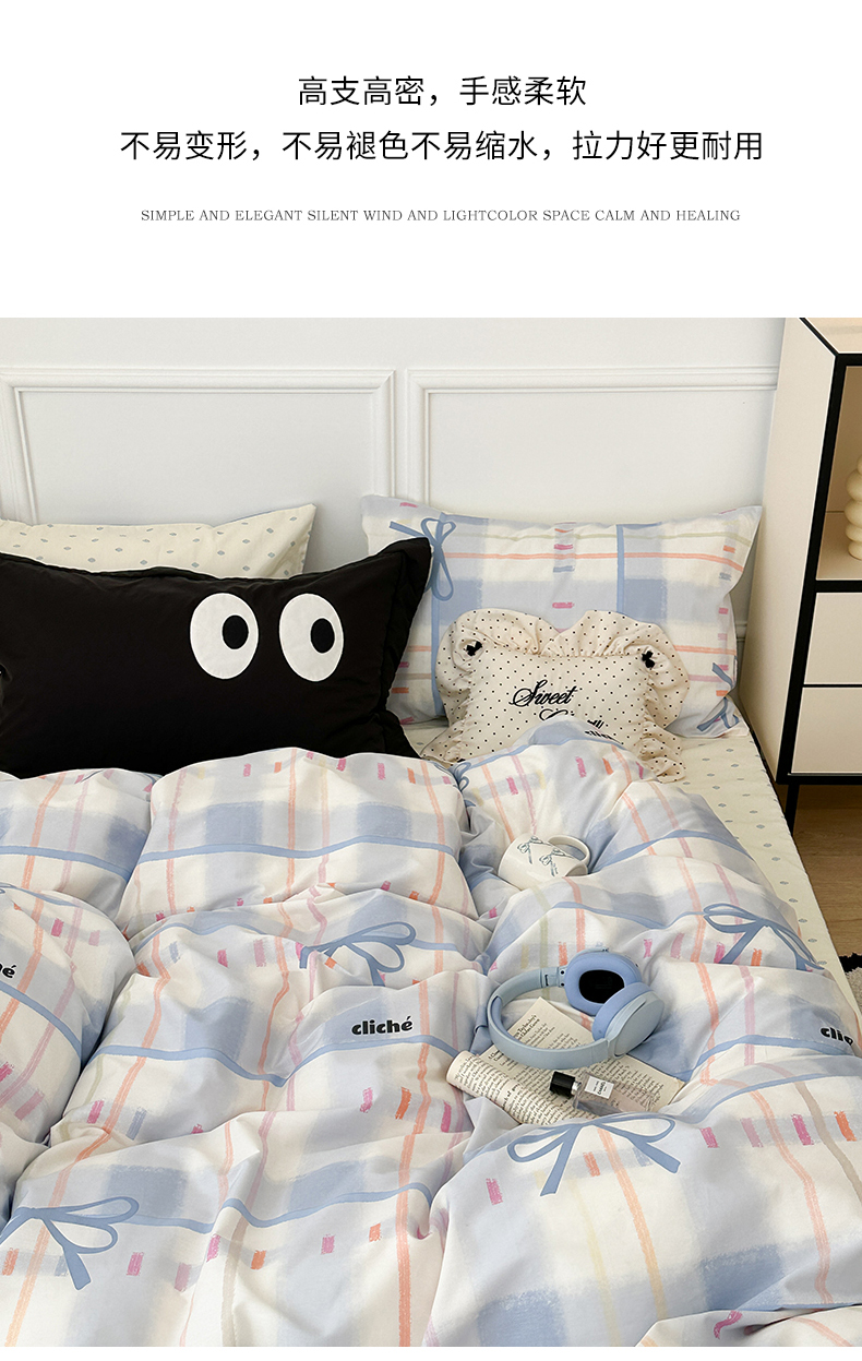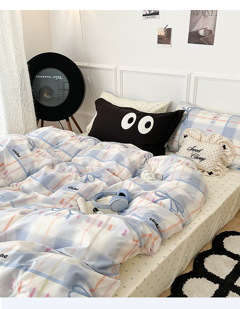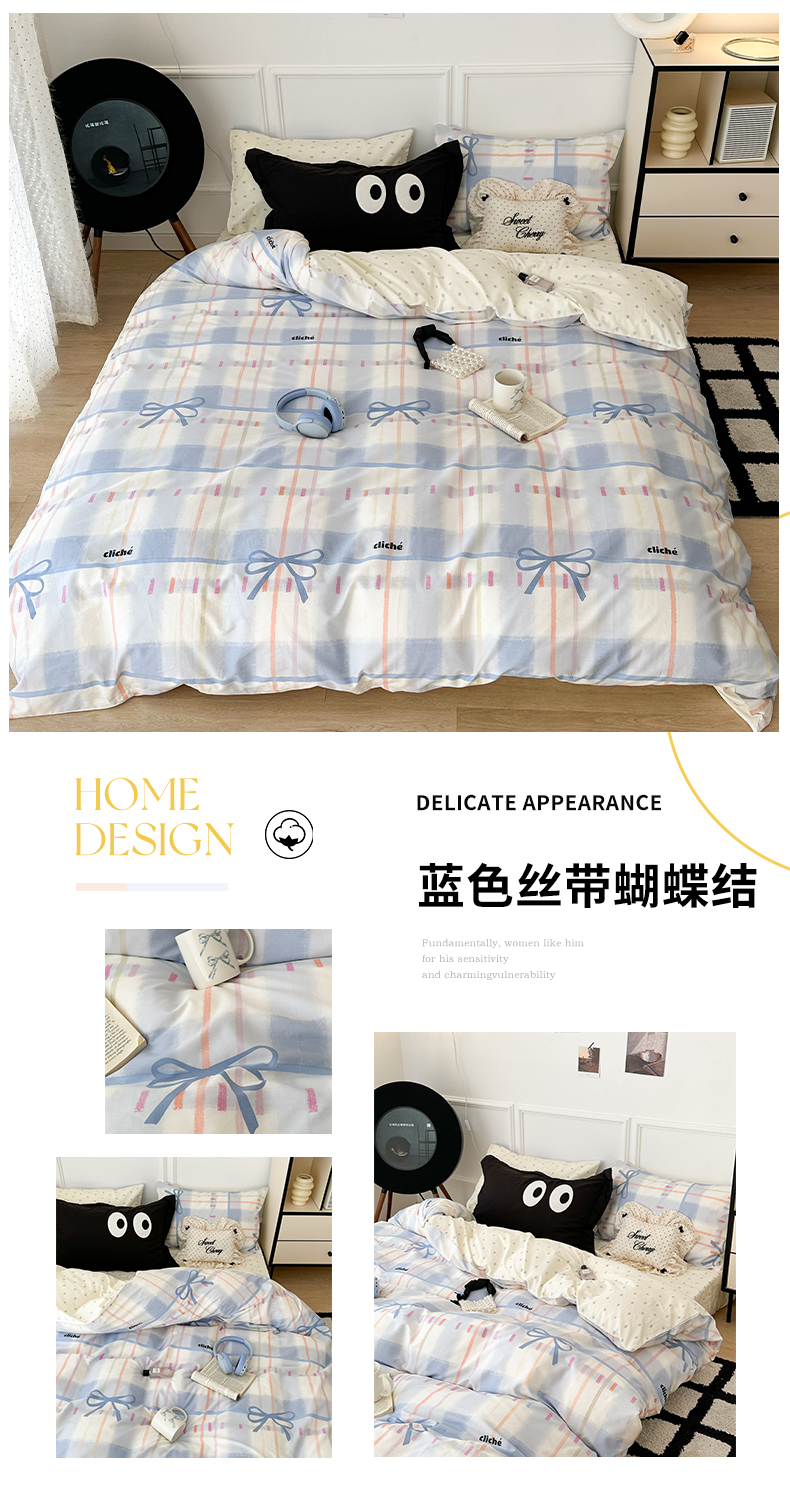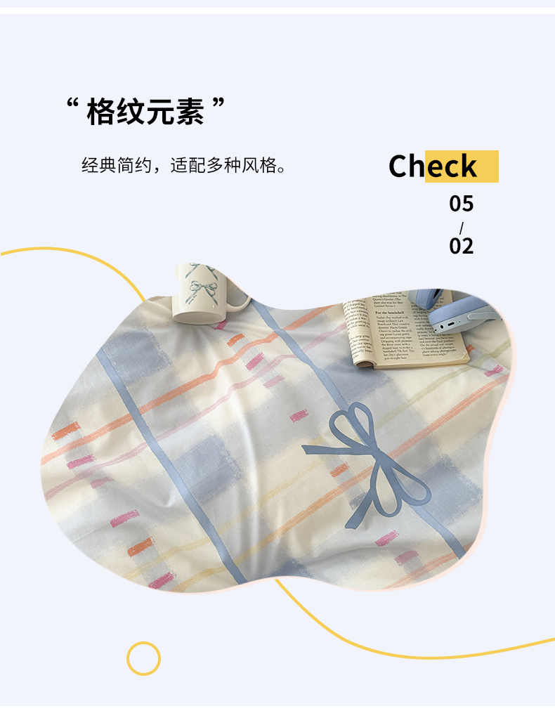 商品名称:昔可 2024新款全棉格子元素四件套 蓝色丝带蝴蝶结