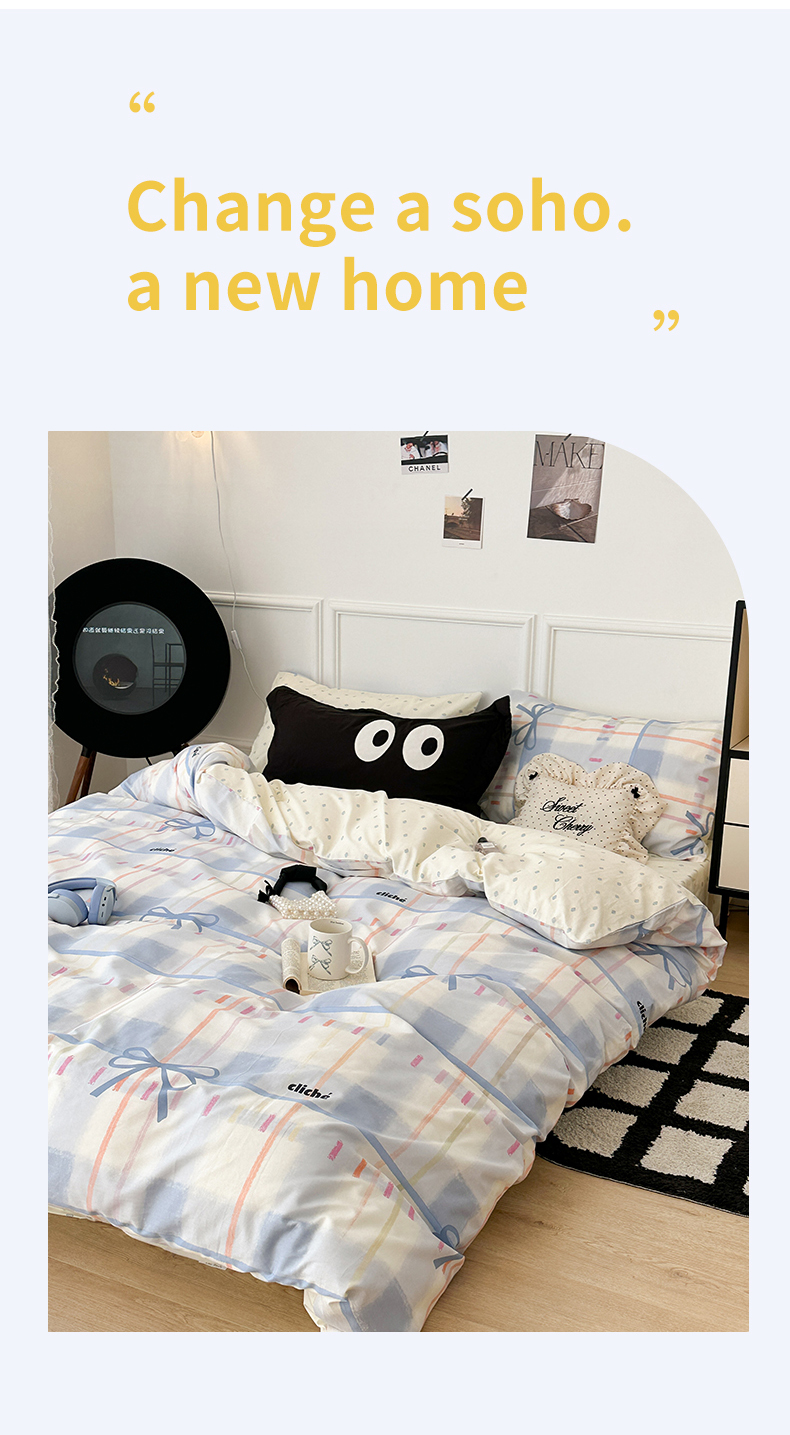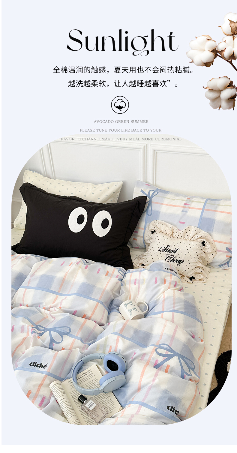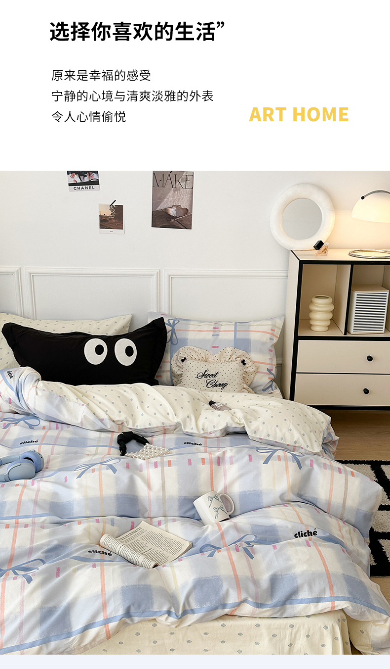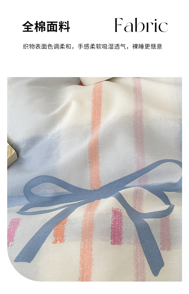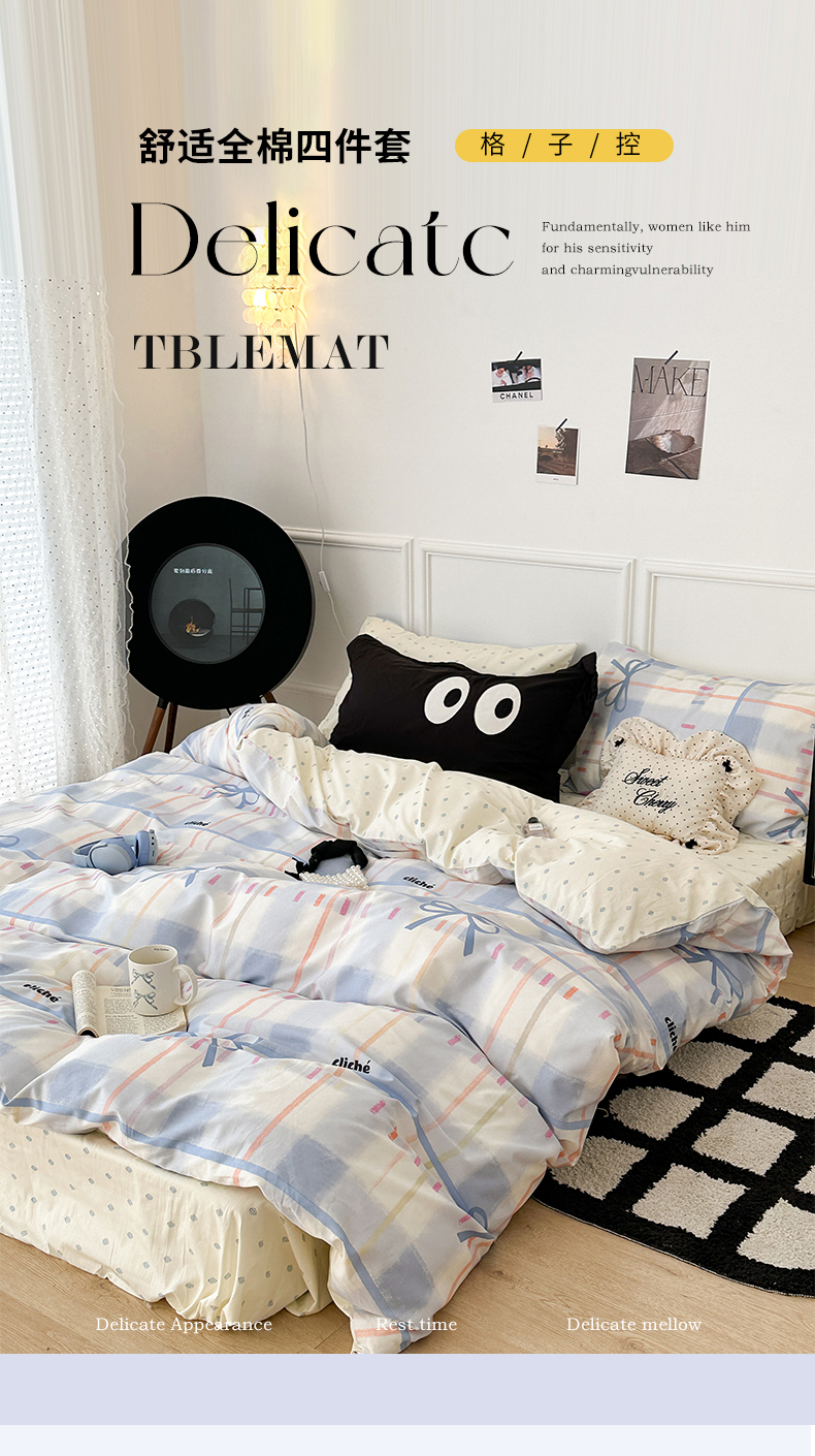 商品名称:昔可 2024新款全棉格子元素四件套 蓝色丝带蝴蝶结