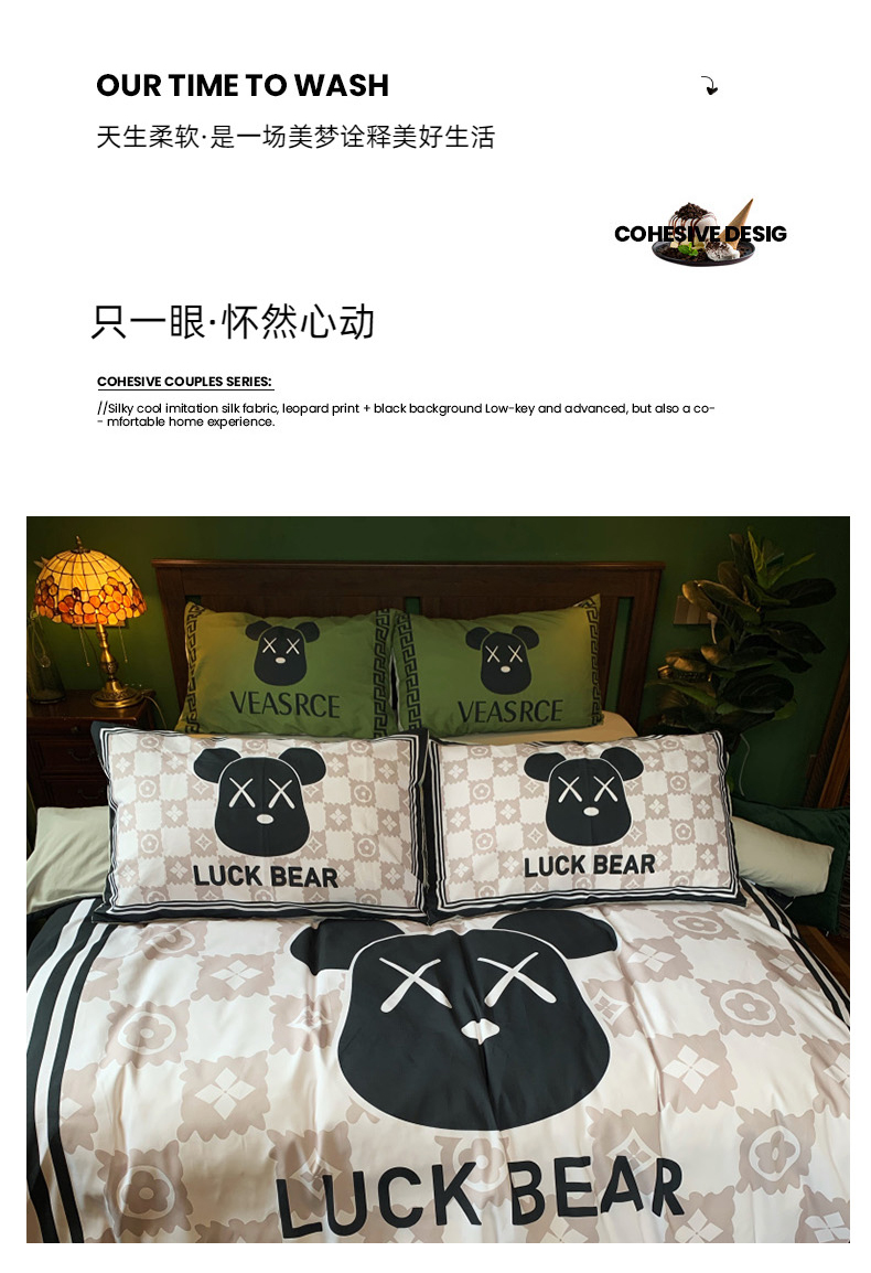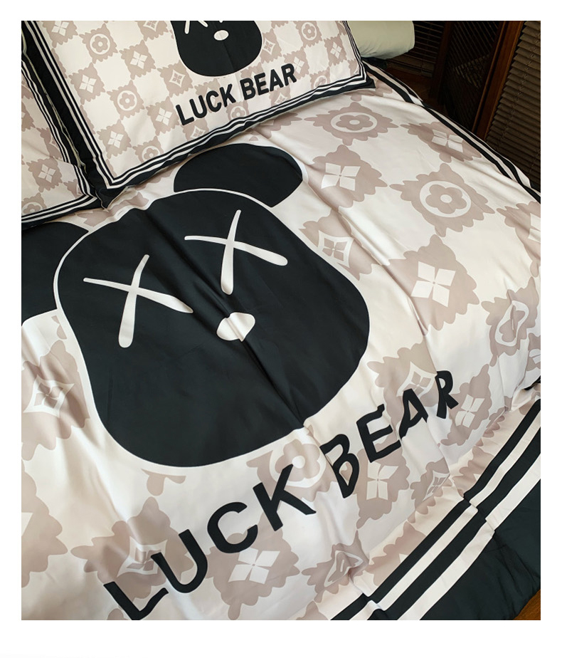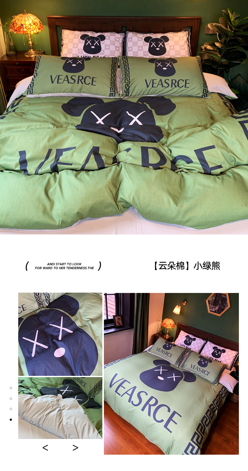 (总)花沐家居 2025新款数码印花潮牌云朵棉四件套,白色小香,粉豹纹,黑白老花,黑色小香,花千树,景年,蓝幕,绿色花朵,兮兔,小白熊,小黑熊,英伦熊