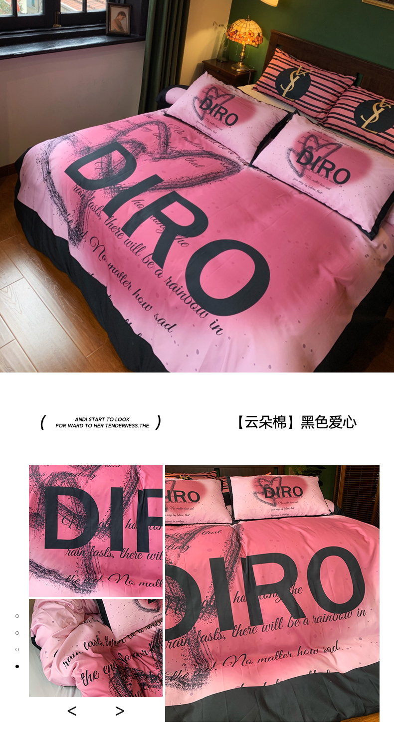 (总)花沐家居 2023新款活性数码印花牛奶绒四件套-场景1,白色字母熊,黑白金范,黑白熊,黑色花朵,渐变熊,条纹,小白熊,小粉熊,小古黑花,小黑熊,小香风字母,字母熊