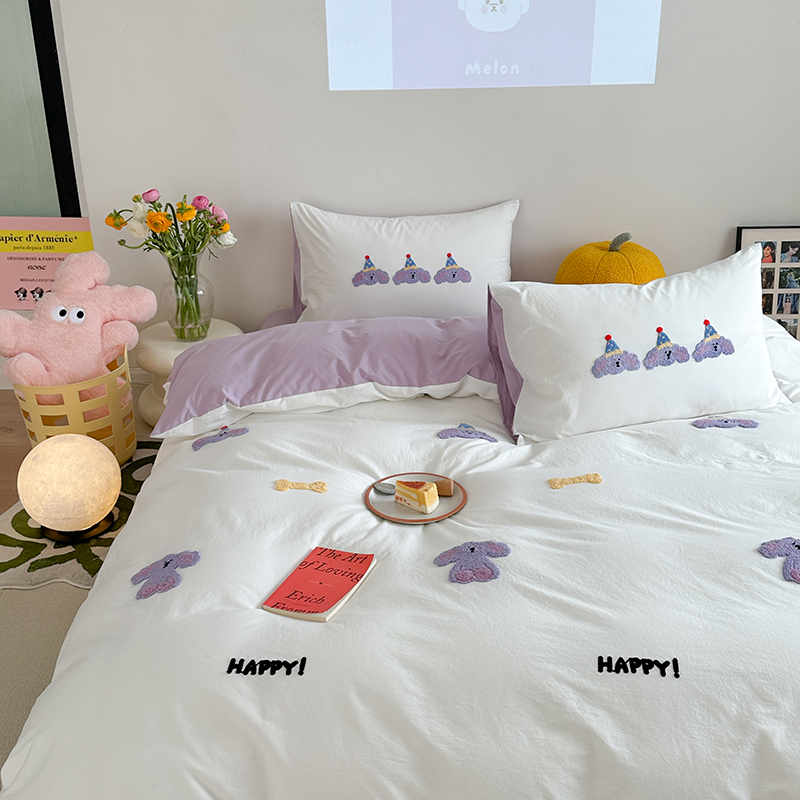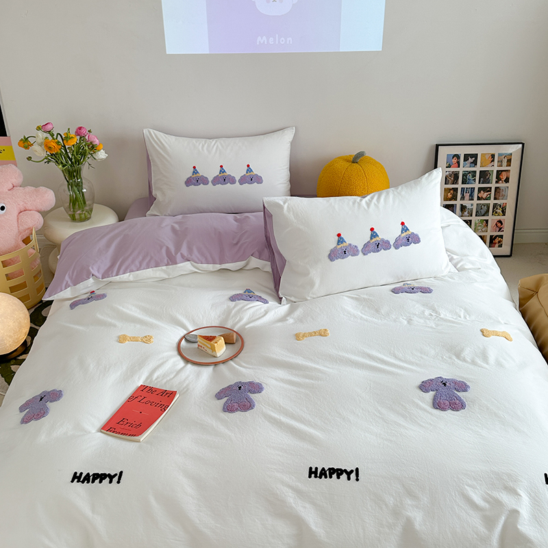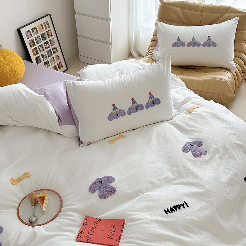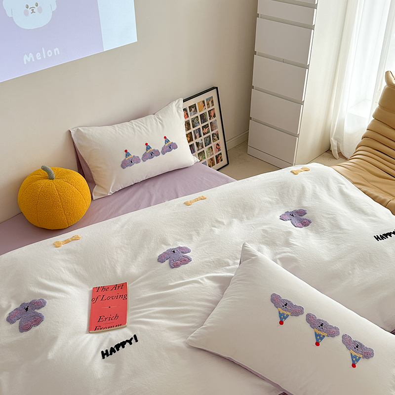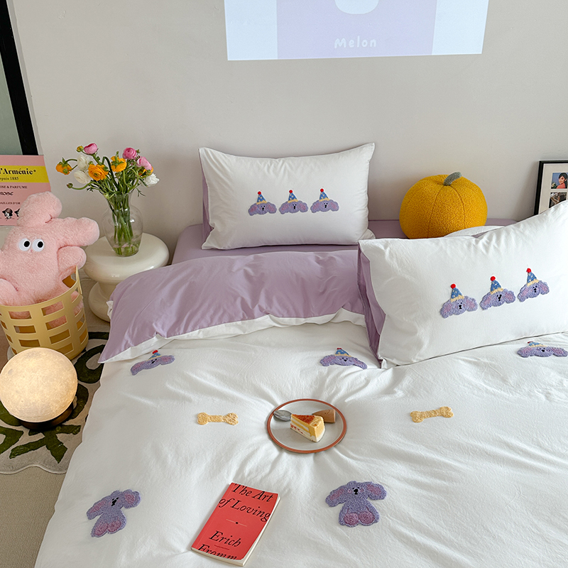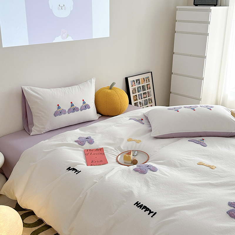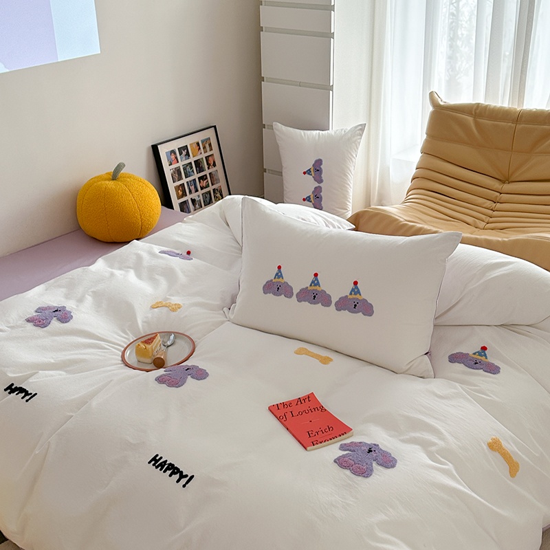 (总)柚子YOUTH 2025新款全棉纯棉工艺款13070贴布绣四件套,爱心小象,毛绒小狗,蘑菇女孩,星星法师