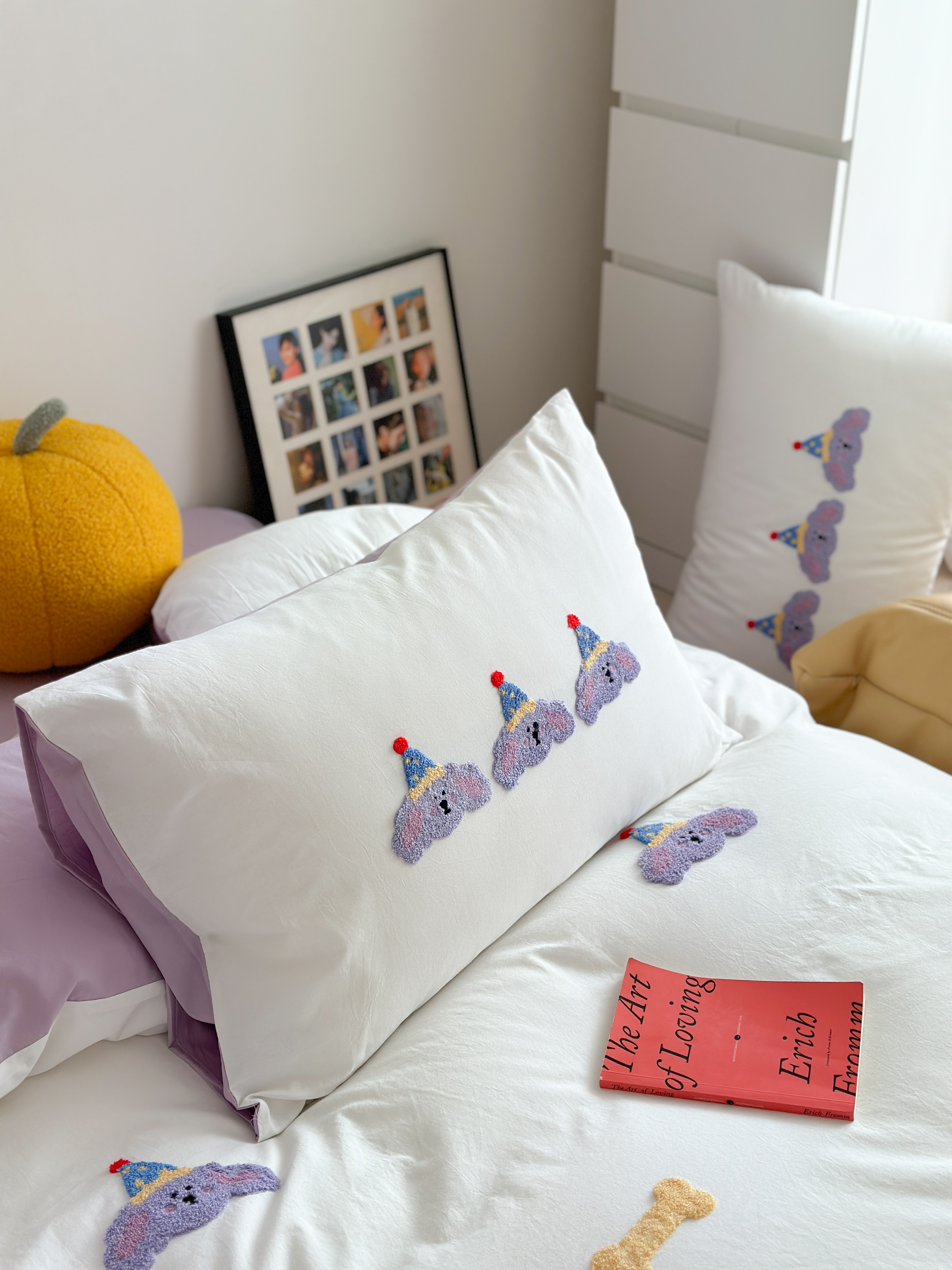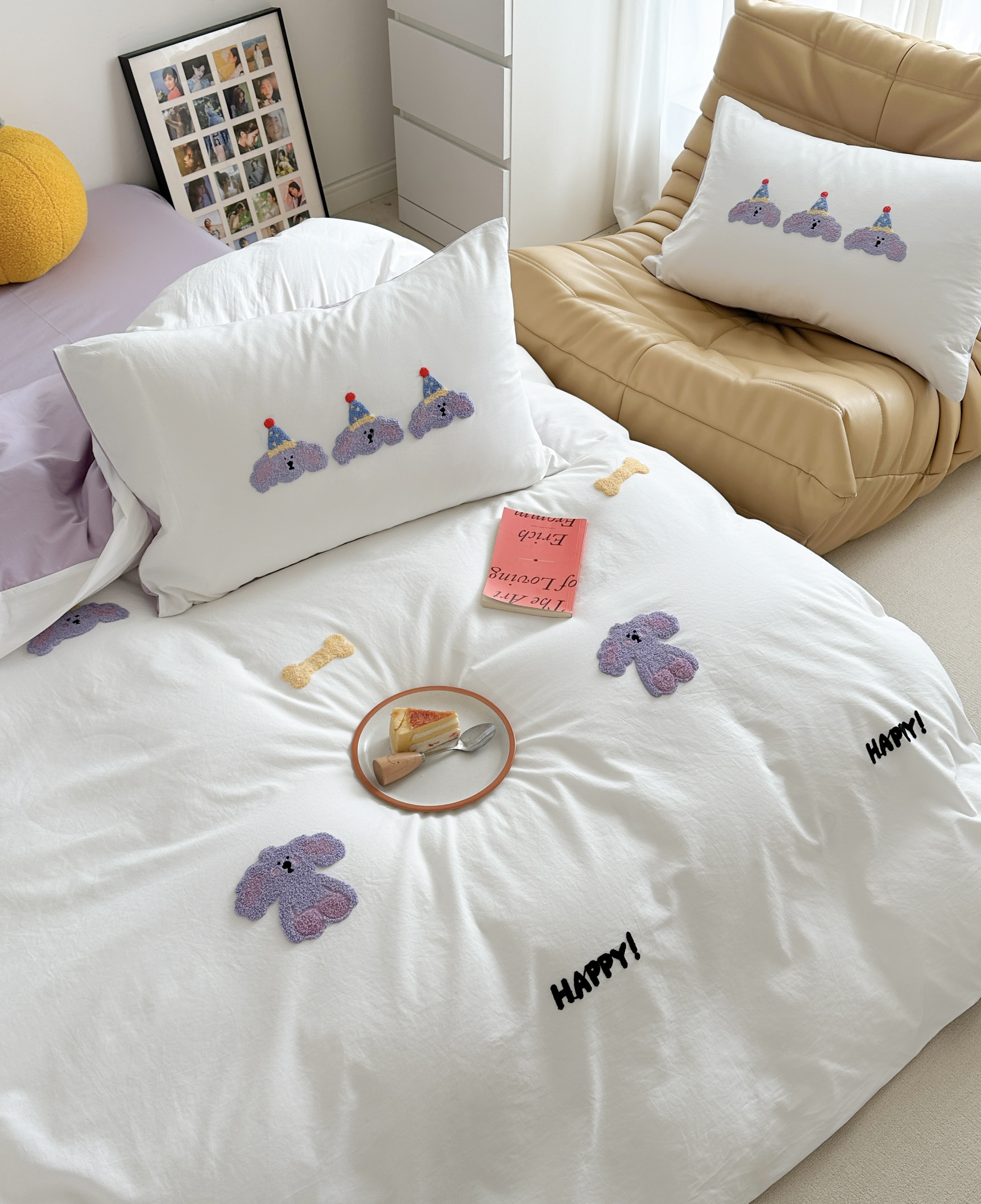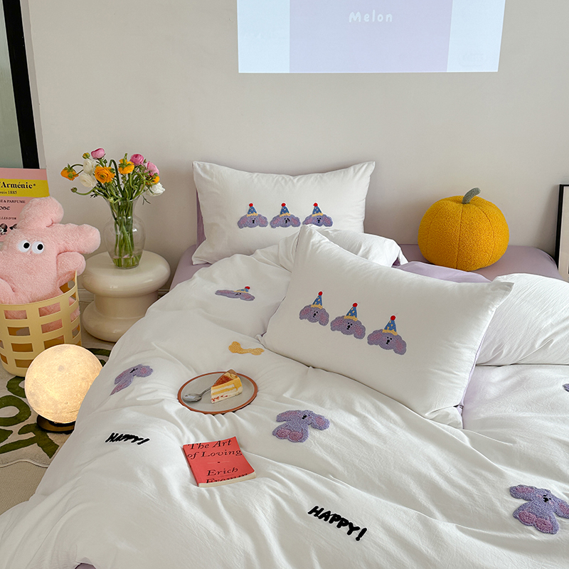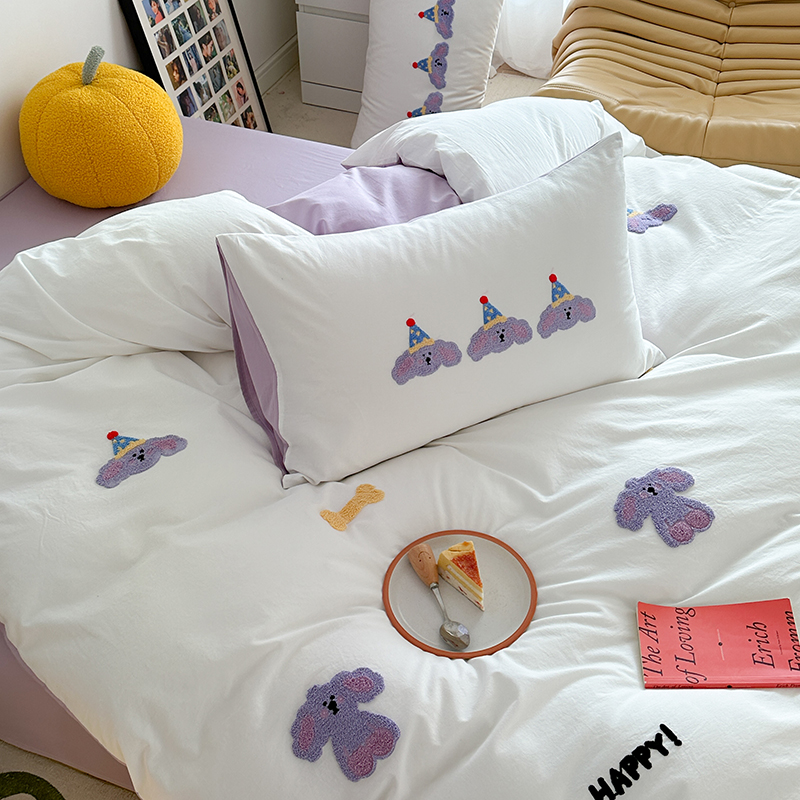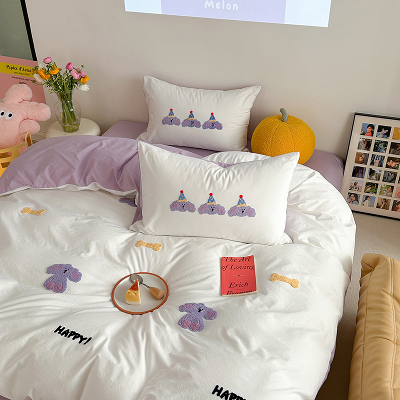 (总)柚子YOUTH 2025新款全棉纯棉工艺款13070贴布绣四件套,爱心小象,毛绒小狗,蘑菇女孩,星星法师