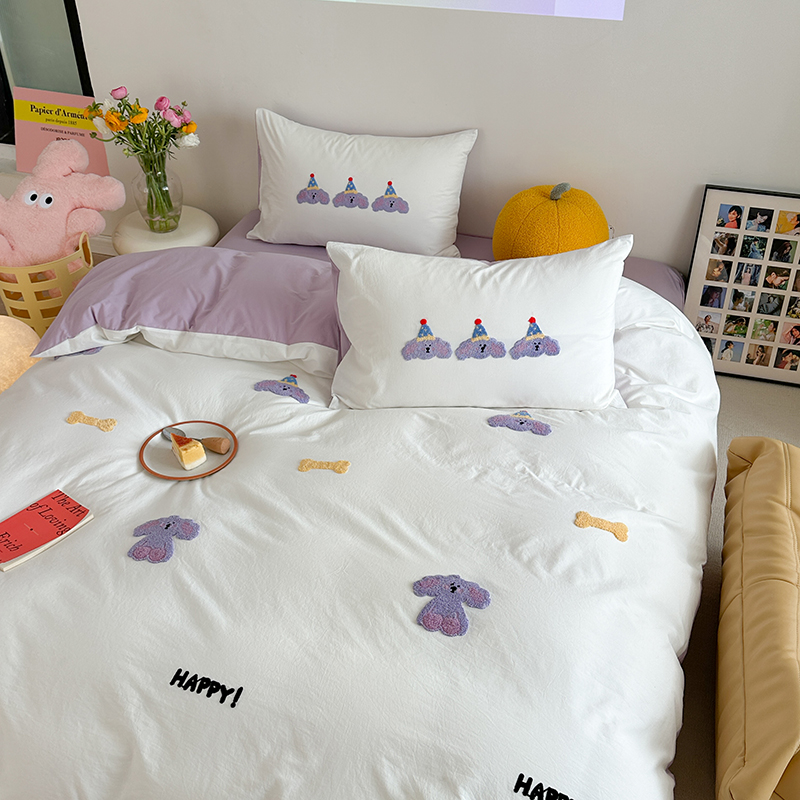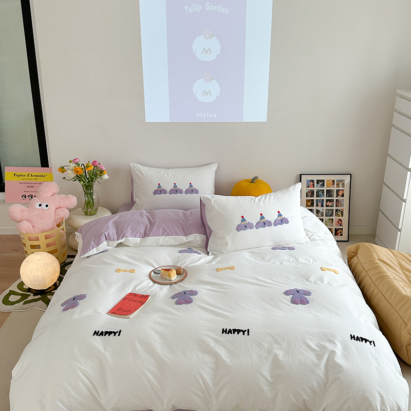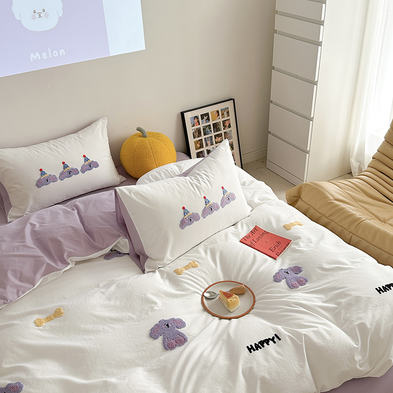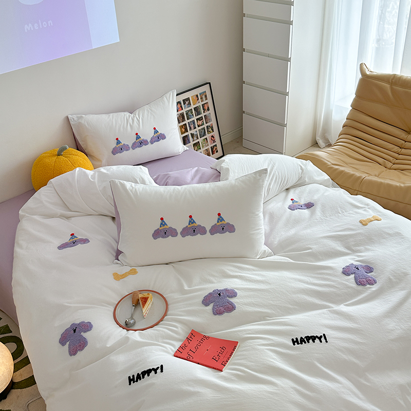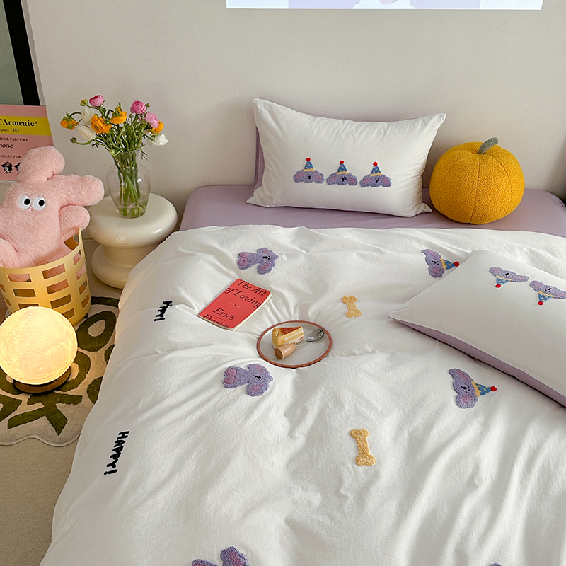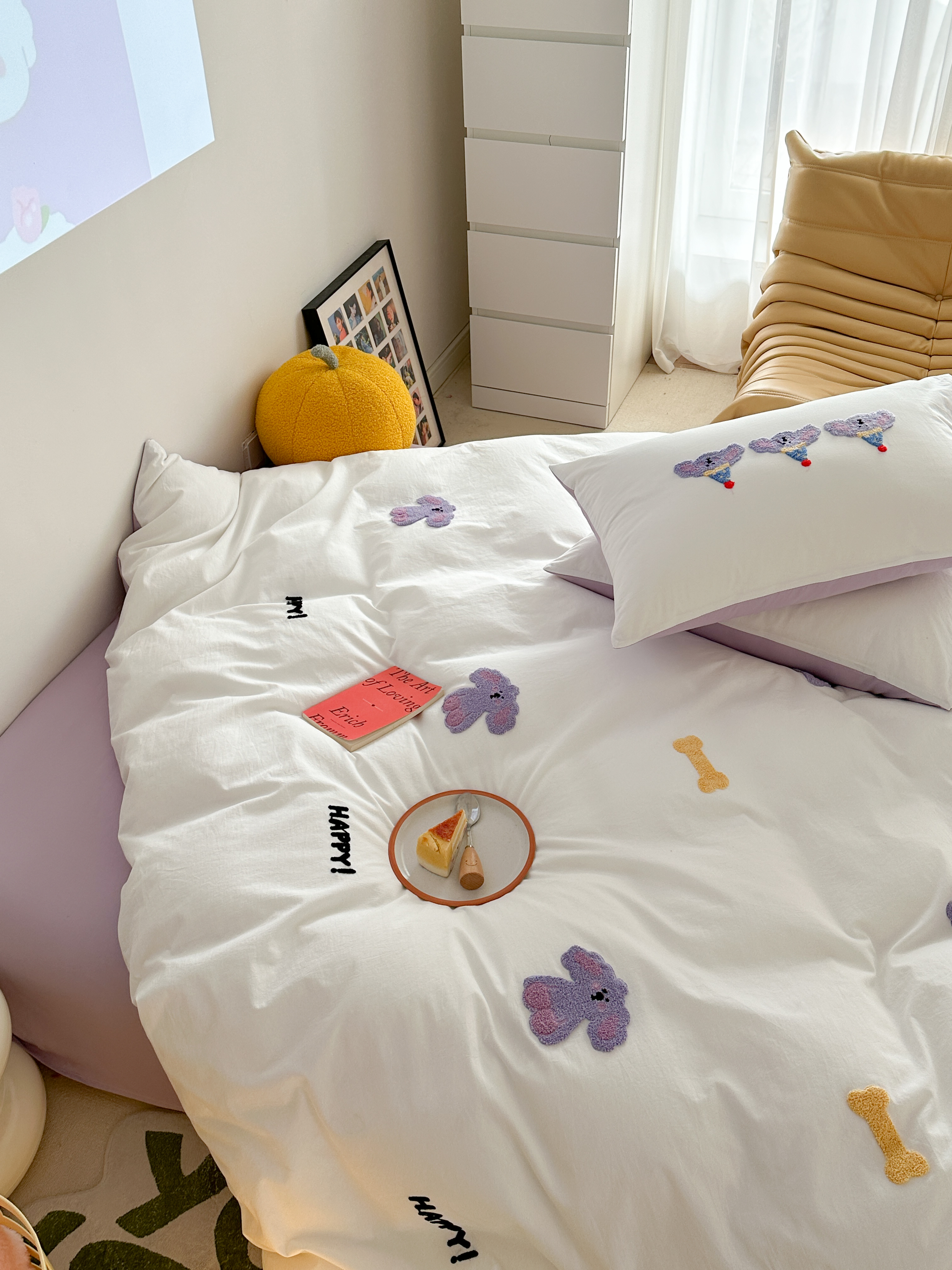 柚子YOUTH 2024新款全棉水洗棉毛巾绣散排卡通系列四件套 小狗噗噗