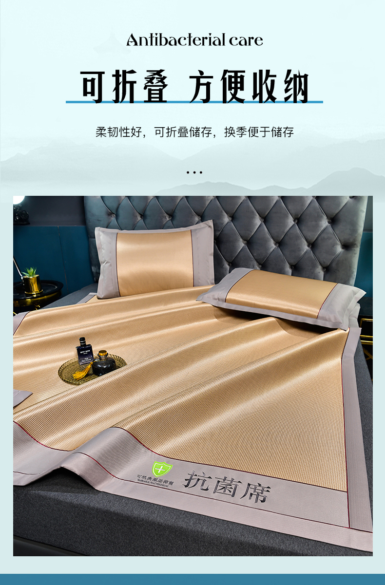 (总)小牛席业2023新款小苍兰清香冰藤席系列凉席竹席冰丝席乳胶席,黑咖,金色,绿色,浅蓝,香槟,银灰