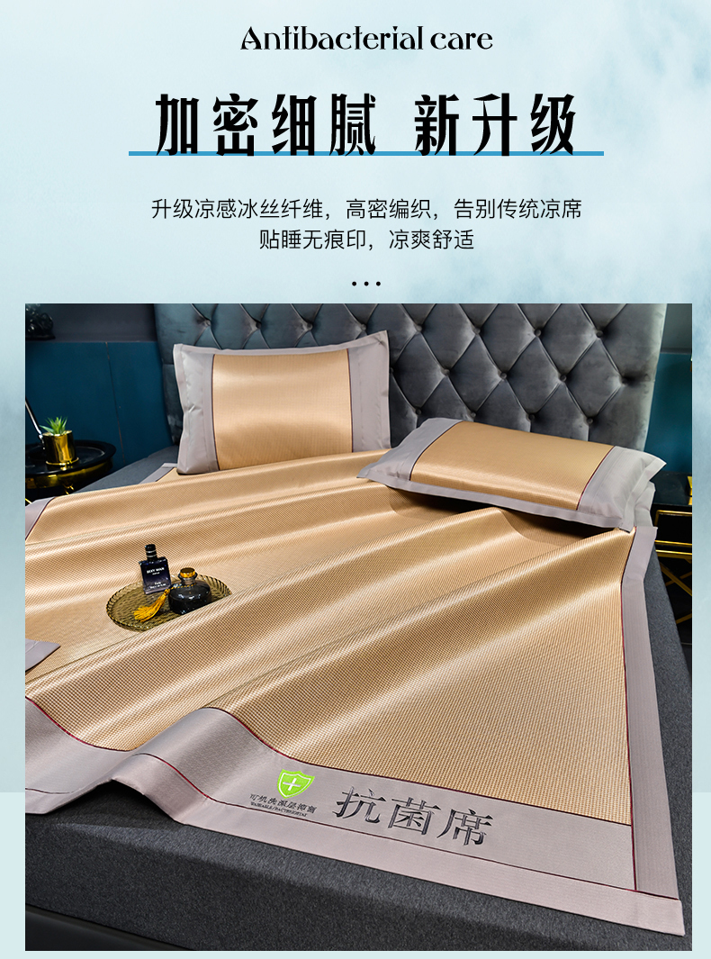 (总)2023新款超精密冰丝席-小斜纹系列-床笠款藤席凉席竹席,粉色,蓝色,绿色,银灰