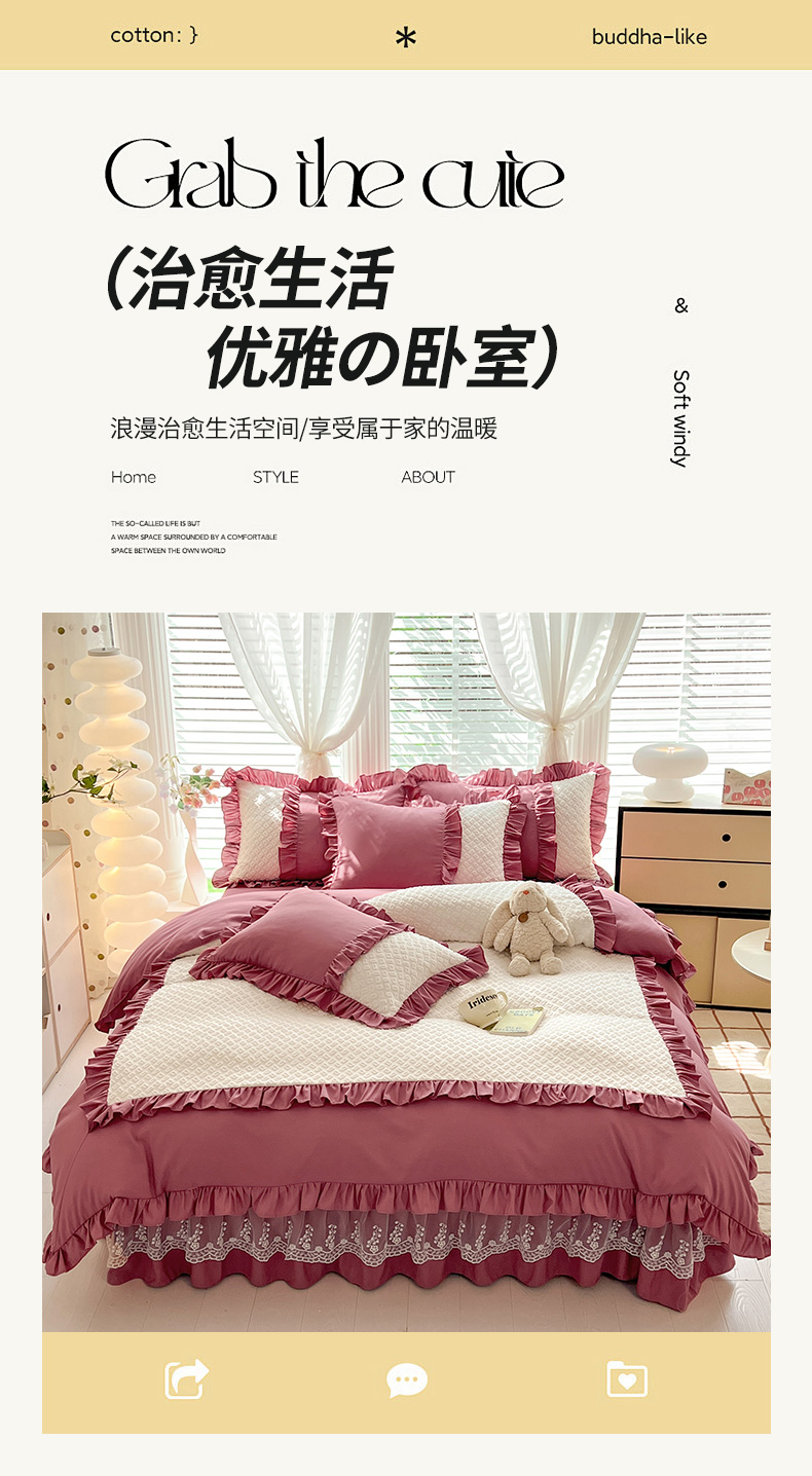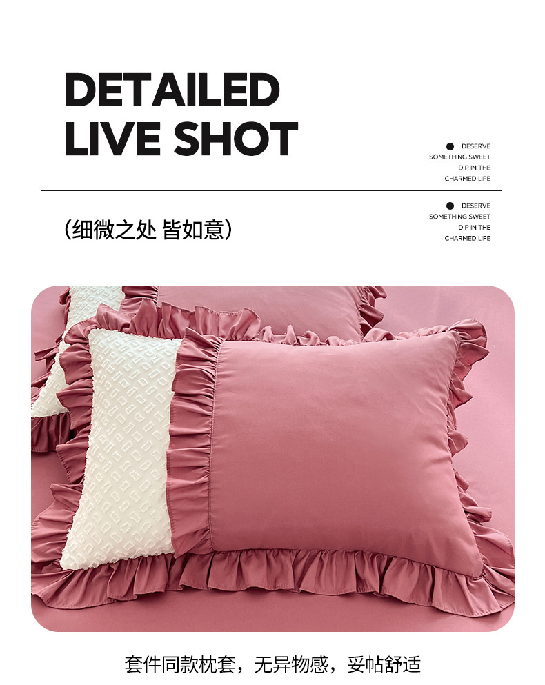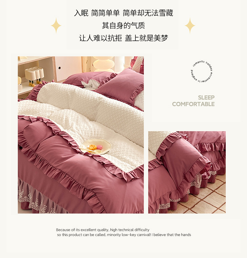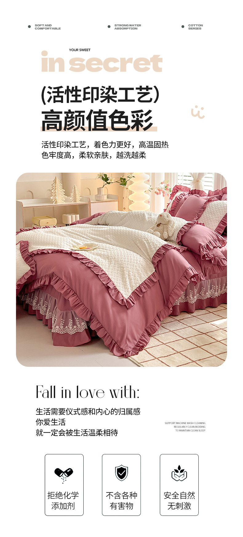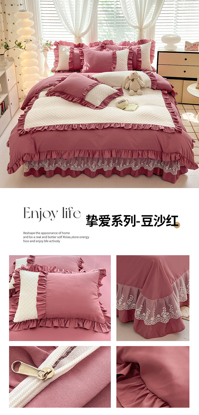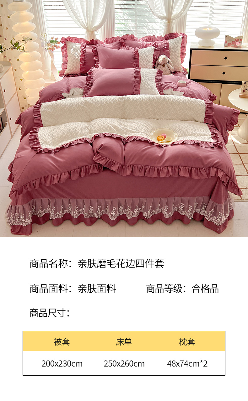 商品名称:芭比蔓家纺 2024新款亲肤磨毛花边四件套---至爱 豆沙红