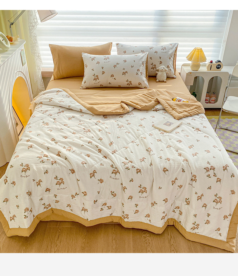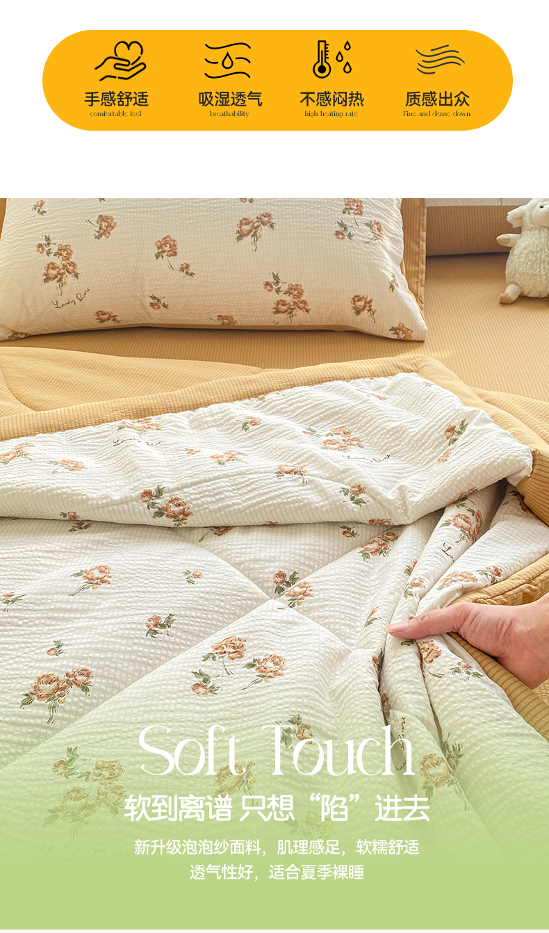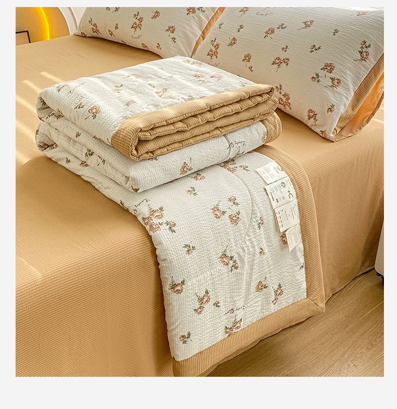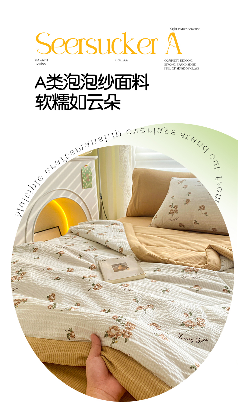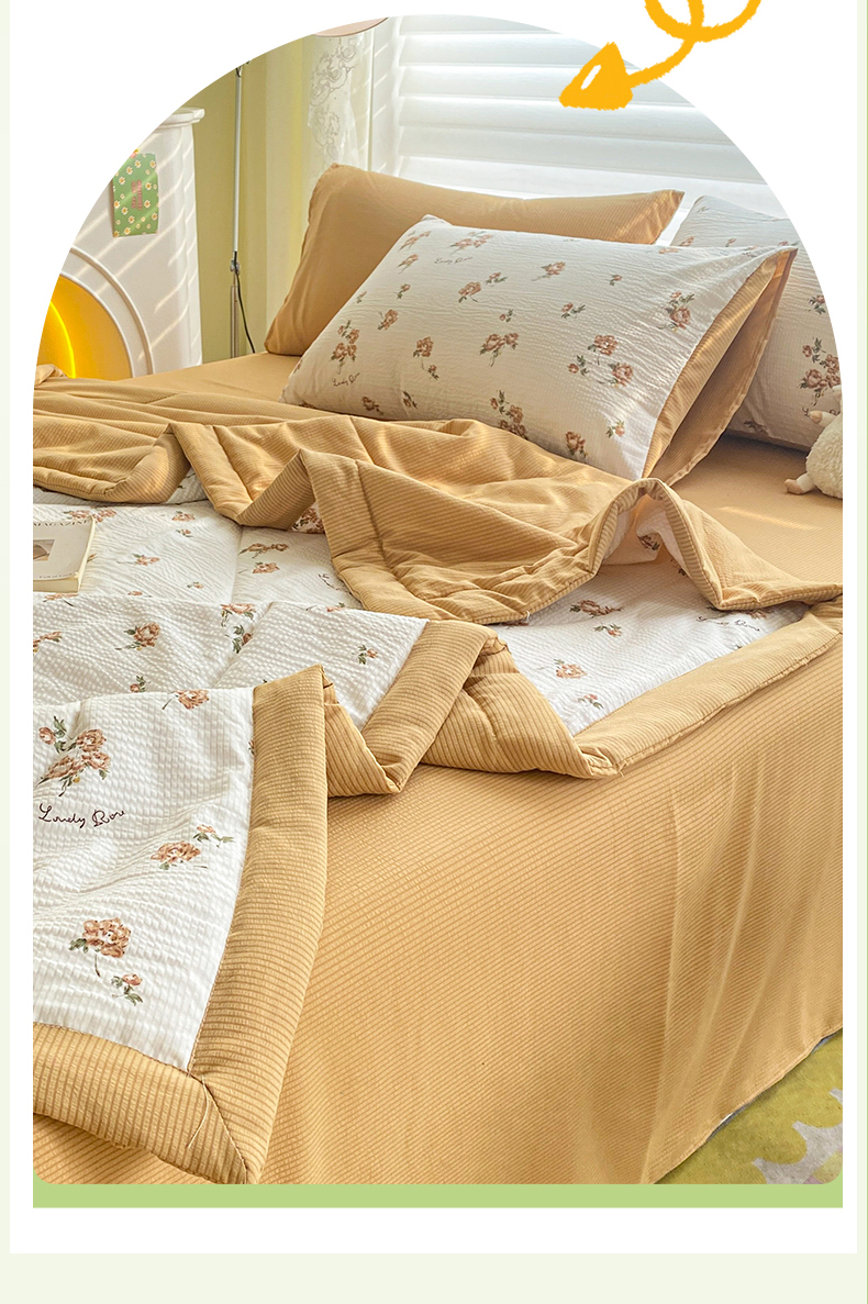 • 91家纺网 家纺一手货源 找家纺 可思家纺 2024新款A类泡泡纱夏被四件套 朝朝暮暮