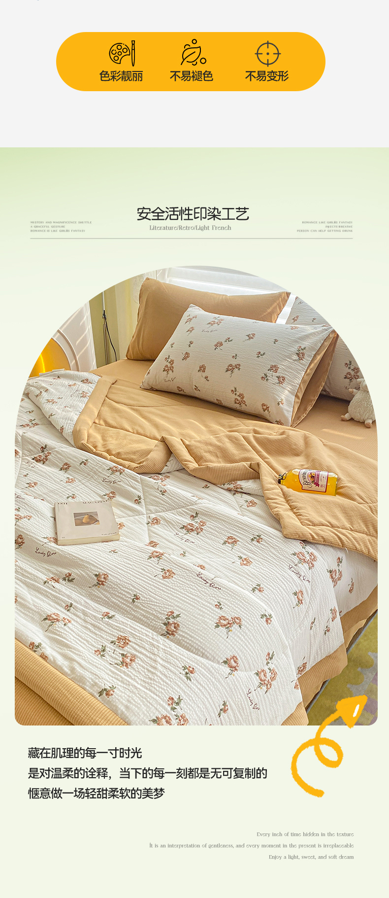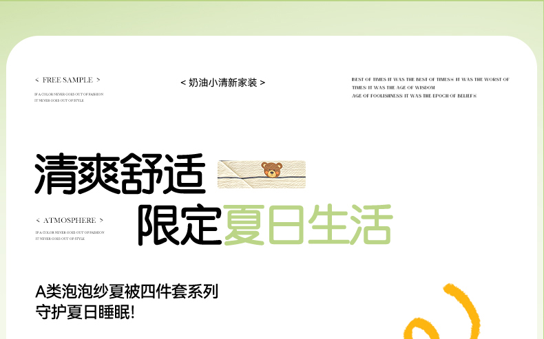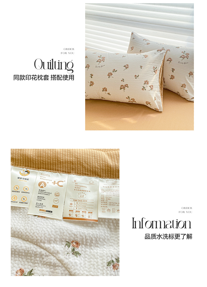 当前位置: 91家纺网 > 商品网购 > 被子 > 夏被 > 可思家纺 2024新款A类泡泡纱夏被四件套 朝朝暮暮