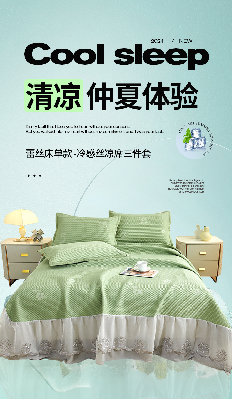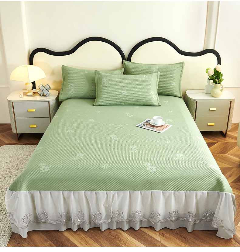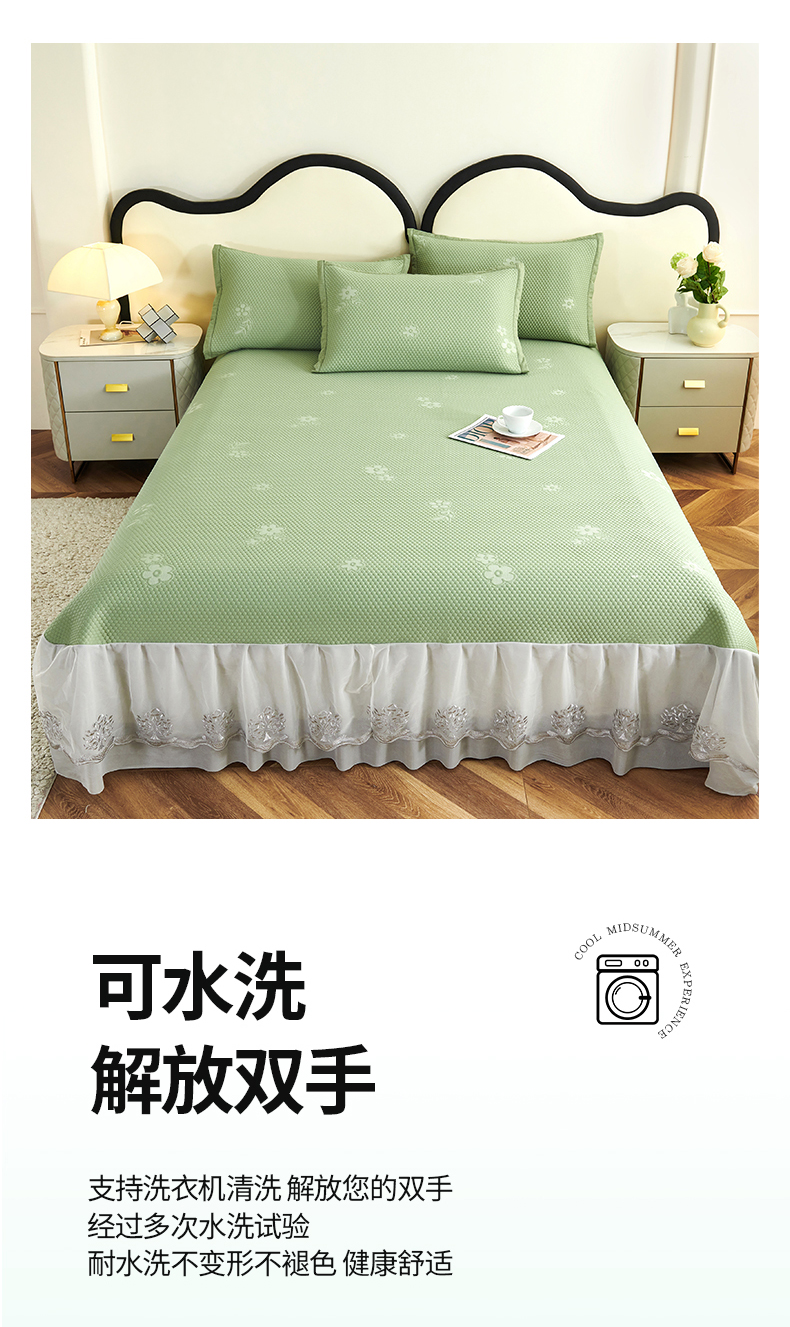 宜派家纺 2024新款雪花冷感席三件套床单式床裙款 樱花-绿