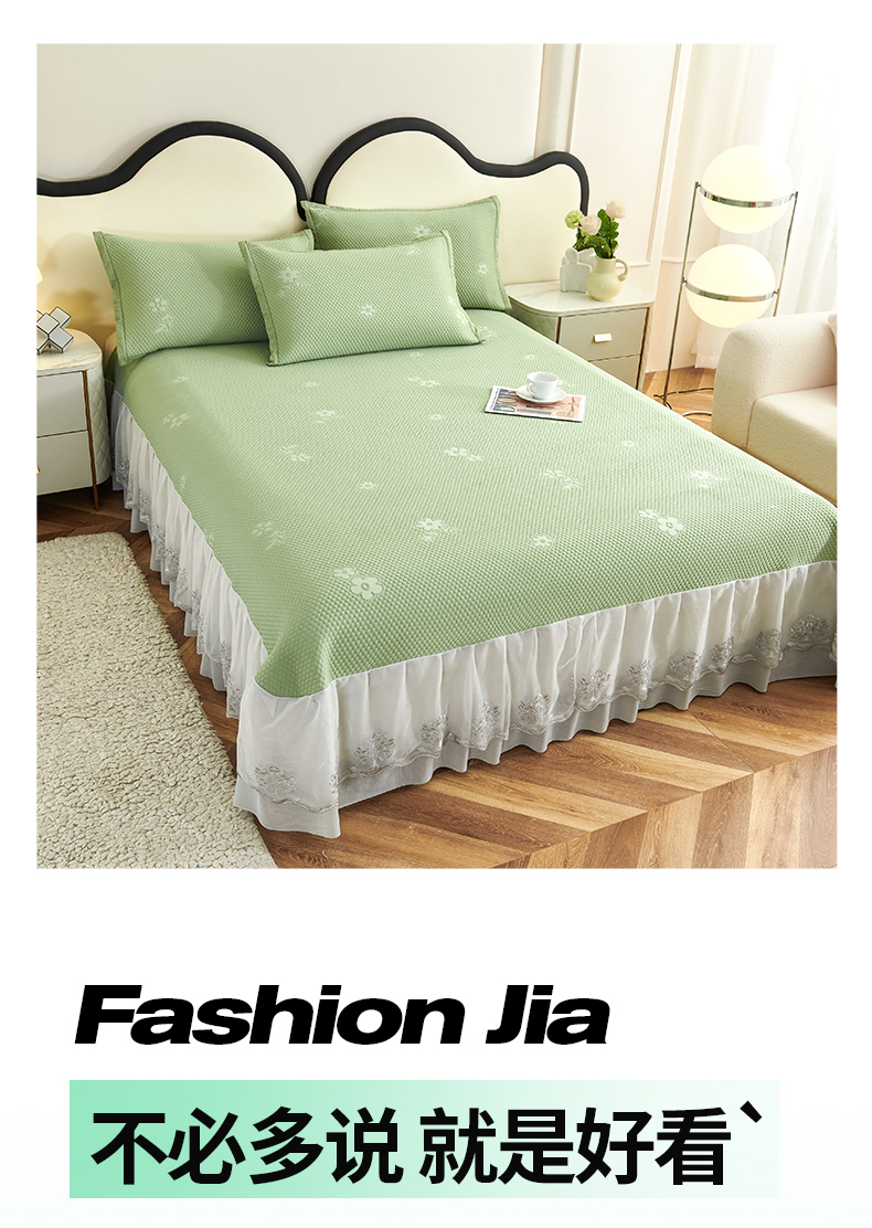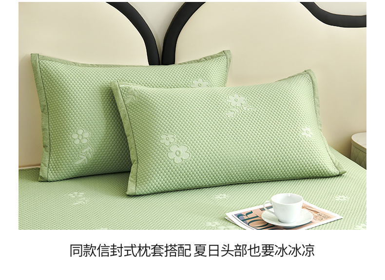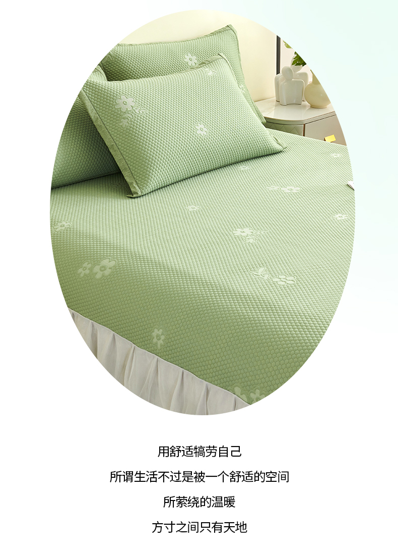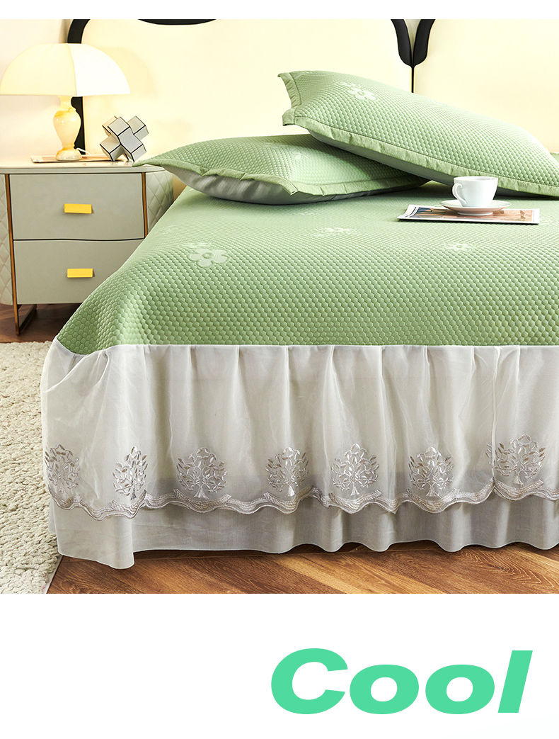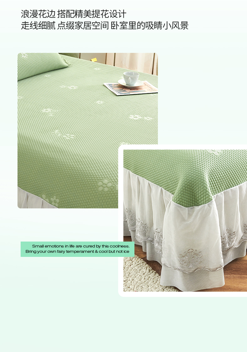 商品名称:宜派家纺 2024新款雪花冷感席三件套床单式床裙款 樱花-绿