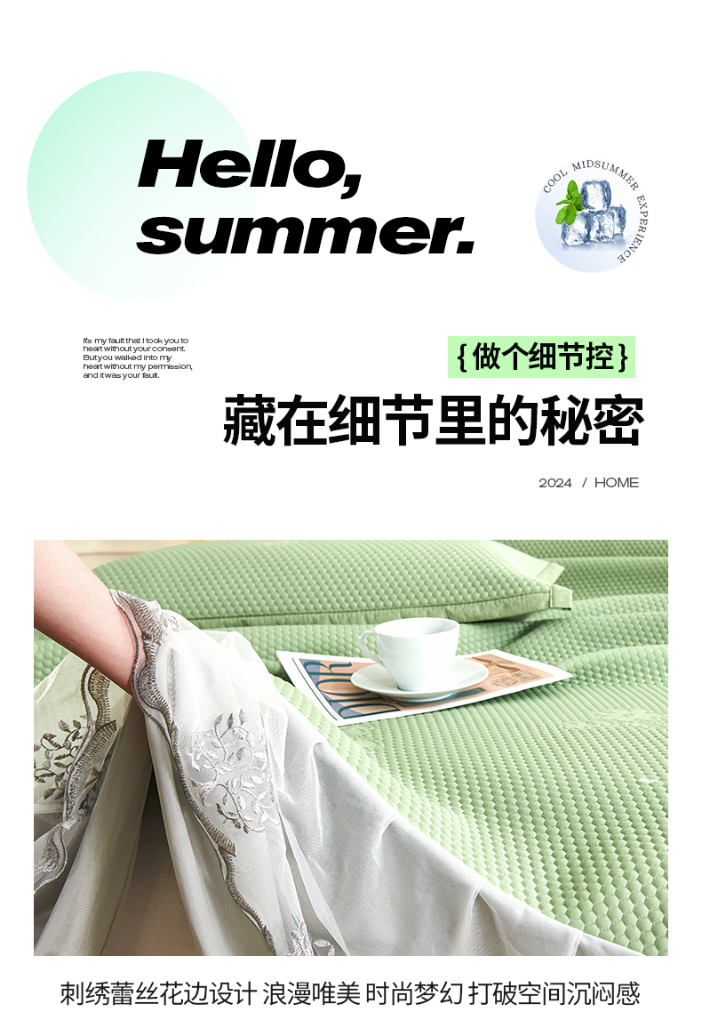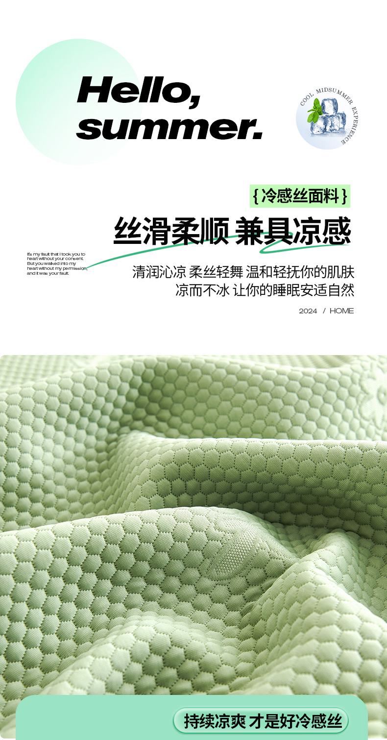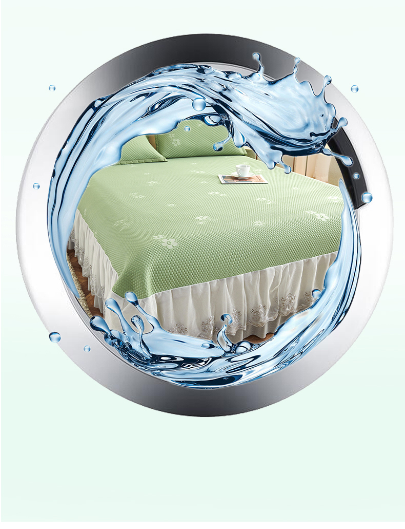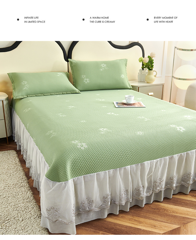 商品名称:宜派家纺 2024新款雪花冷感席三件套床单式床裙款 樱花-绿