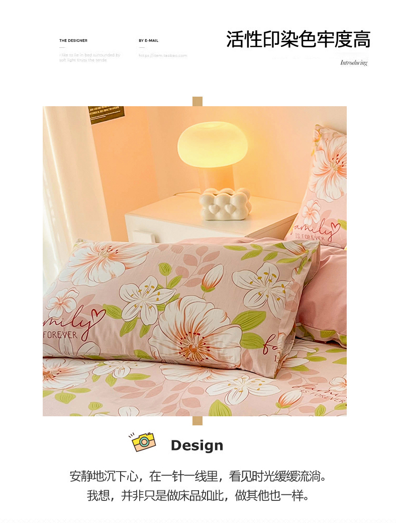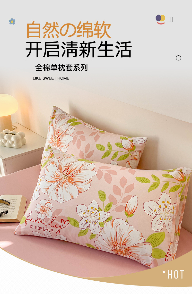 金鑫汇家纺 2024新款全棉纯棉卡通印花四件套单品系列-单枕套 繁花之恋