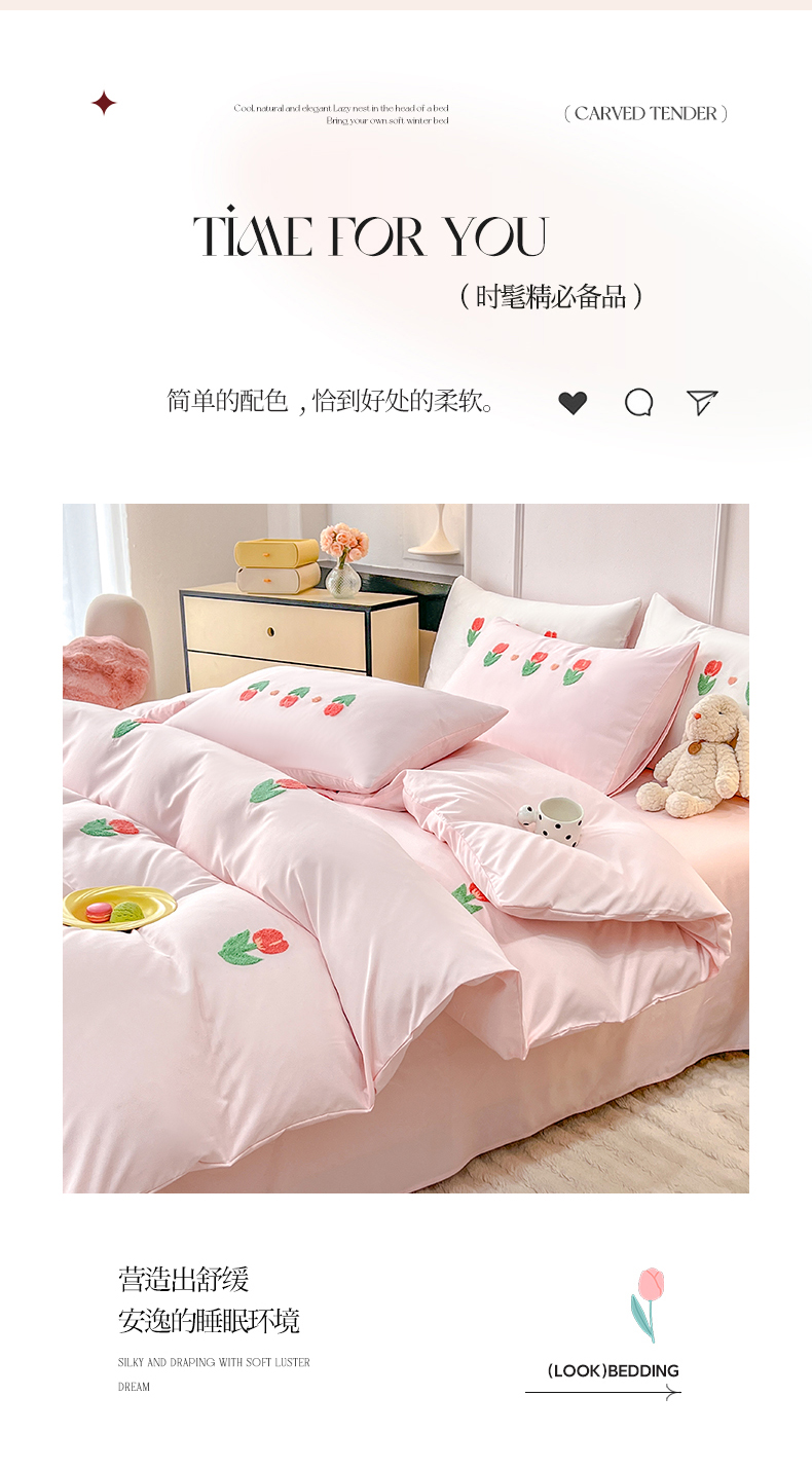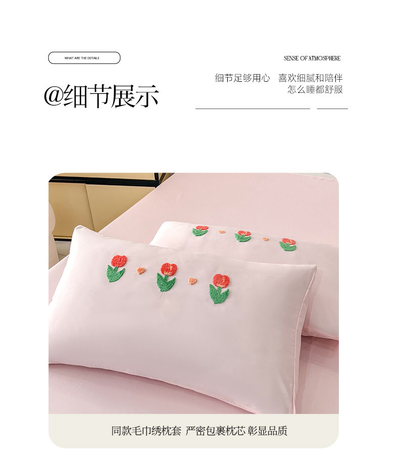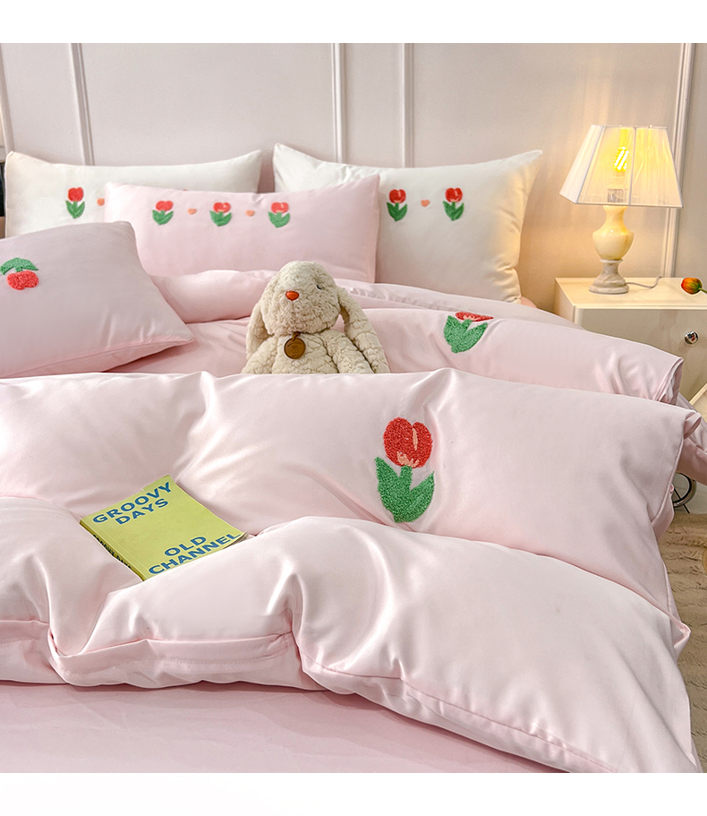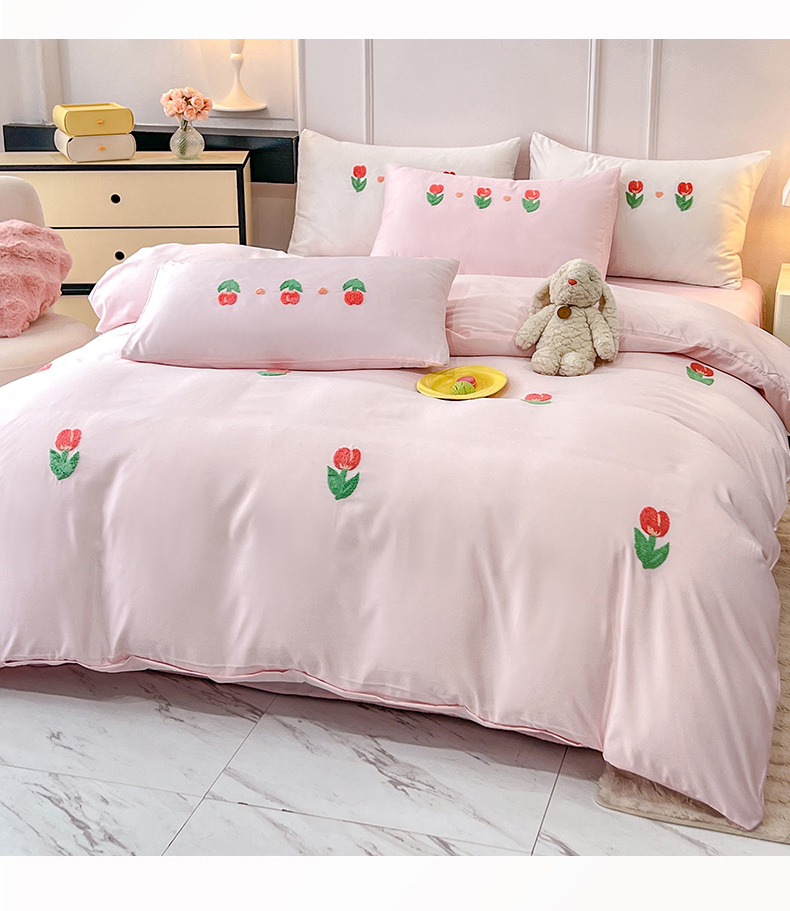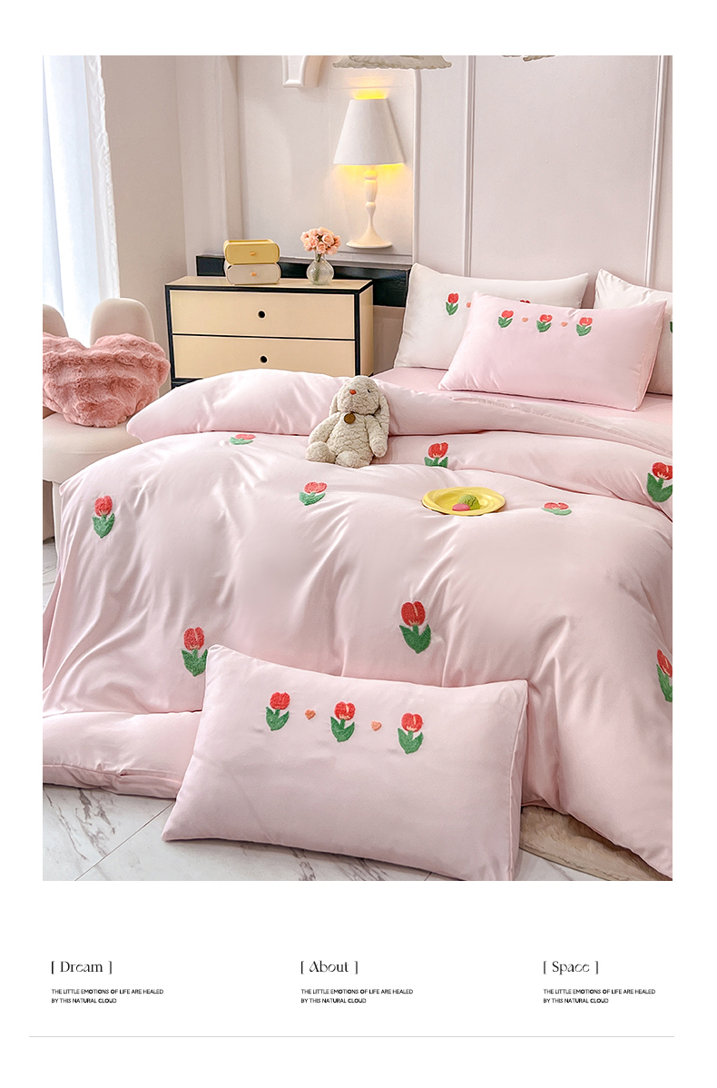 艾米家居 2025水洗真丝四件套毛巾绣四件套-郁金香系列 粉
