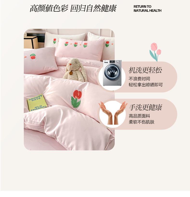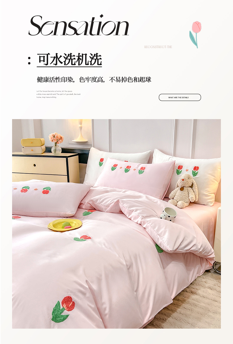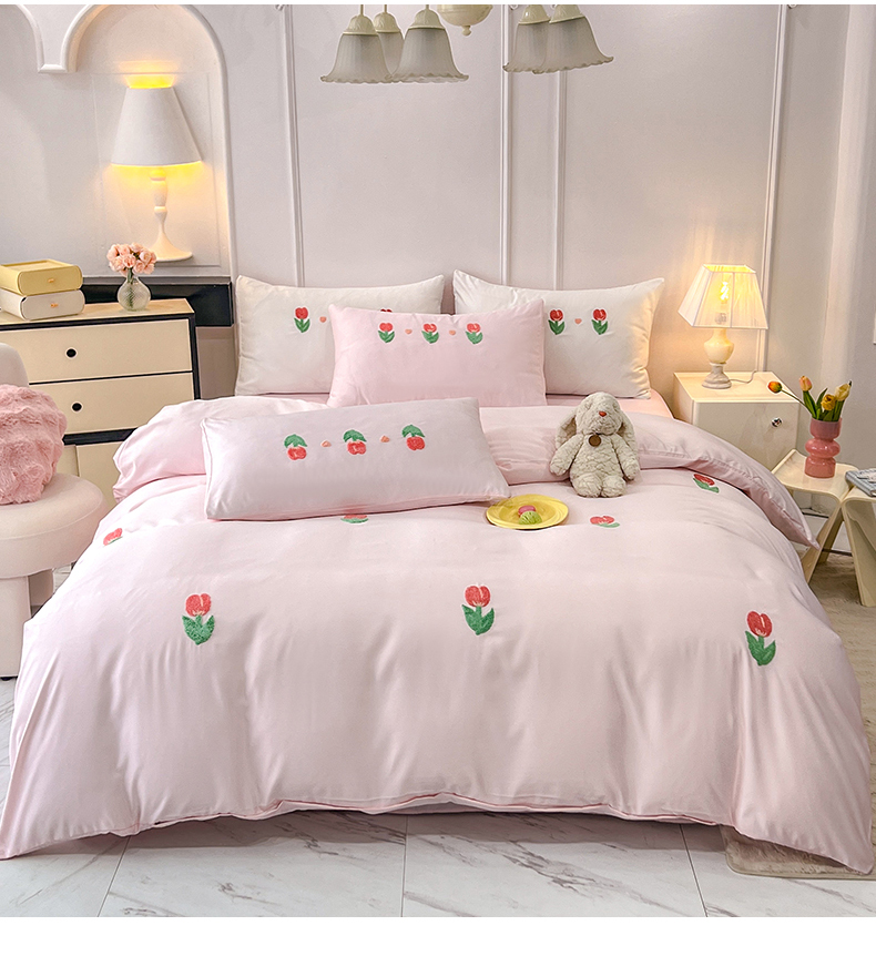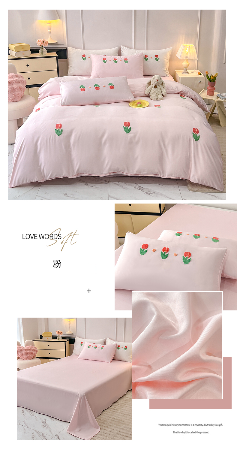 商品名称:艾米家居 2025水洗真丝四件套毛巾绣四件套-郁金香系列 粉