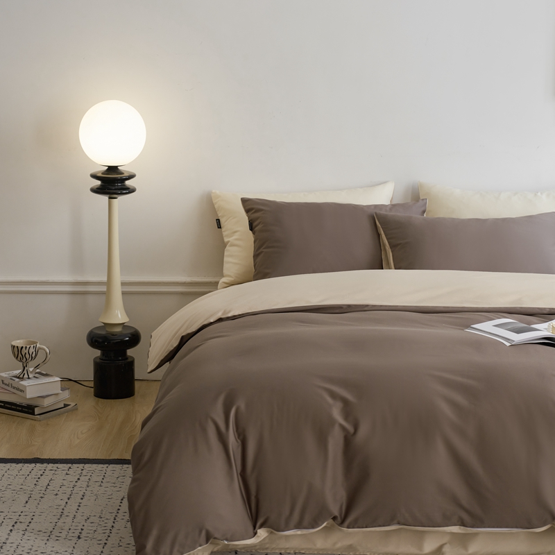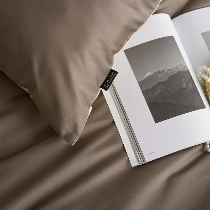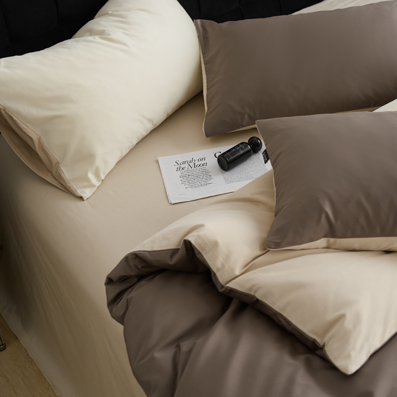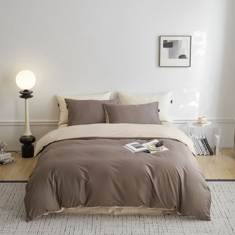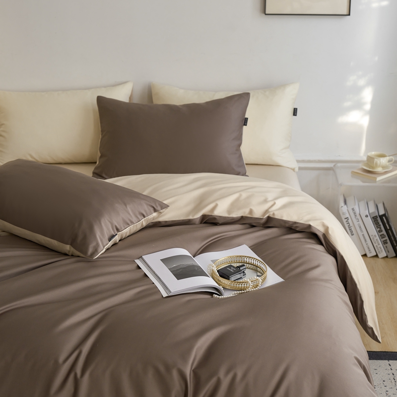 商品名称:安莱生活 2024新款100s长绒棉贡缎双拼四件套 咖啡-棕灰