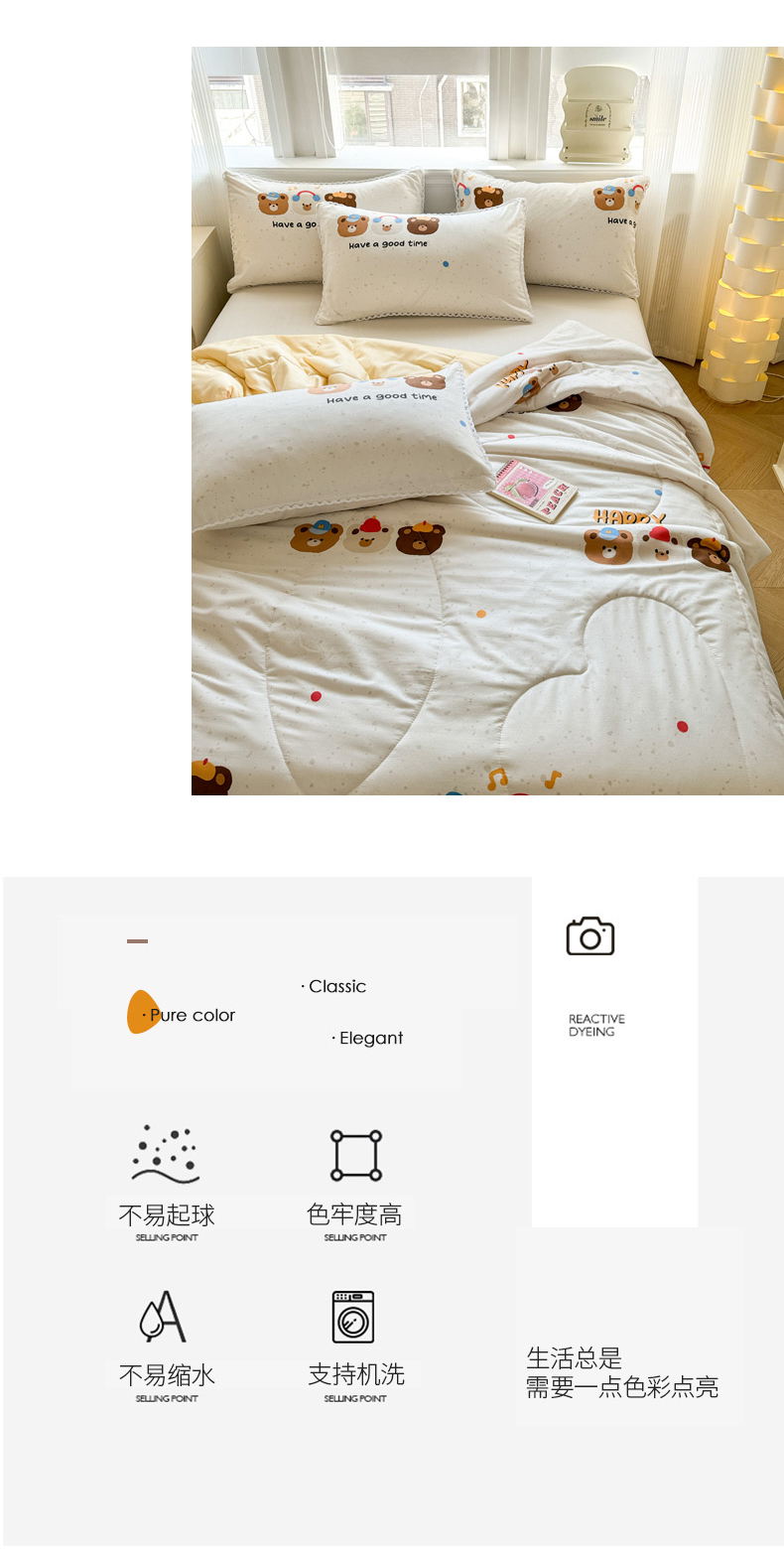 (总)慕尚家纺 2025新款全棉印花学生三件套套件,艾米熊,彩色爱心狗,铃兰花,美食派对,萌宠乐园,书生猫咪,桃心狗,汪可爱,旺旺,樱桃