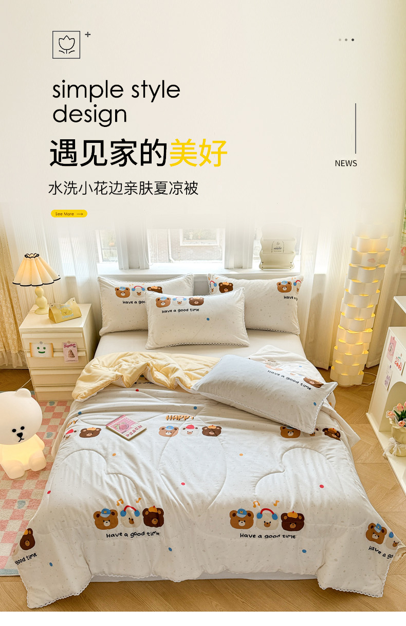 商品名称:慕尚家纺2025新款双层纱水洗夏被子被芯 乐园伙伴