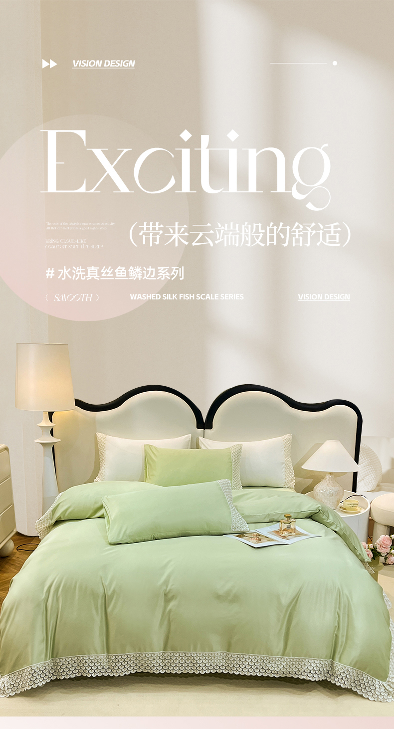 艾米家居 2025水洗真丝鱼鳞边艾琳系列 艾琳水绿