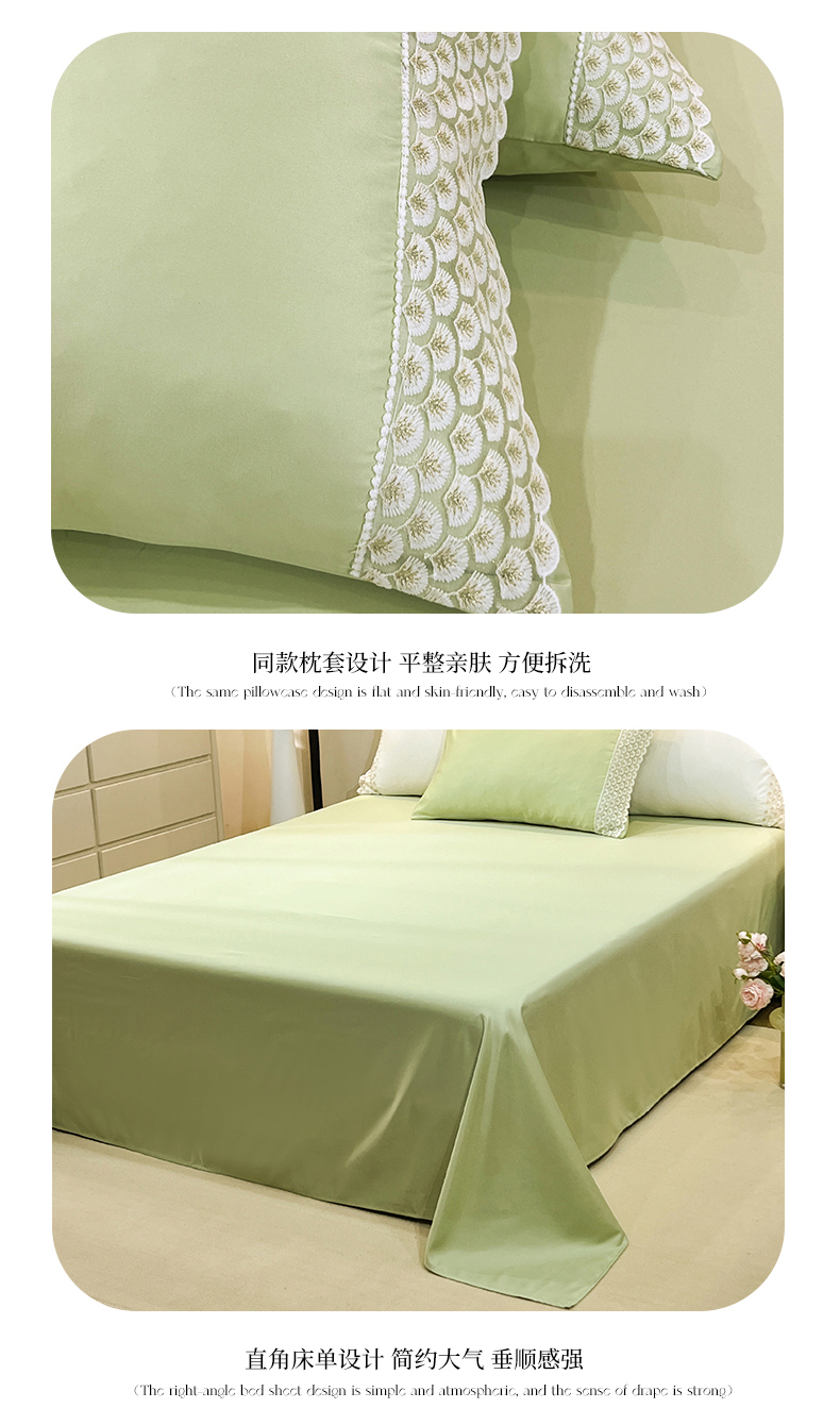 总艾米家居2025新款水洗真丝雪纺花边贴布绣四件套-达菲小熊,白色,薄荷绿,宾利蓝,淡粉,豆沙,鹅黄,灰色,天蓝,香槟,玉色