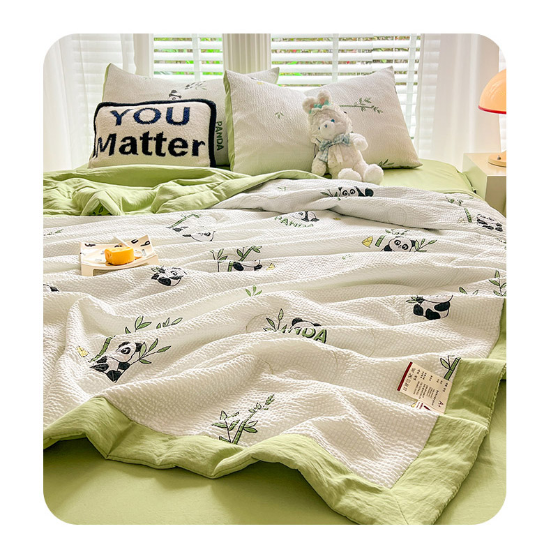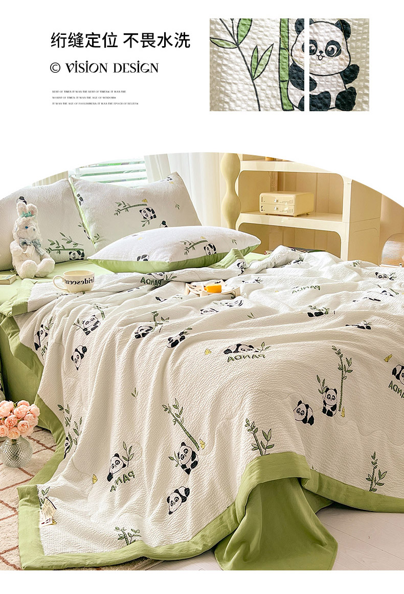妖妖家纺 2024新款有氧水洗泡泡棉印花四套泡芙棉夏被四件套 呆萌panda