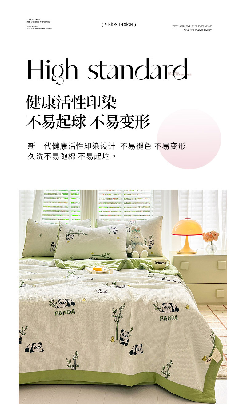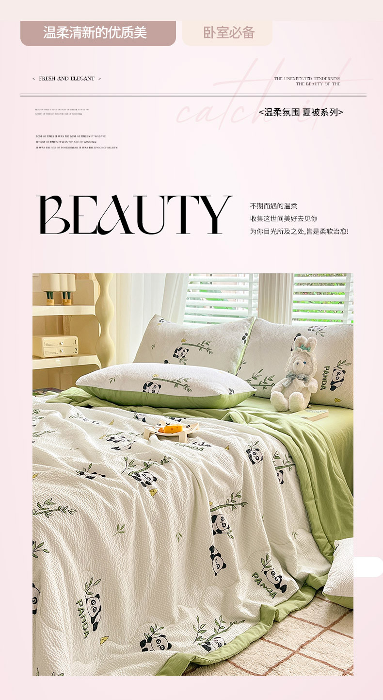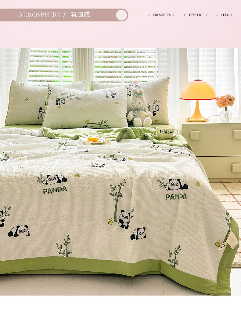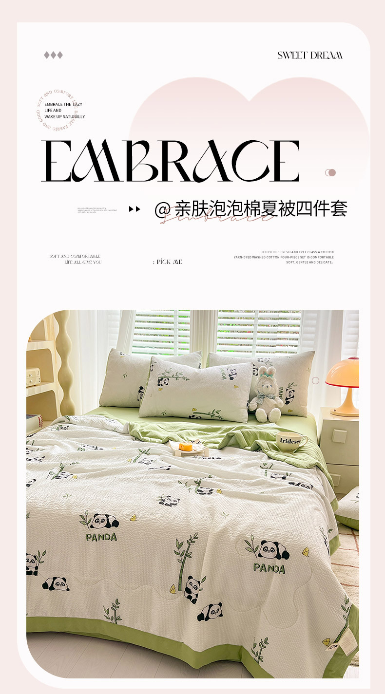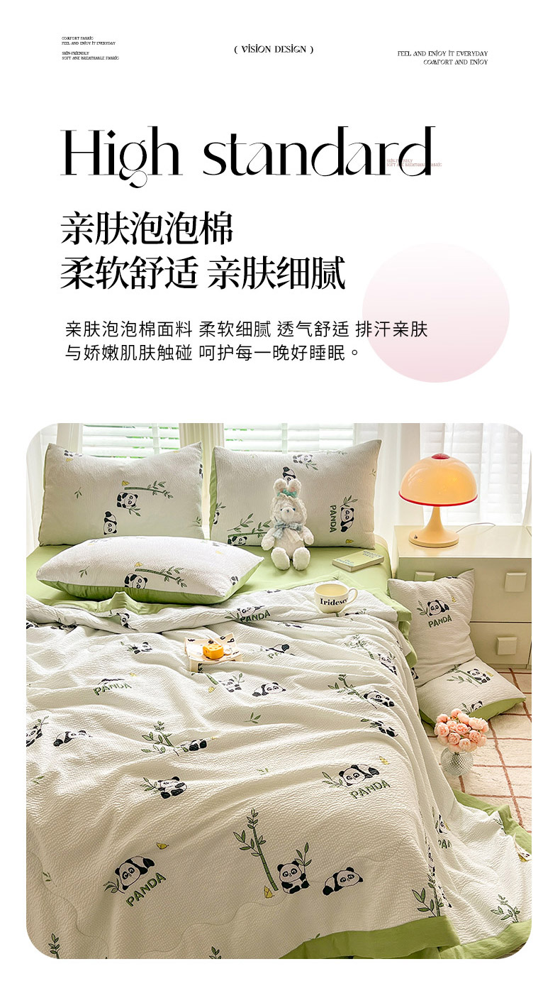 商品名称:妖妖家纺 2024新款有氧水洗泡泡棉印花四套泡芙棉夏被四件套 呆萌panda