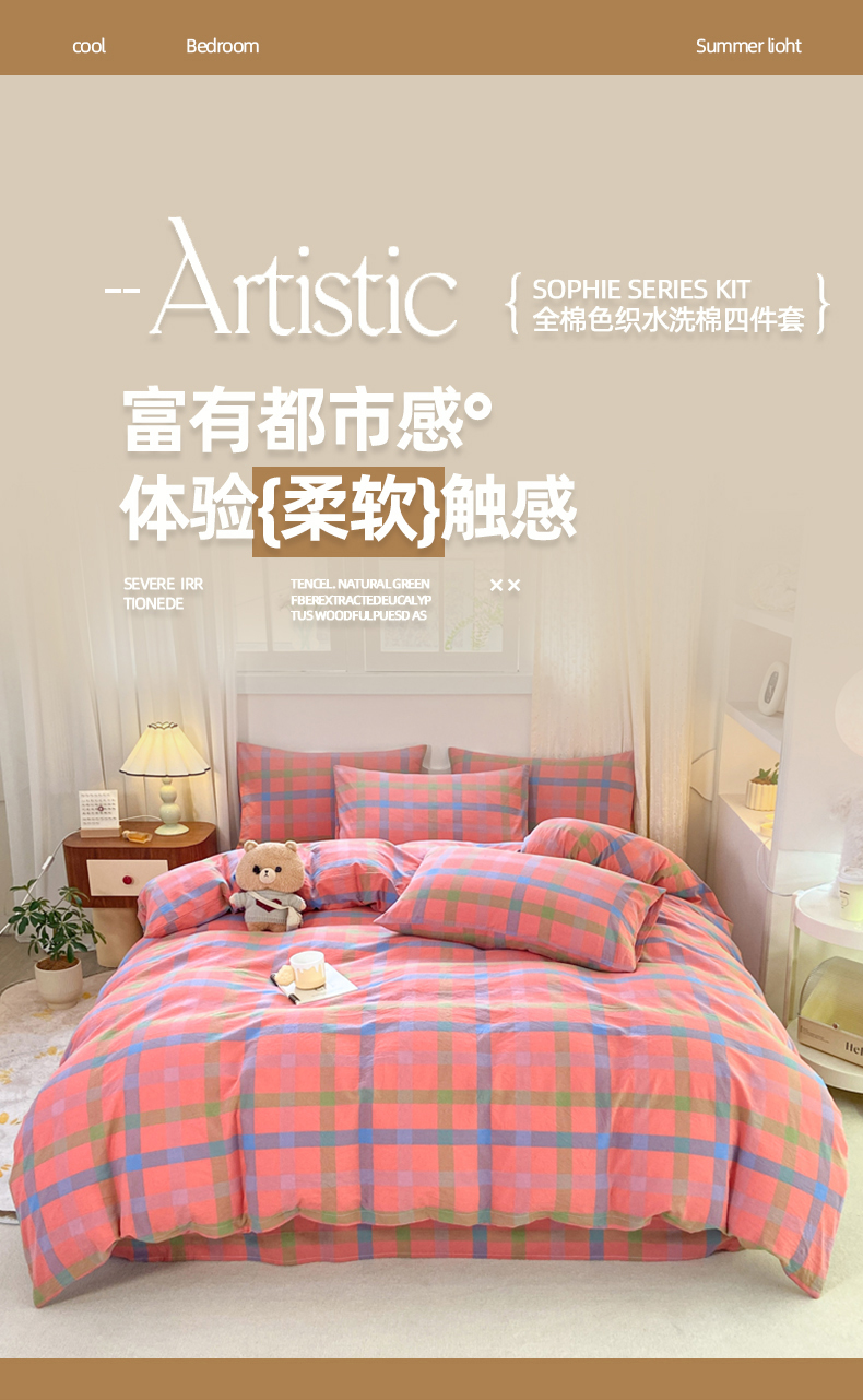 商品名称:(总)蝶帕家纺 2024新款全棉色织水洗棉四件套