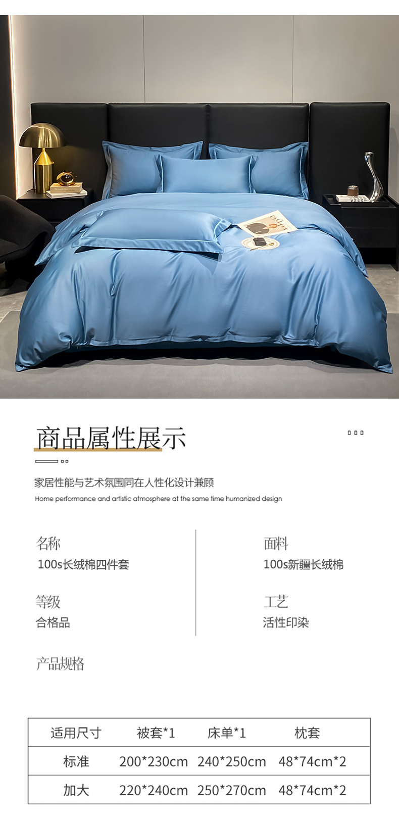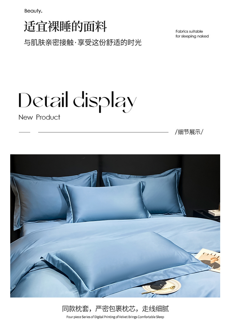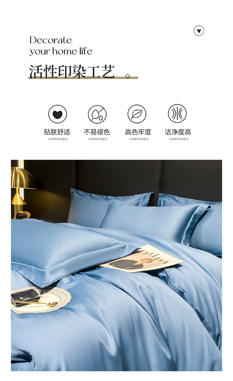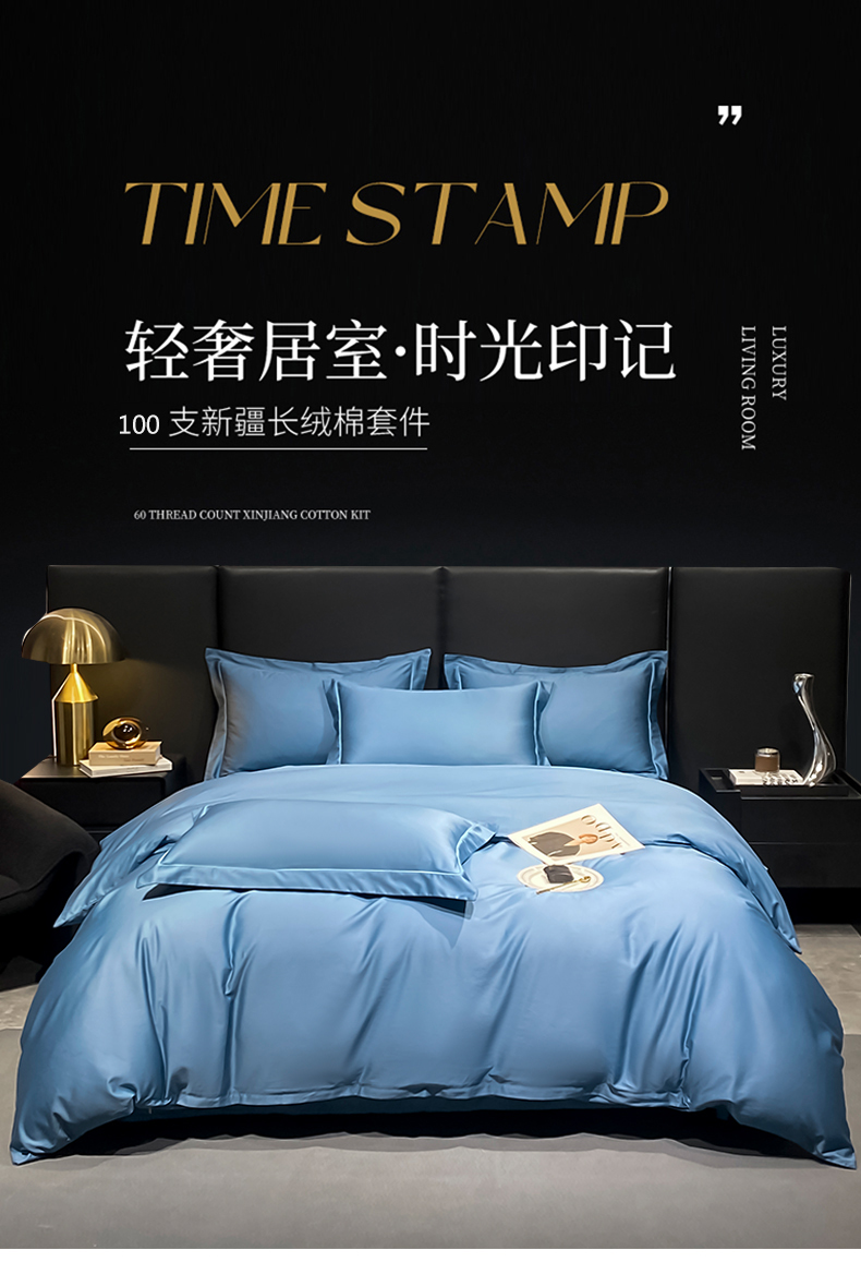 商品名称:富之航家纺 2024新款长绒棉四件套 雅克-氧气蓝