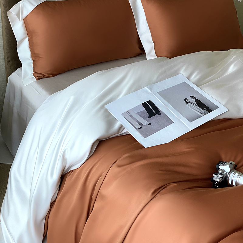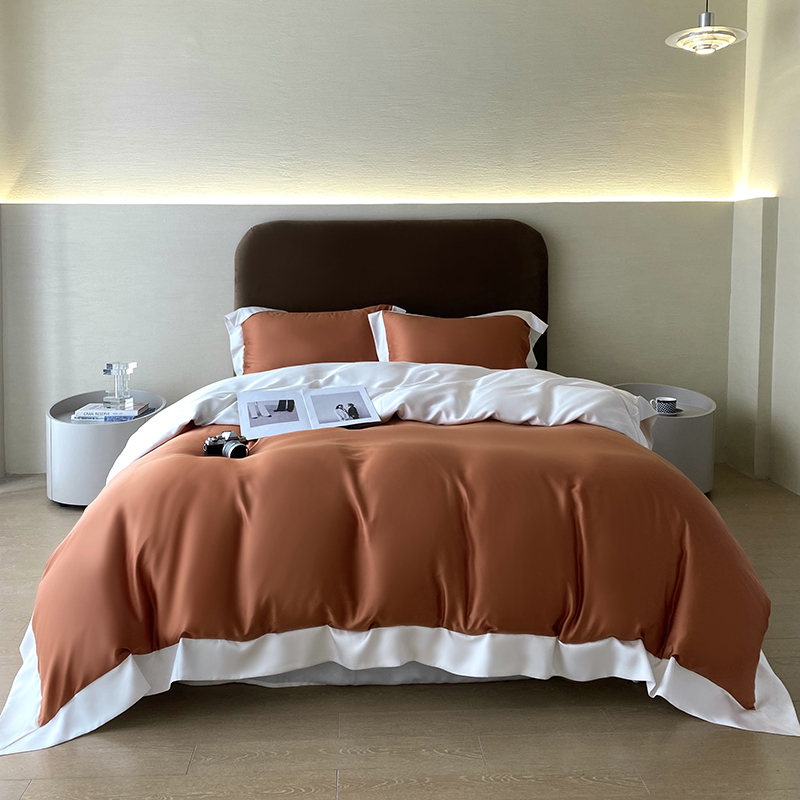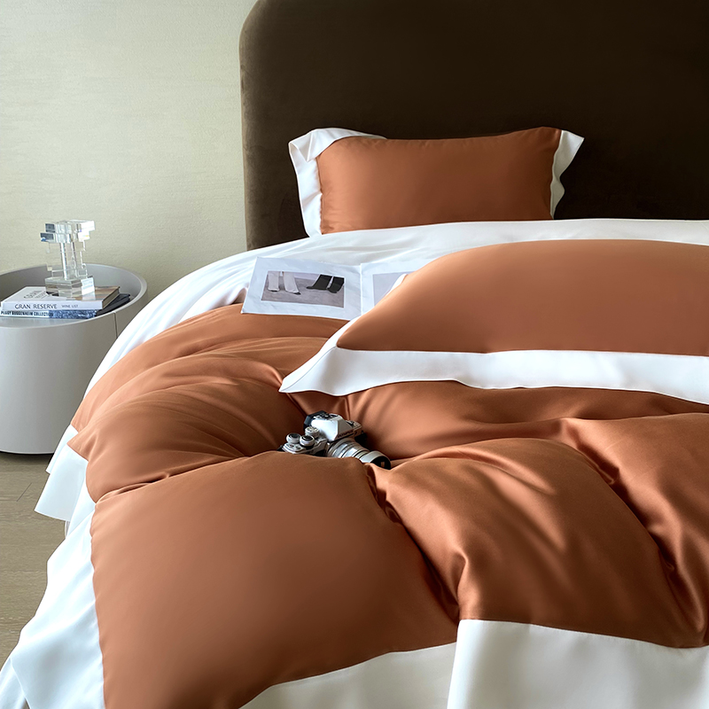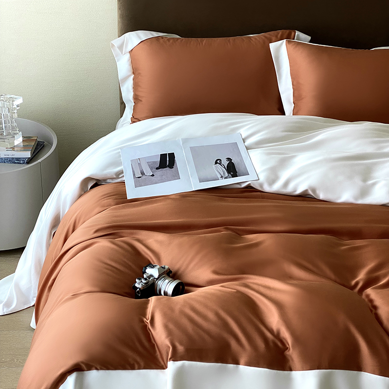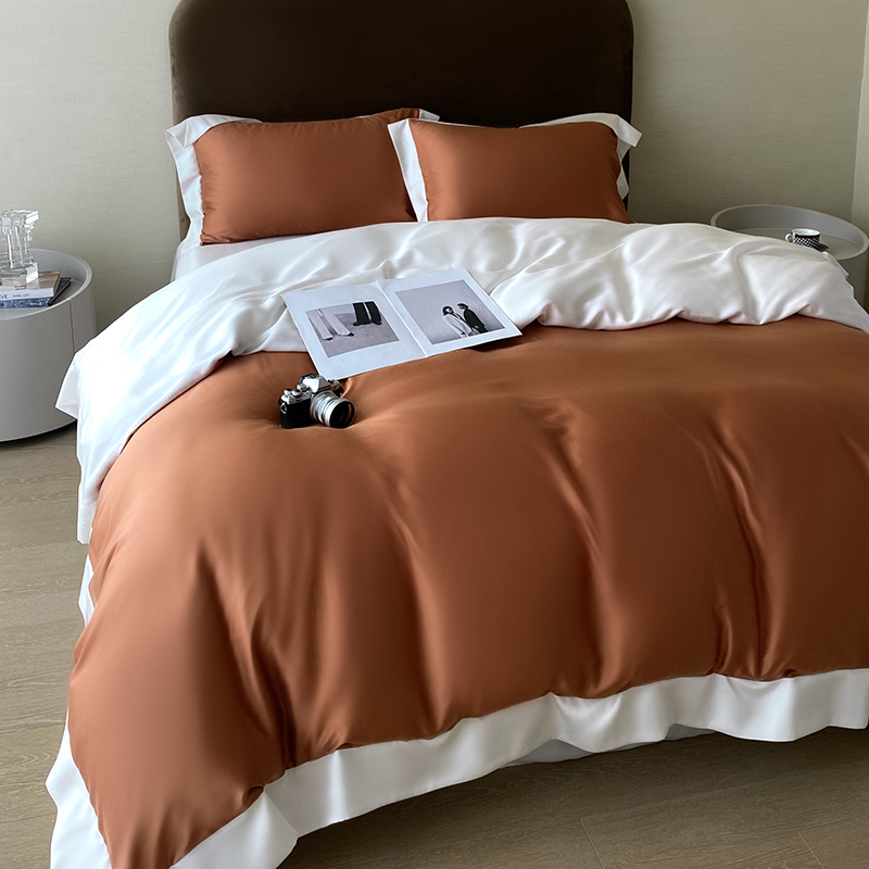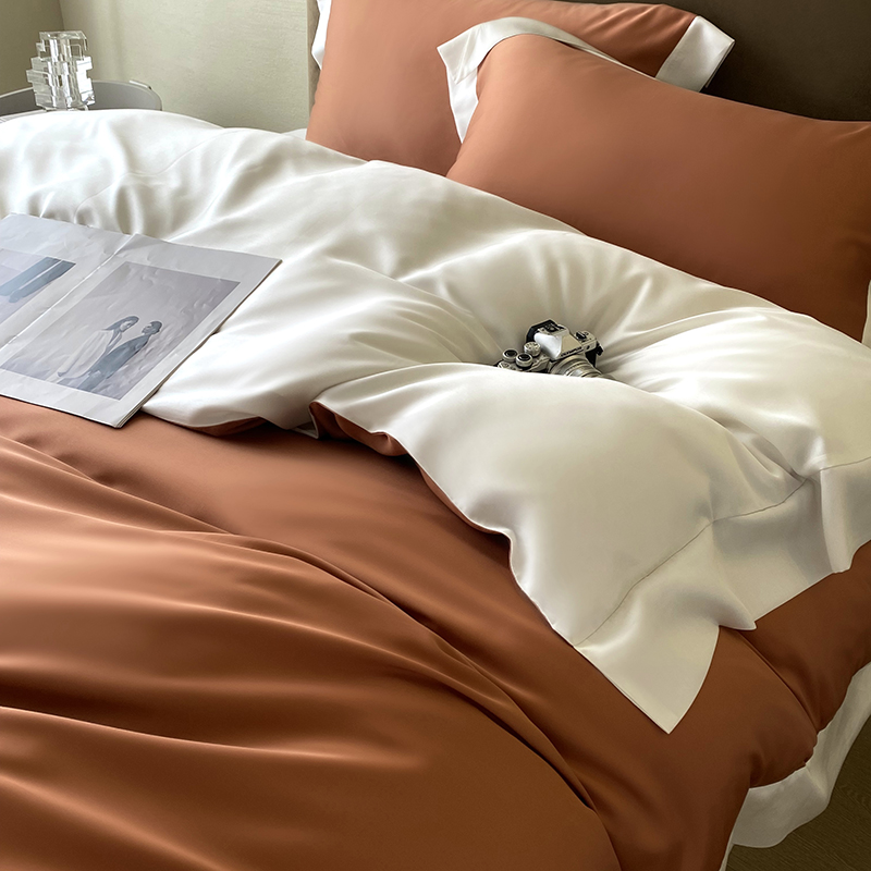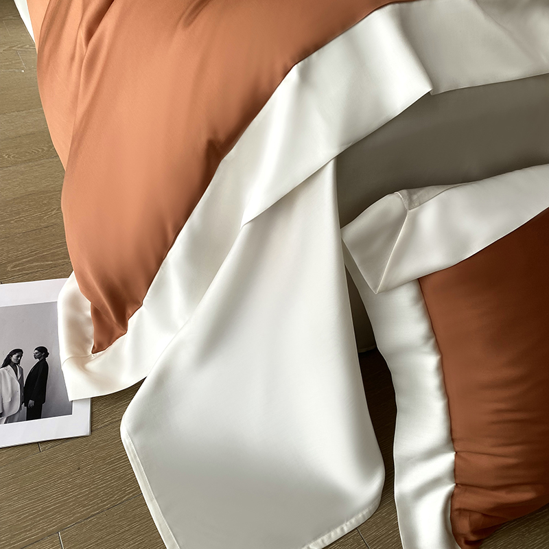 商品名称:朵美 2024新款60支兰精天丝纯色撞色系列四件套 栌黄拼钻石白