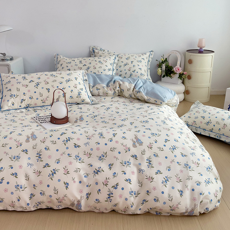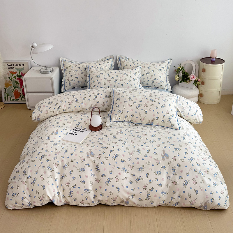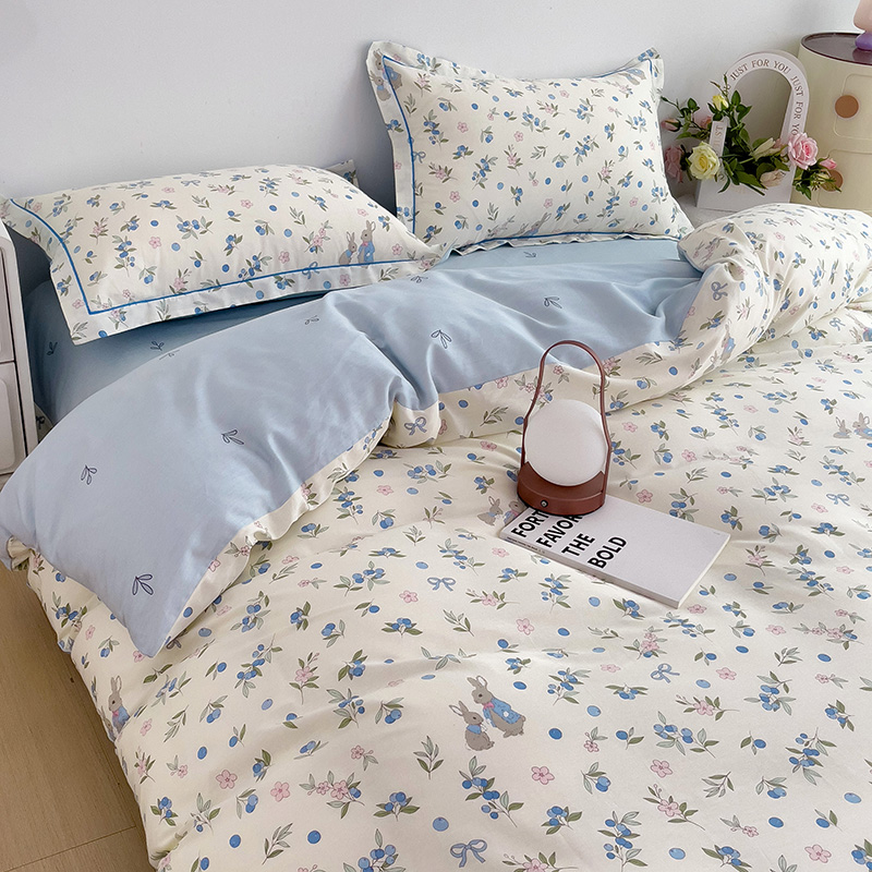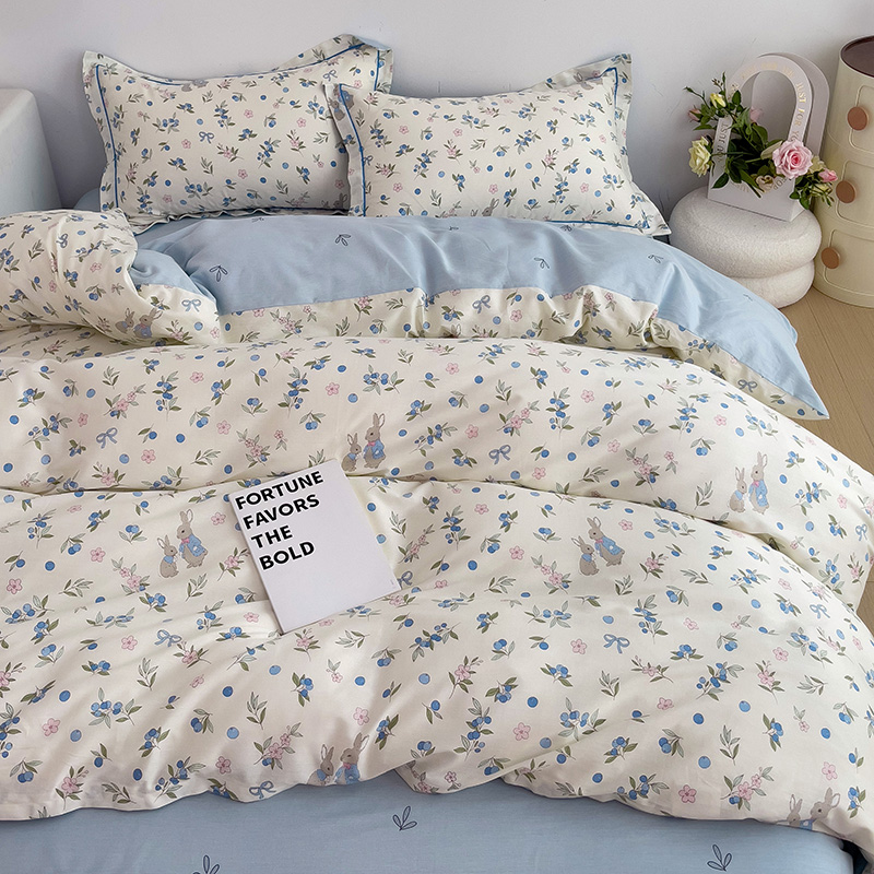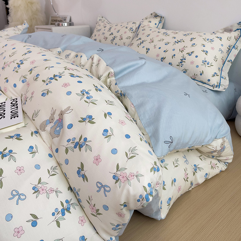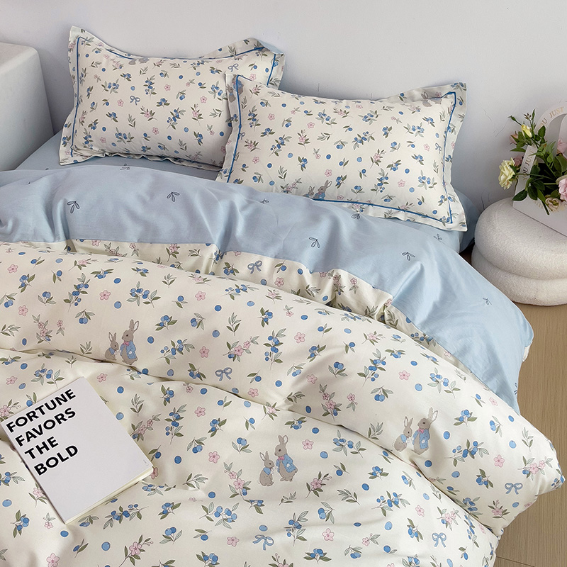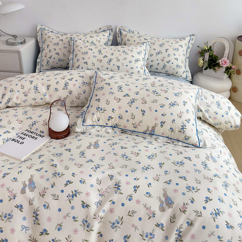 商品名称:乐童 2024新款直播爆款13070纯棉印花吊边款一字绣四件套 第五波 告白兔