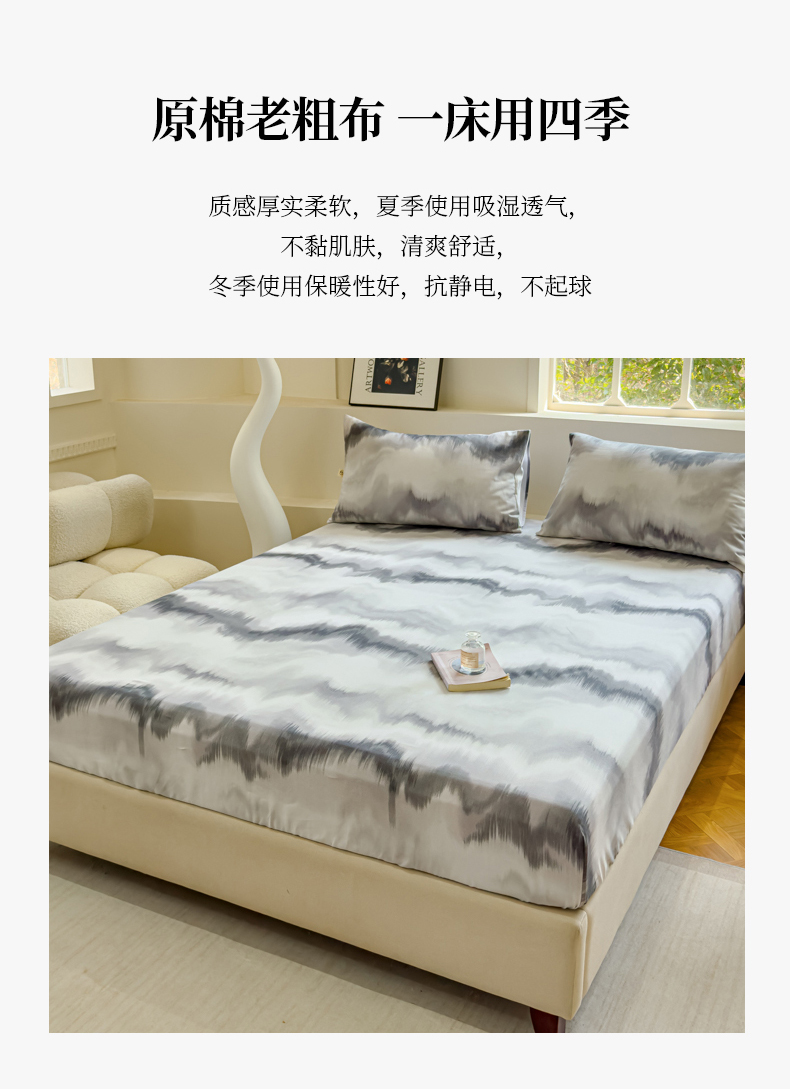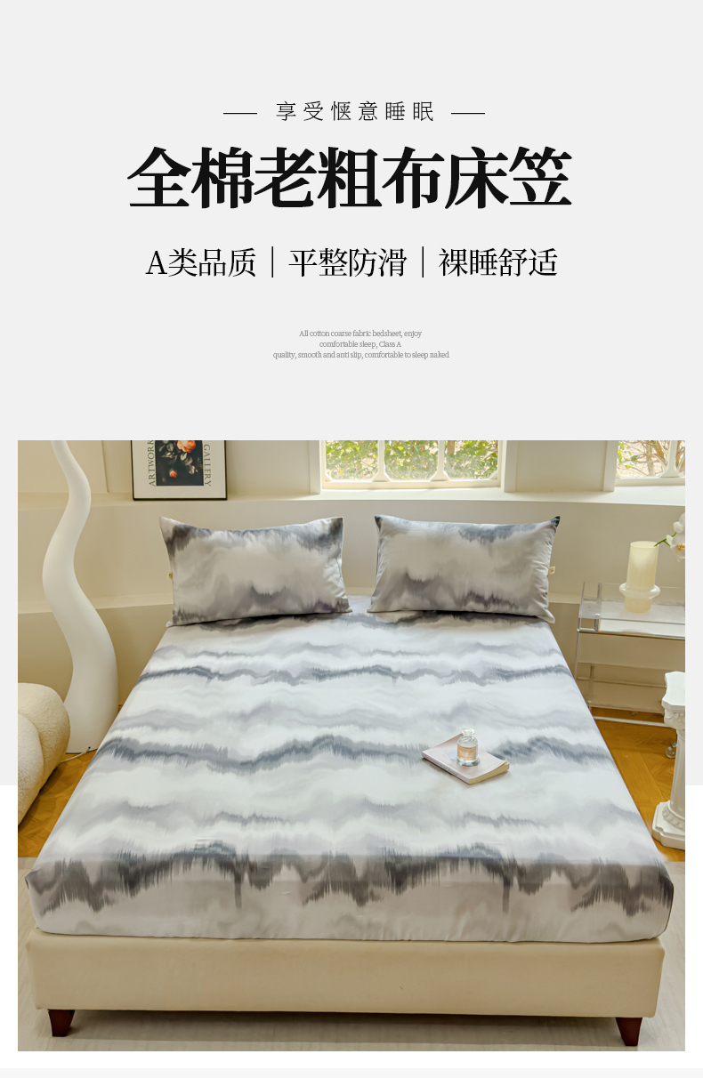 • 91家纺网 家纺一手货源 找家纺 金丝鸟家纺 2024新款成人款A类老粗布床笠 水墨