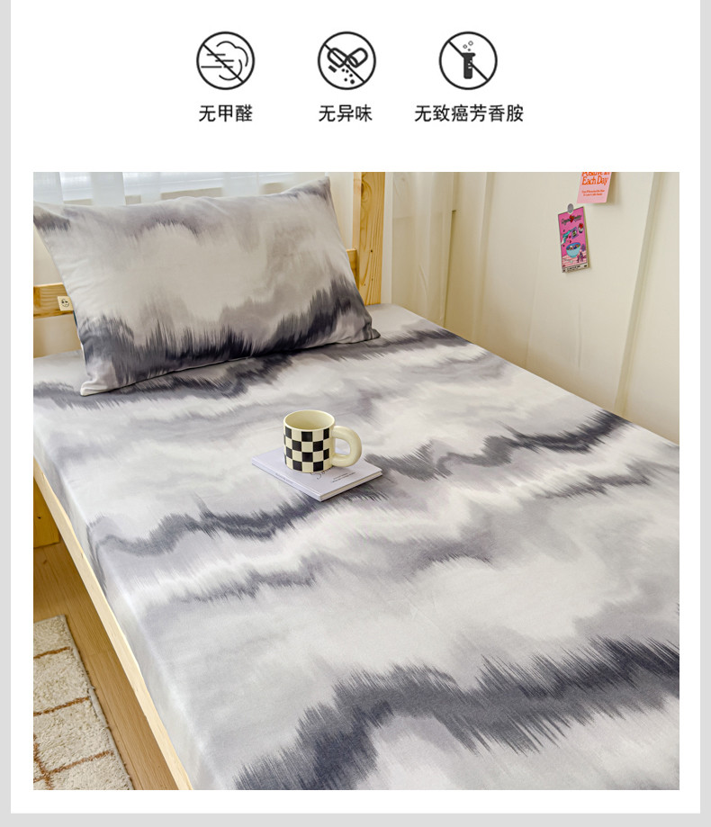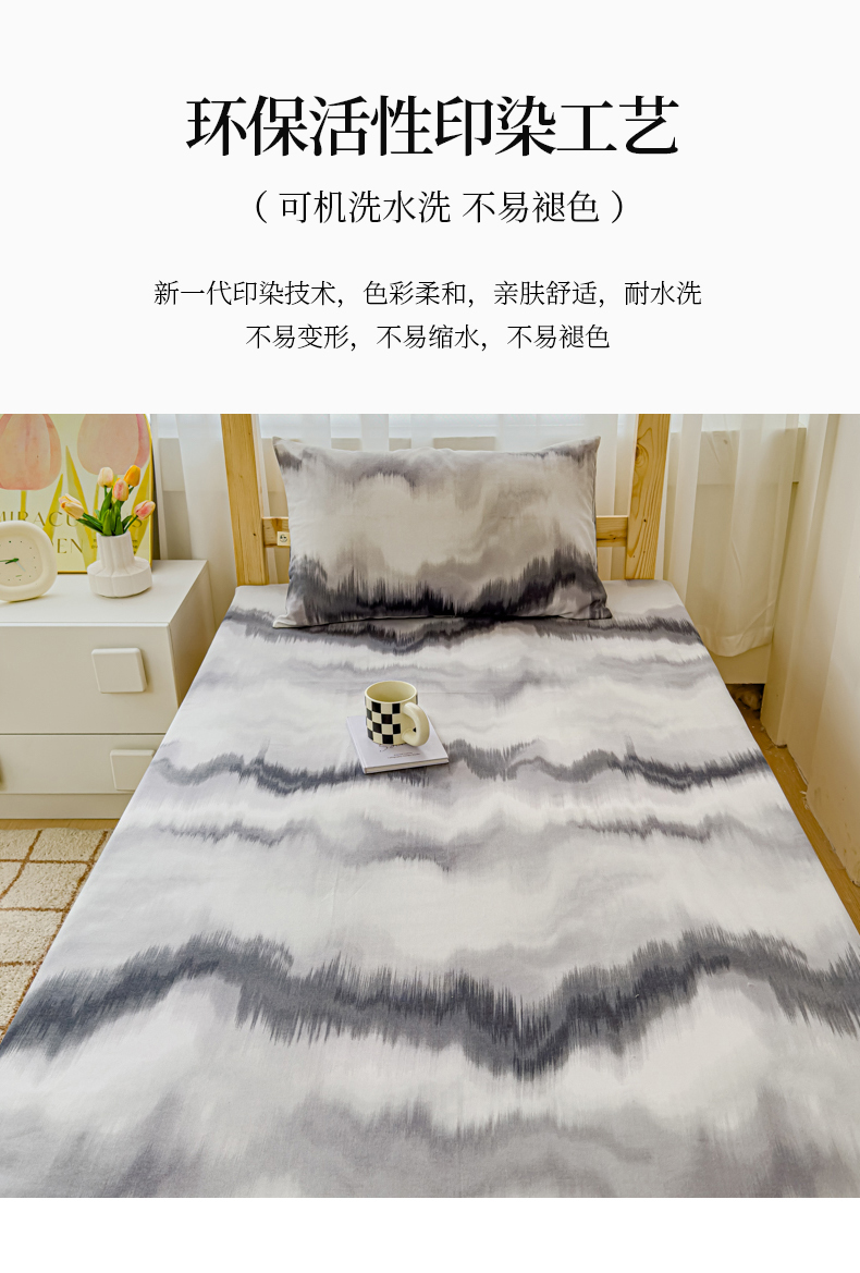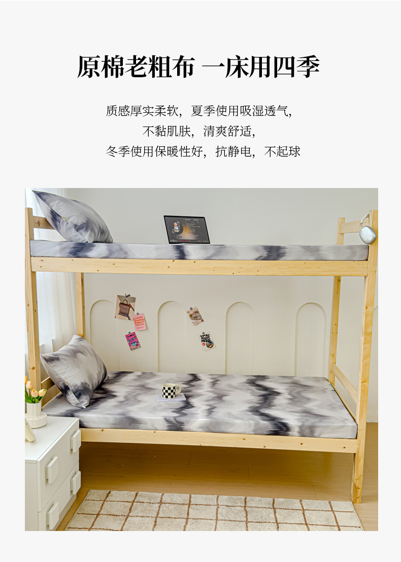 • 91家纺网 家纺一手货源 找家纺 金丝鸟家纺 2024新款学生款A类老粗布床笠 水墨