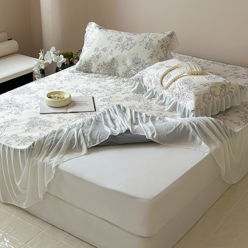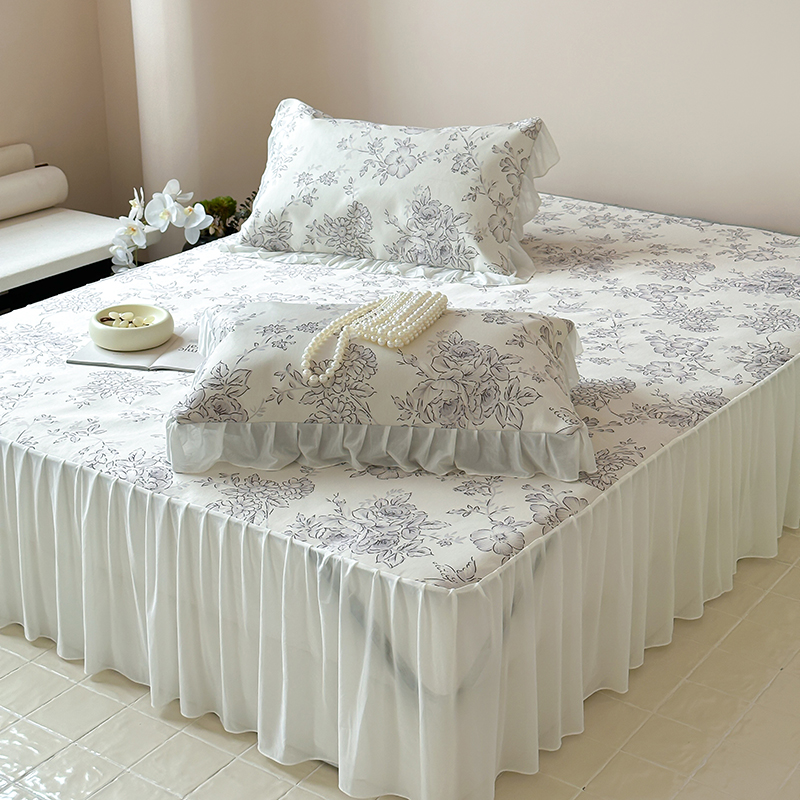 商品名称:昔可 2024新款A类900D仙仙雪纺纱床裙款冰丝席三件套 绿山墙的安妮