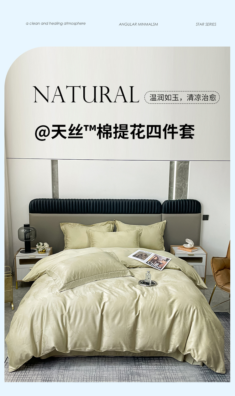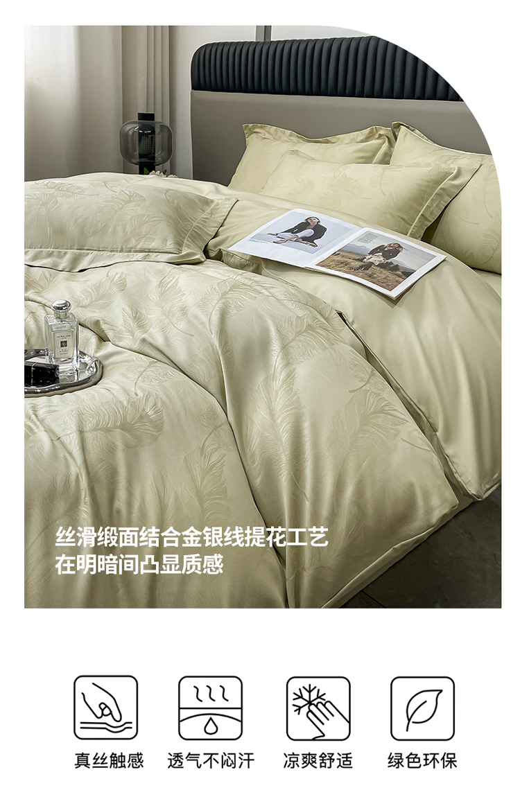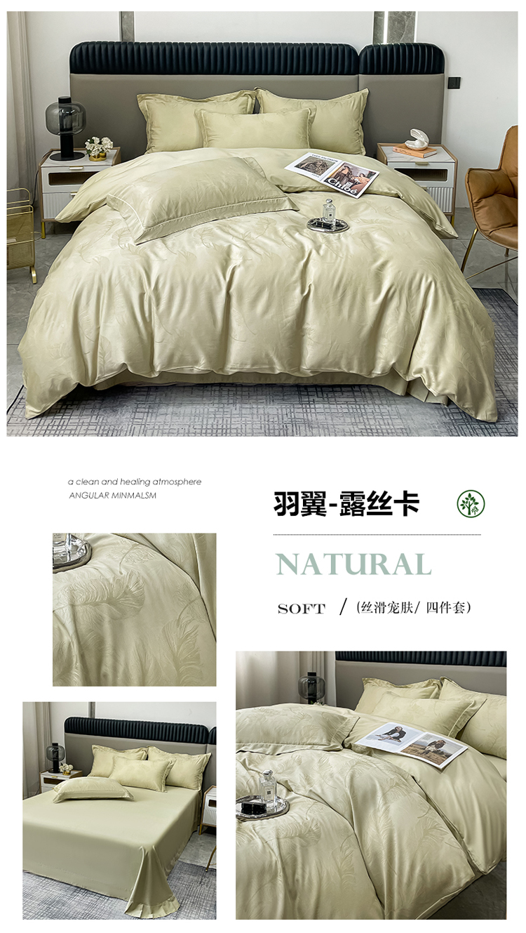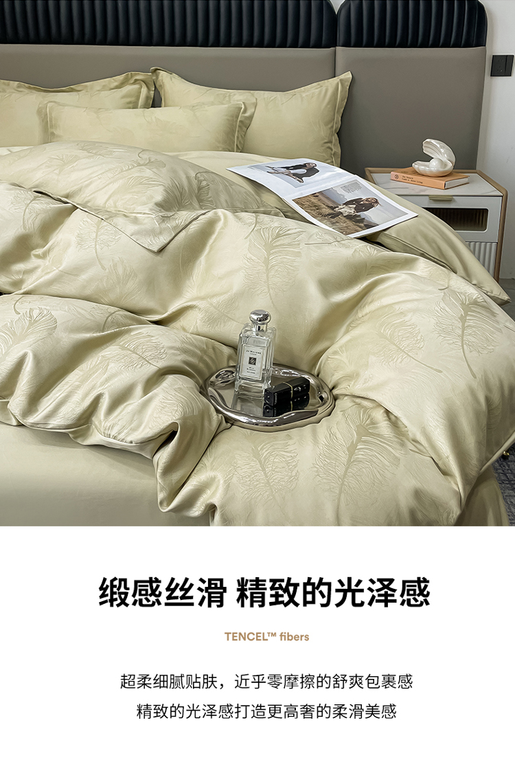 当前位置: 91家纺网 > 商品网购 > 床品套件 > 四件套 > 莱赛尔四件套 > 艾迪尚家纺 2025新款天丝棉提花四件套 羽翼 露丝卡
